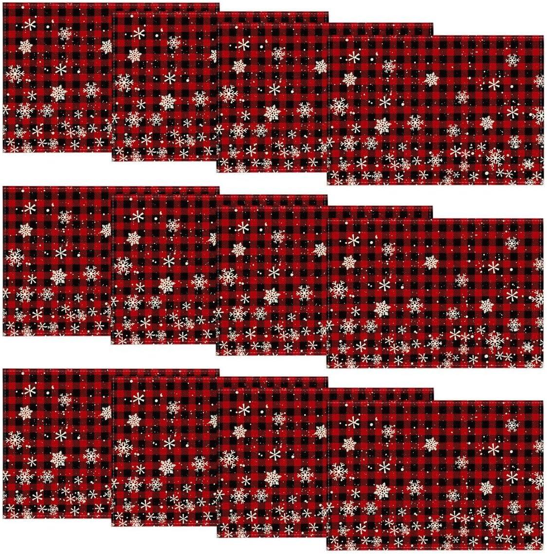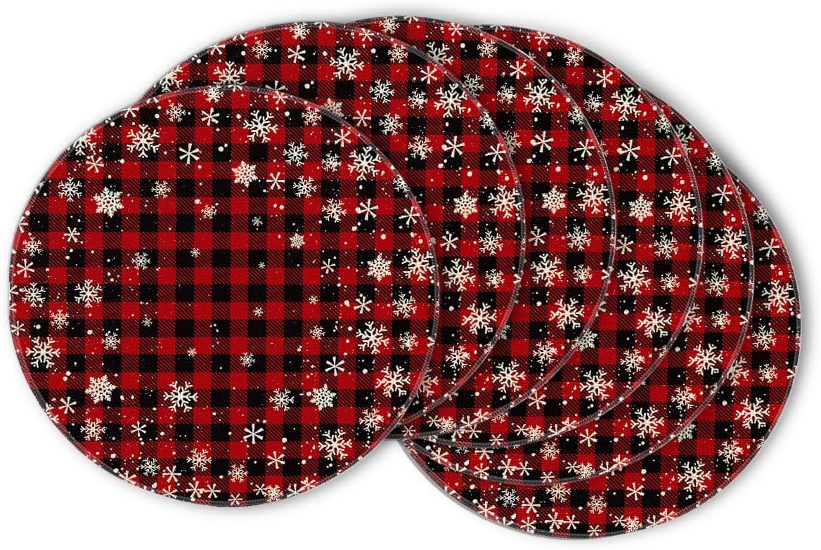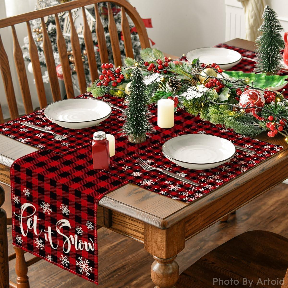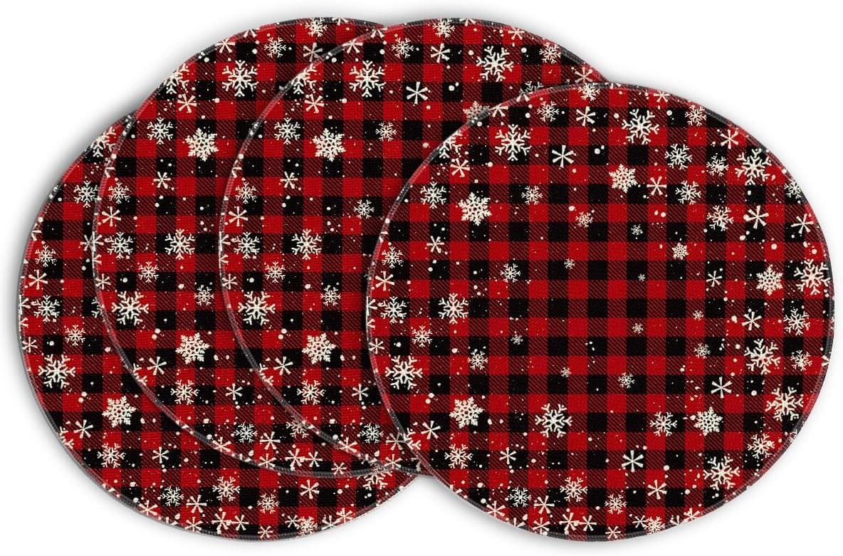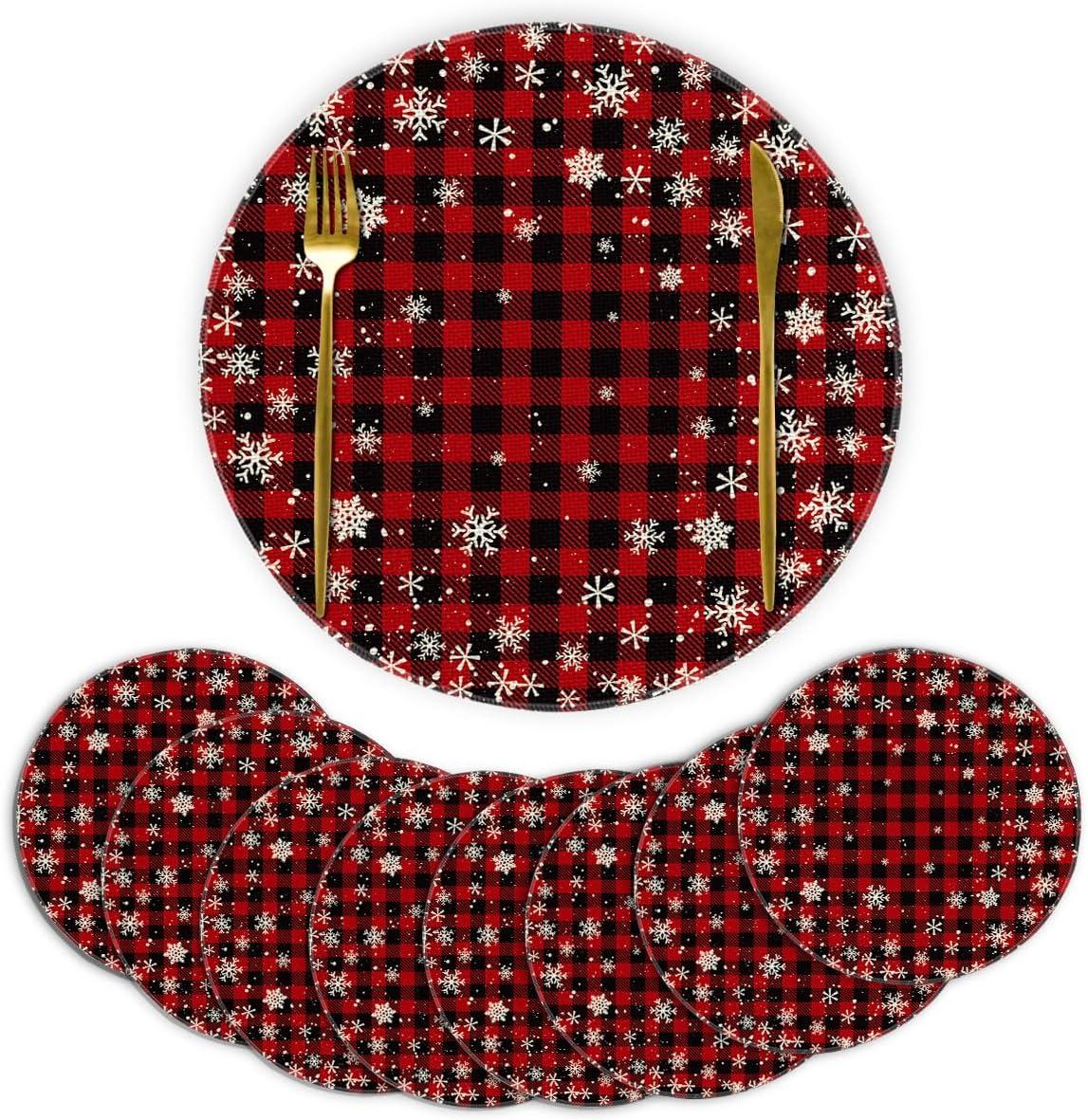 Artoid Mode Red and Black Buffalo Plaid Christmas Placemats for Dining Table, 12 x 18 Inch Seasonal Winter Xmas Snowflakes Holiday Rustic Vintage Thanksgiving Washable Table Mats Set of 4(Red/Black)