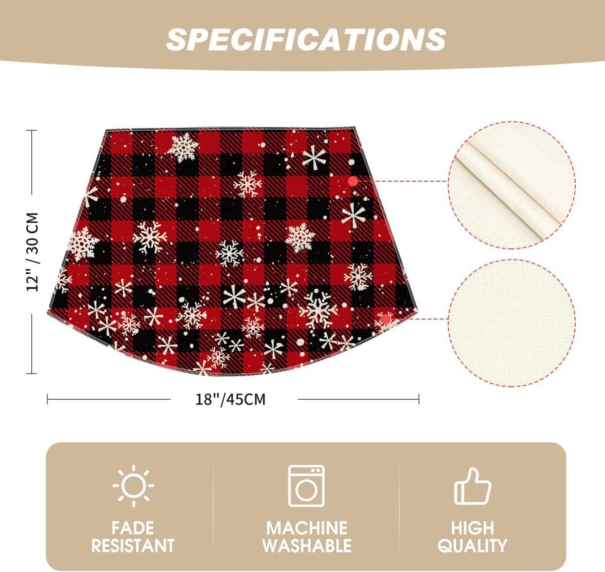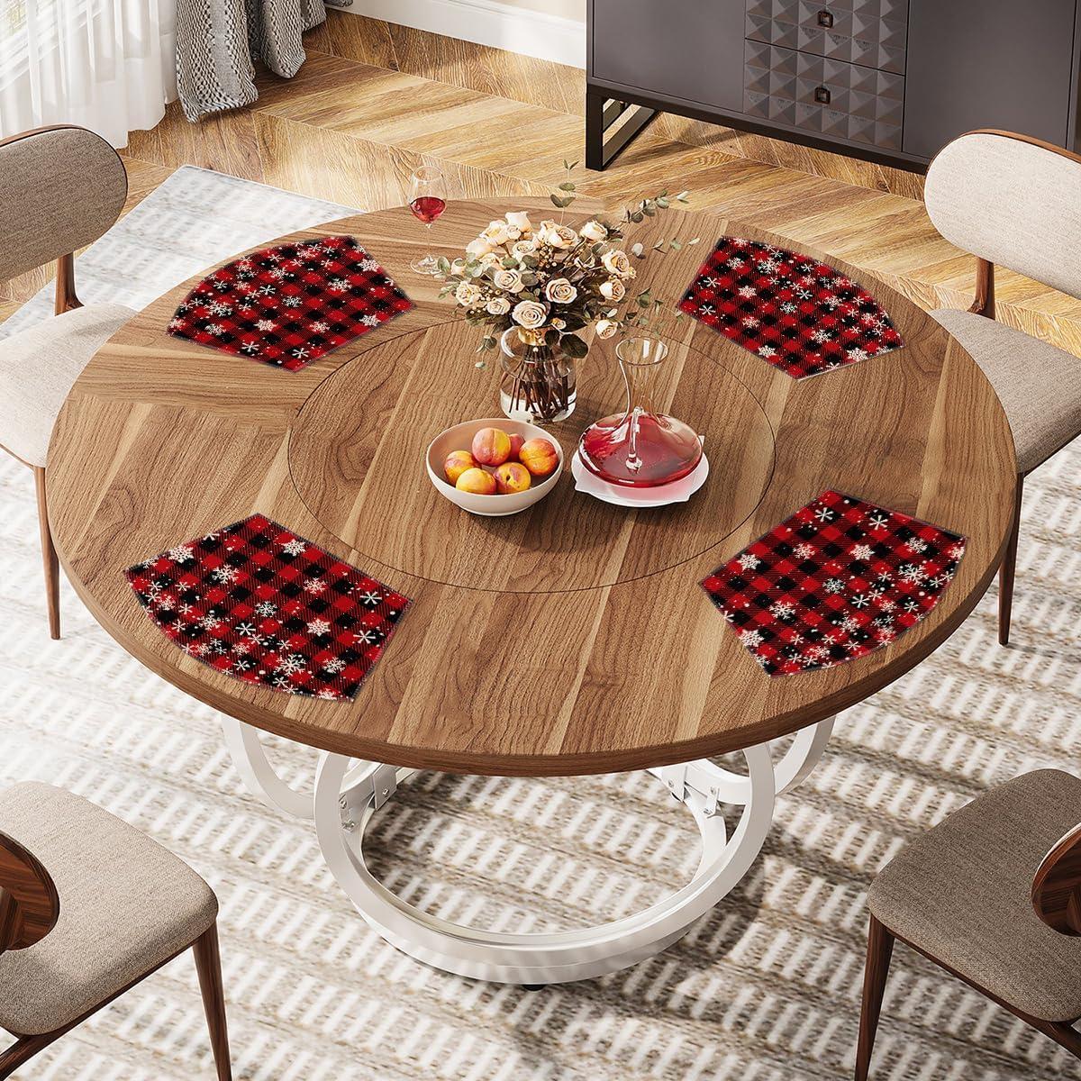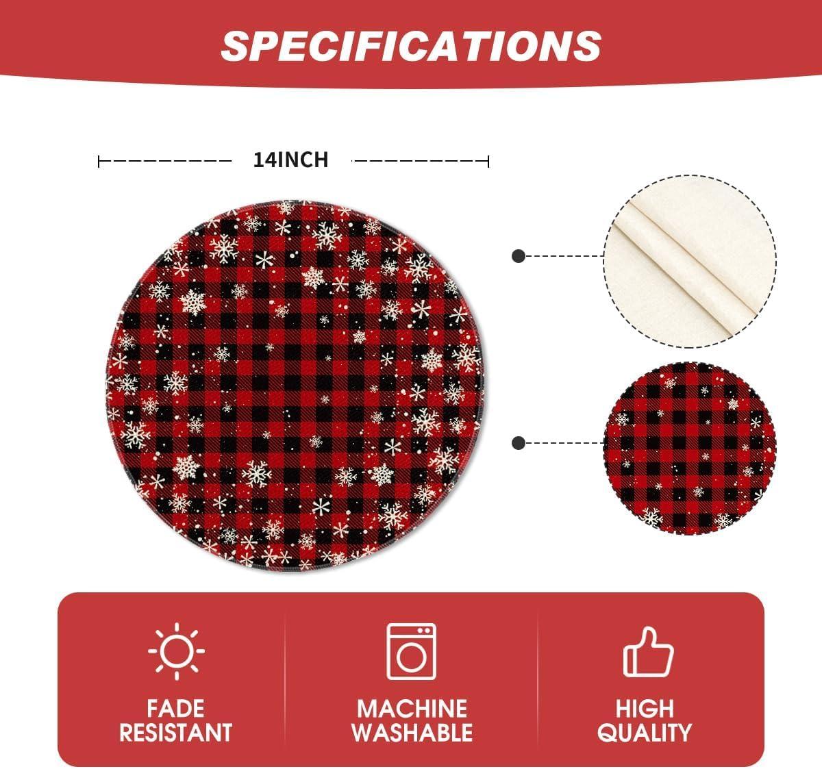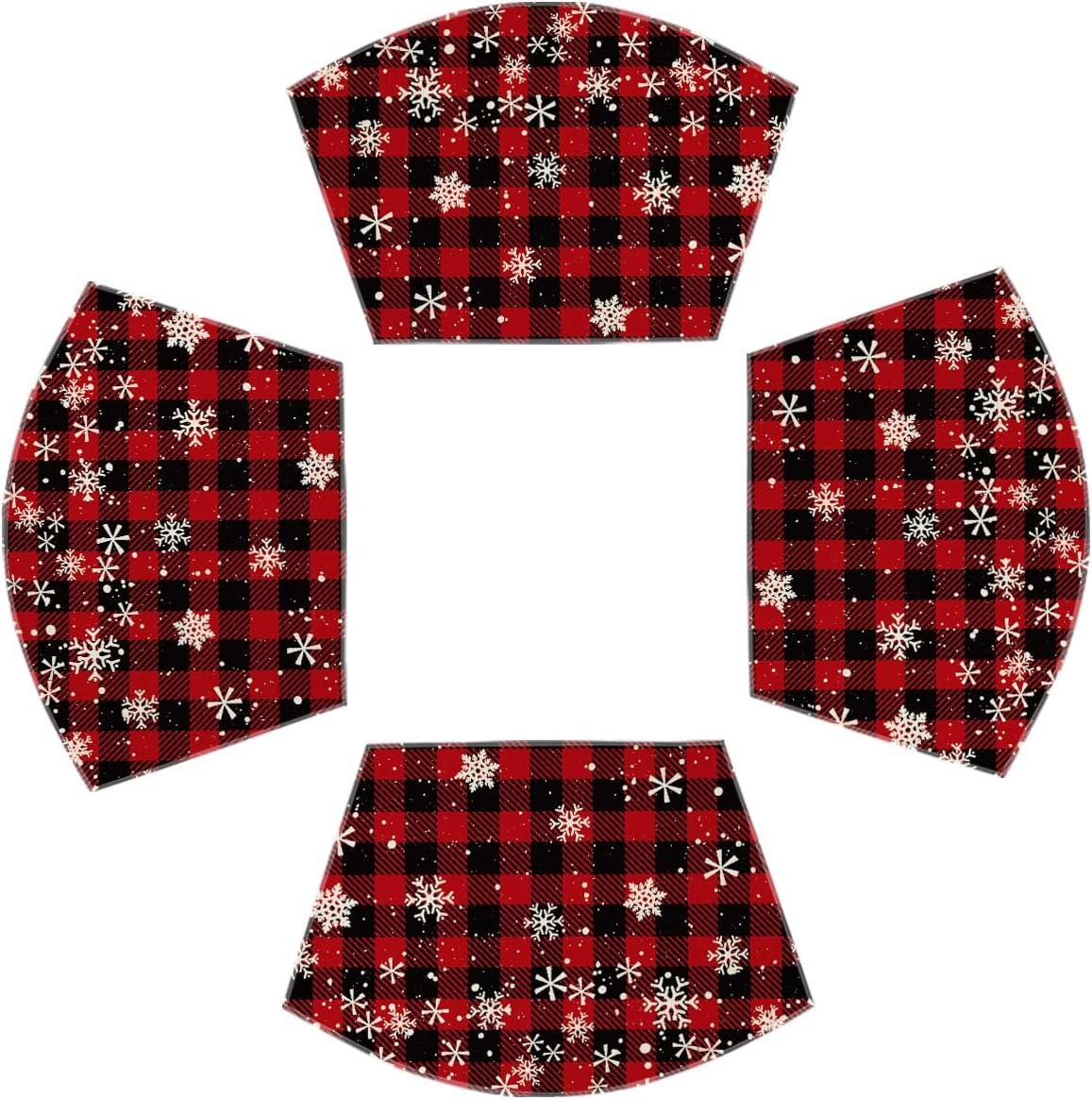 Artoid Mode Red and Black Buffalo Plaid Christmas Placemats for Dining Table, 12 x 18 Inch Seasonal Winter Xmas Snowflakes Holiday Rustic Vintage Thanksgiving Washable Table Mats Set of 4(Red/Black)