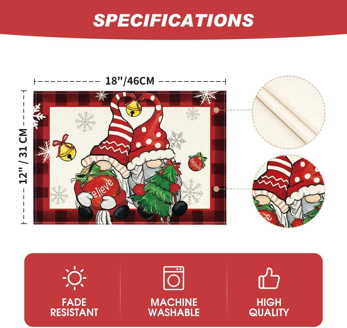 Be the first to review “Artoid Mode Red Buffalo Plaid Gnome Believe Xmas Balls Merry Christmas Round Placemats Set of 4, 14 Inch Winter Round Table Mats for Dining Decoration(Red/Black)”