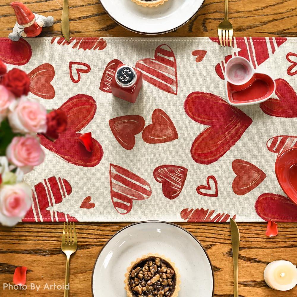 Artoid Mode Red Buffalo Plaid Love Heart Valentine’s Table Runner, Anniversary Kitchen Dining Table Decoration for Home Party Decor 13×72 Inch(Red)