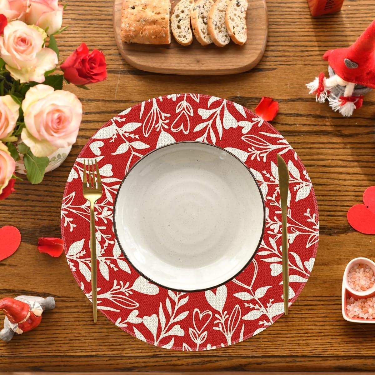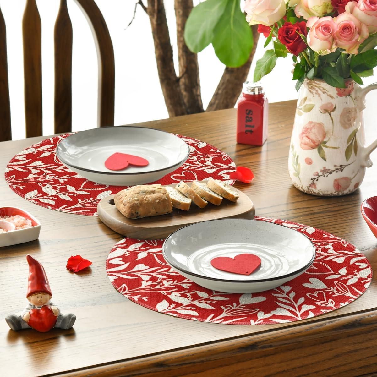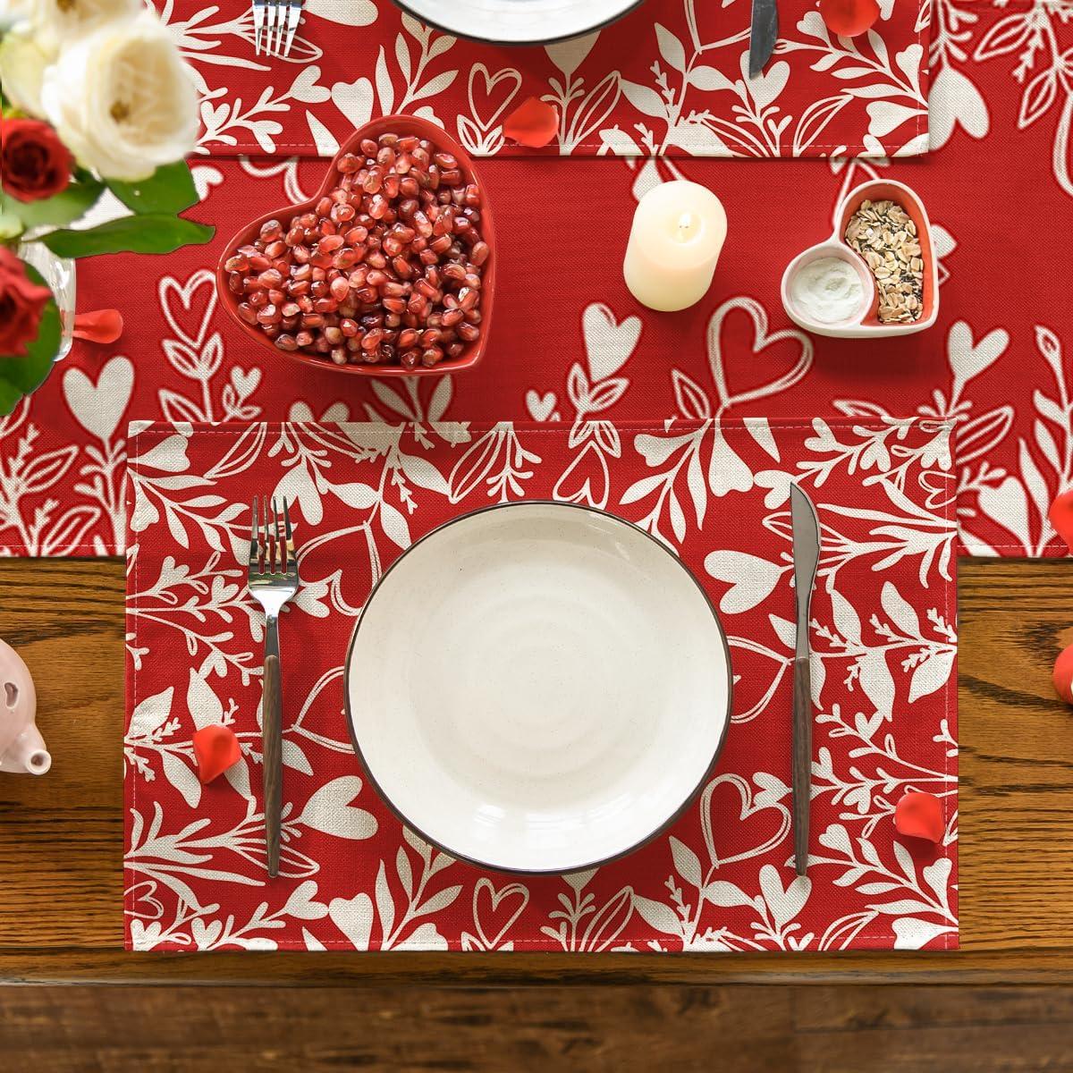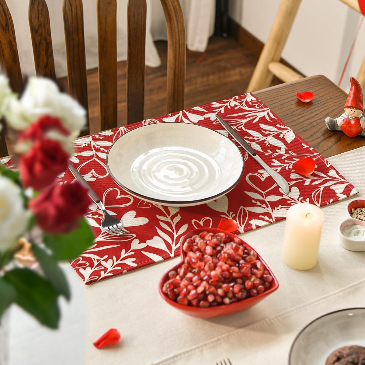 Artoid Mode Red Heart Love Leaves Valentine Placemats Set of 4, 12×18 Inch Anniversary Wedding Table Mats for Party Kitchen Dining Decoration(Red)