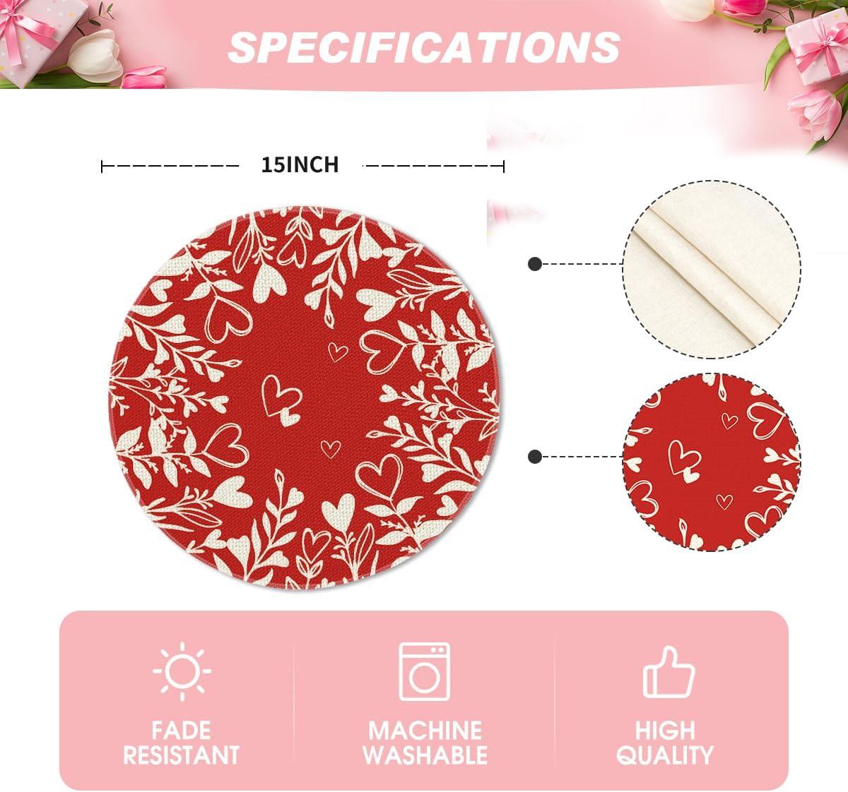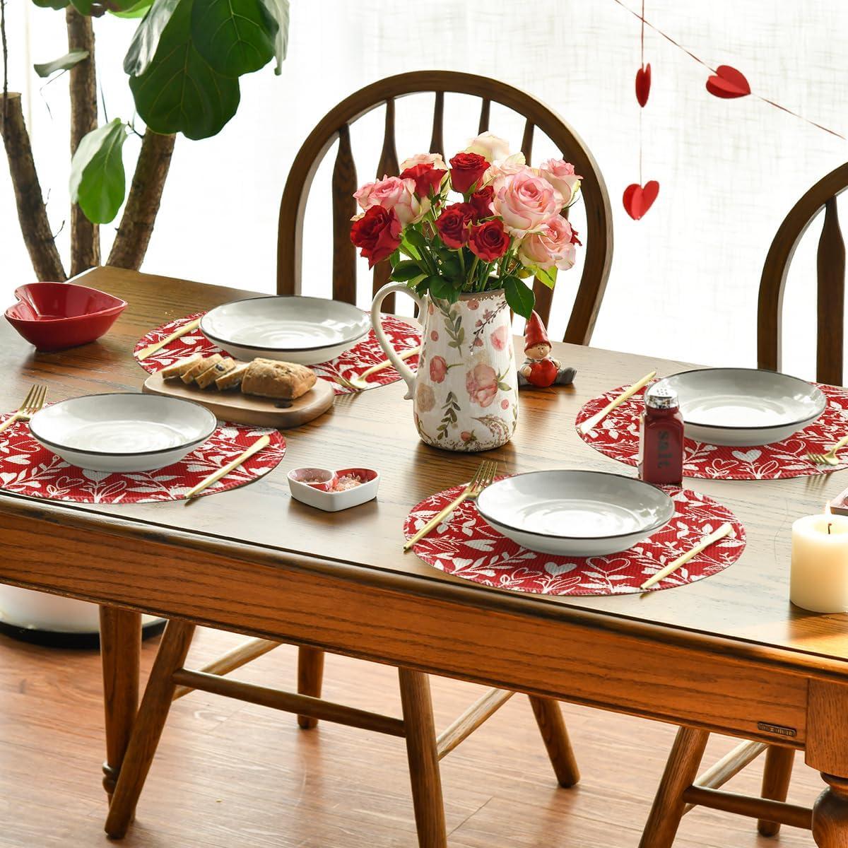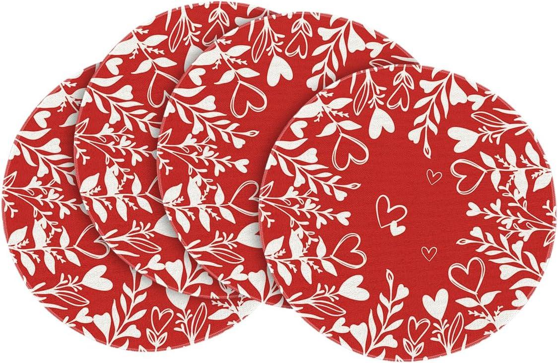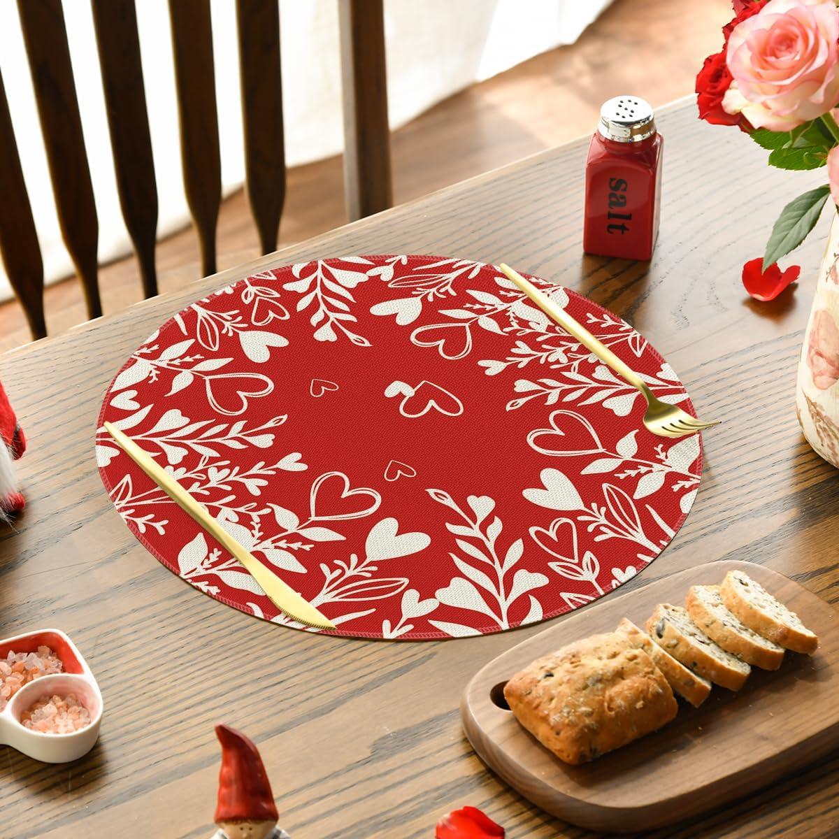 Artoid Mode Red Heart Love Leaves Valentine Placemats Set of 4, 12×18 Inch Anniversary Wedding Table Mats for Party Kitchen Dining Decoration(Red)