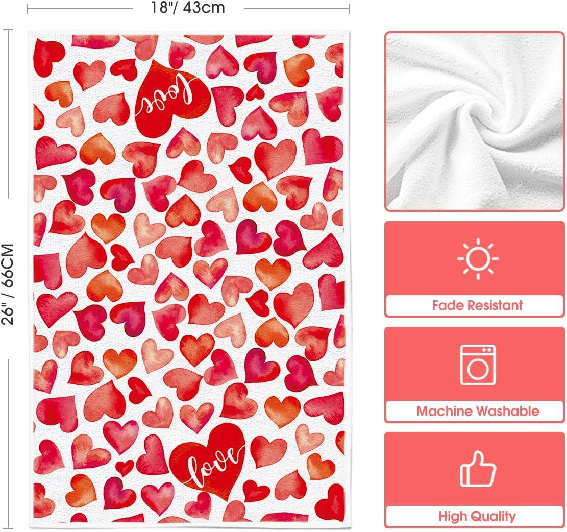 Artoid Mode Red Heart Love Valentine’s Kitchen Towels Dish Towels, 18×26 Inch Anniversary Farmhouse Decoration Hand Towels Set of 2