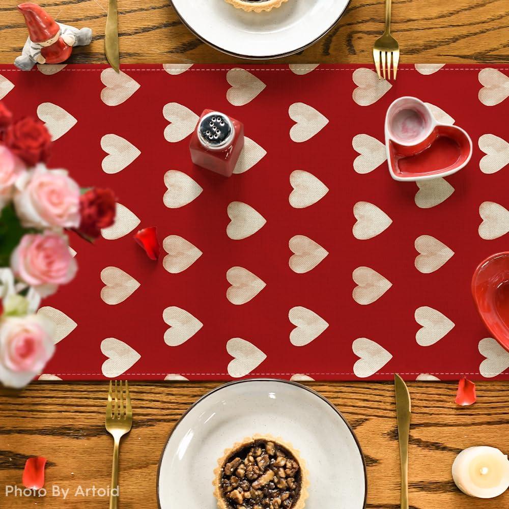 Artoid Mode Red Love Heart Valentine’s Day Table Runner, Seasonal Anniversary Kitchen Dining Table Decoration for Indoor Home Party 13×72 Inch(Red)