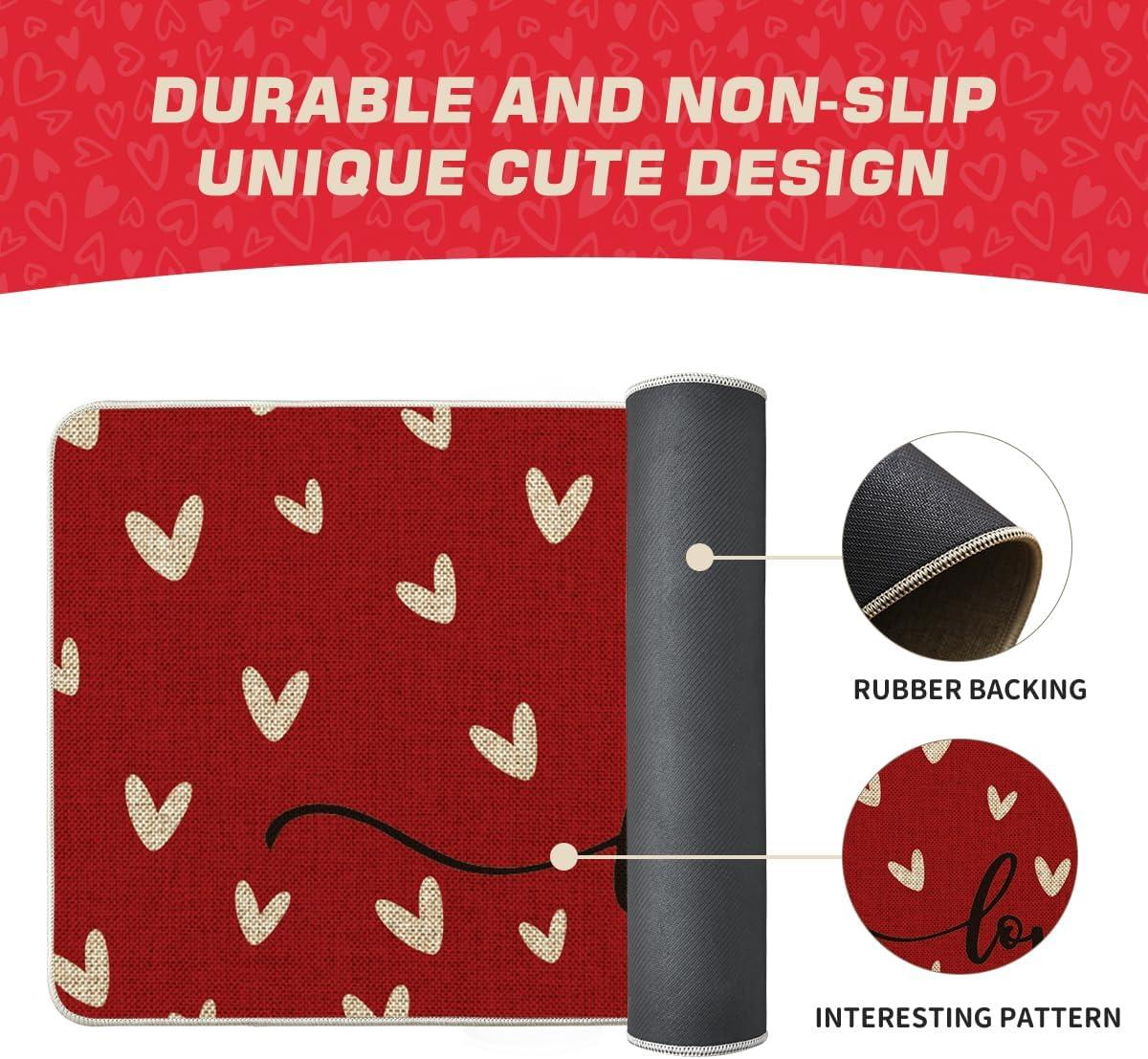Artoid Mode Red Love Valentine’s Welcome Decorative Doormat, Seasonal Anniversary Wedding Low-Profile Rug Switch Mat for Indoor Outdoor 17×29 Inch