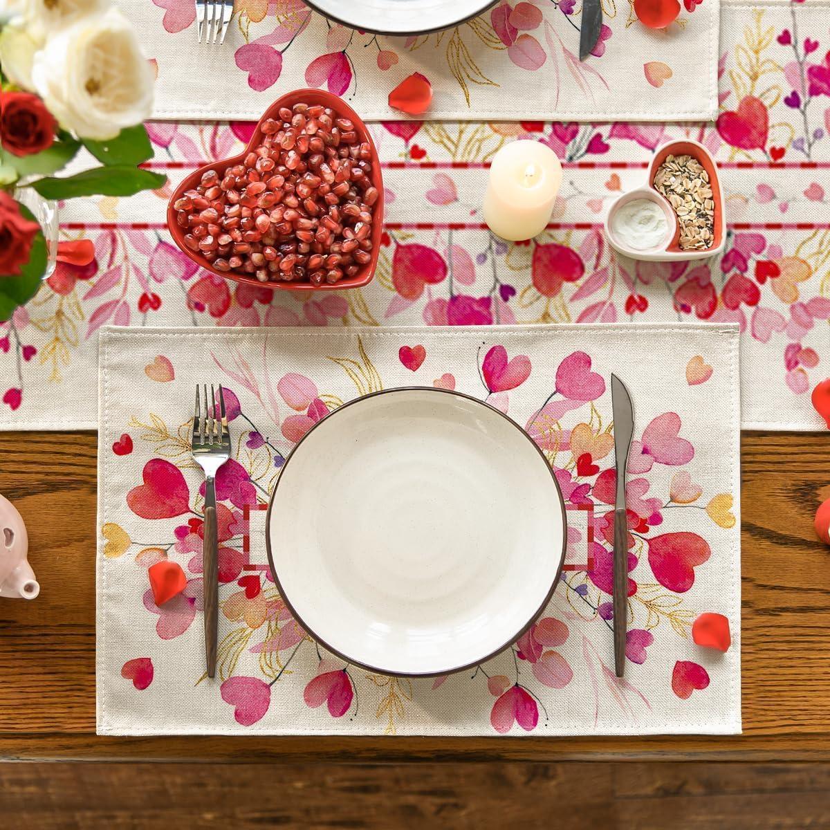 Artoid Mode Red Pink Heart Branch Valentine Placemats Set of 4, 12×18 Inch Leaf Table Mats for Home Party Kitchen Dining Decor