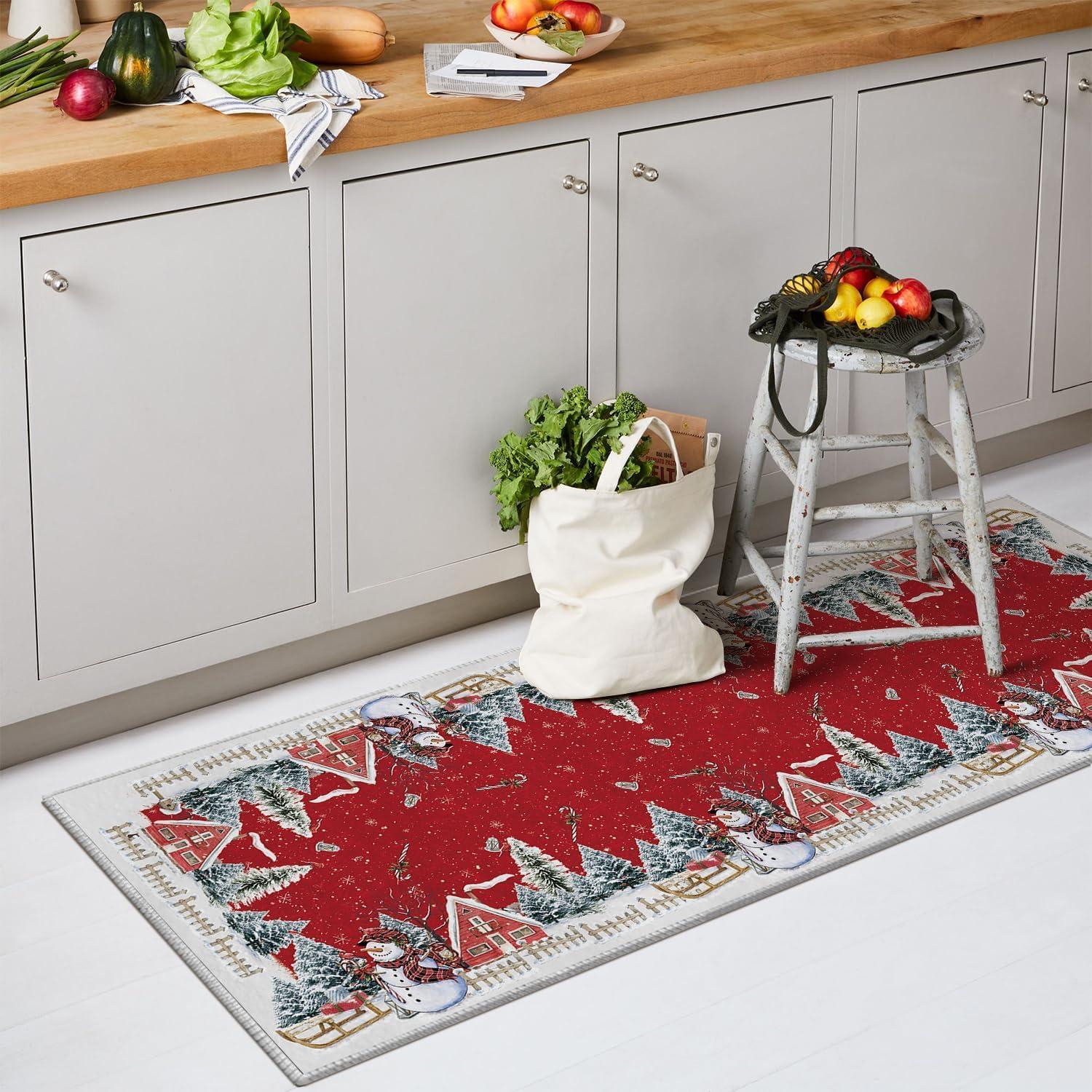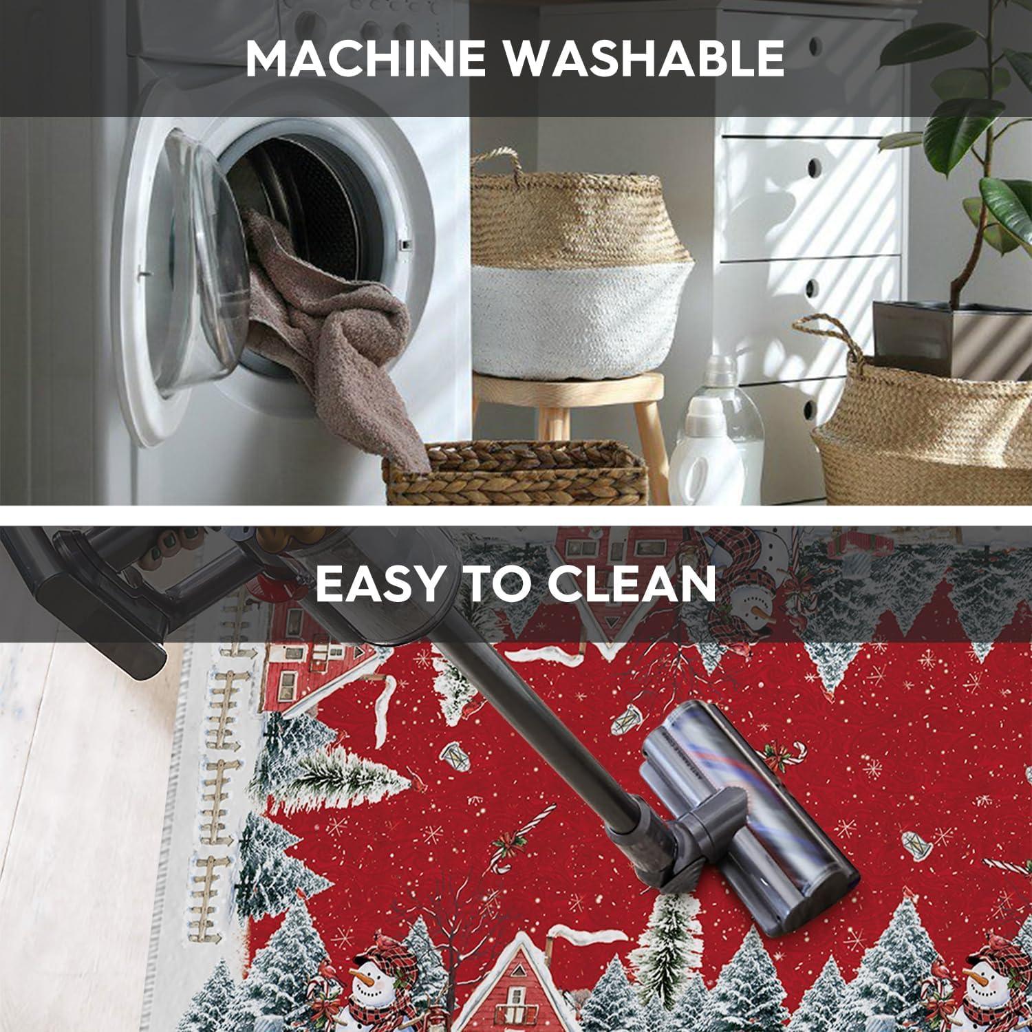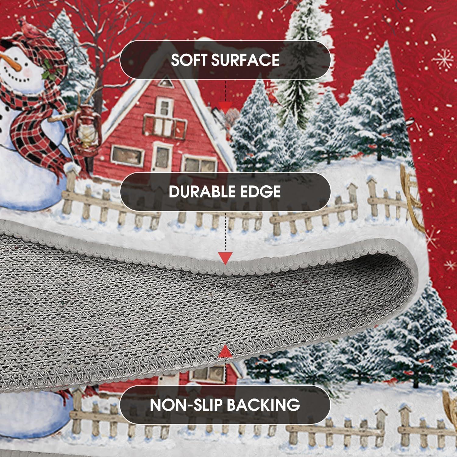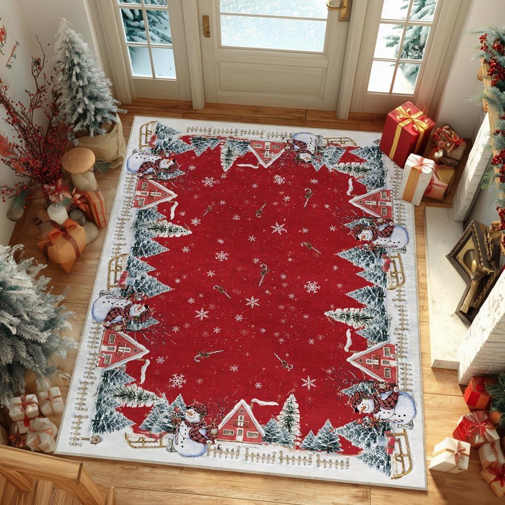 Artoid Mode Red Snowman House Pine Tree Christmas Area Rug, Xmas Winter Home Decor Low-Profile Washable Area Rugs for Entryway Bedroom Living Room Laundry Room Indoor 5×7 Feet(Red)