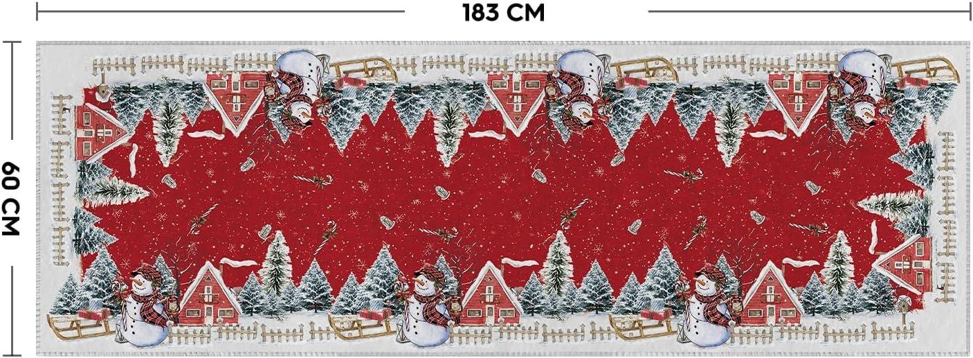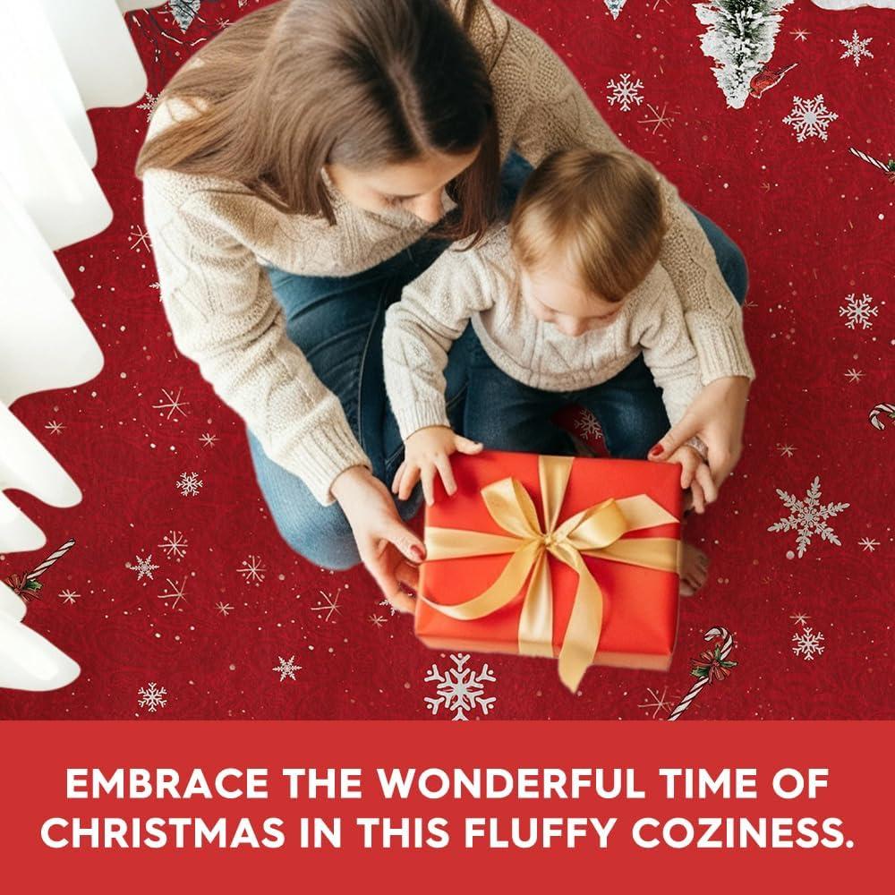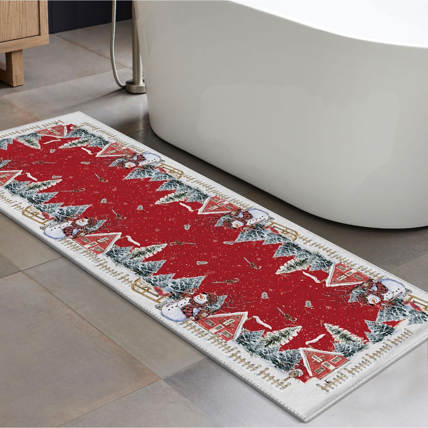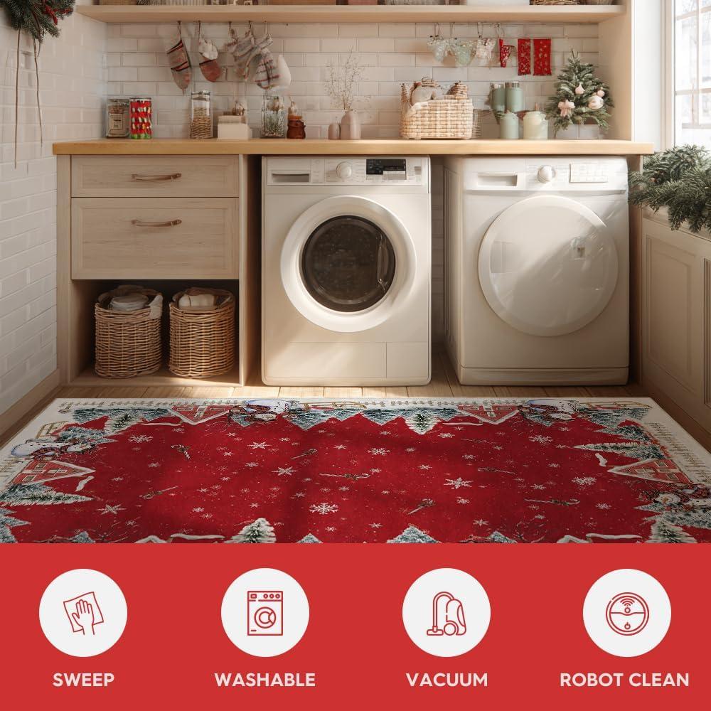 Artoid Mode Red Snowman House Pine Tree Christmas Area Rug, Xmas Winter Home Decor Low-Profile Washable Area Rugs for Entryway Bedroom Living Room Laundry Room Indoor 5×7 Feet(Red)