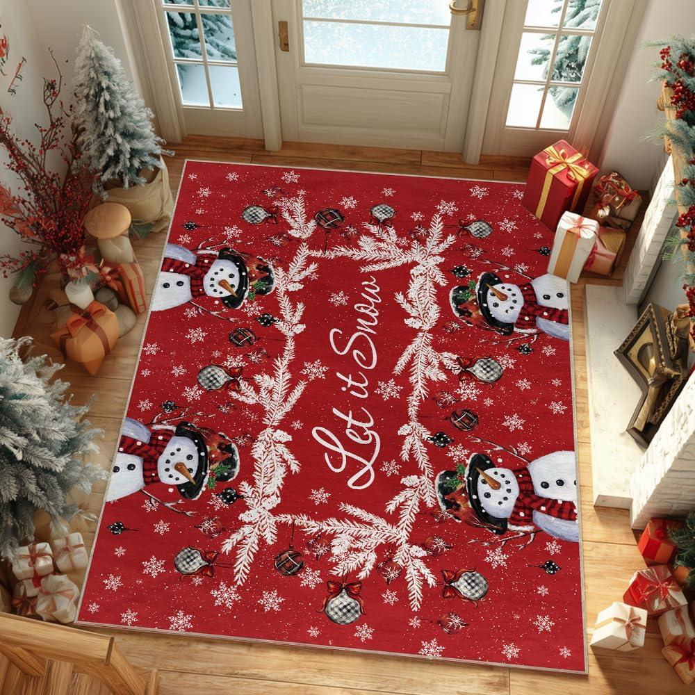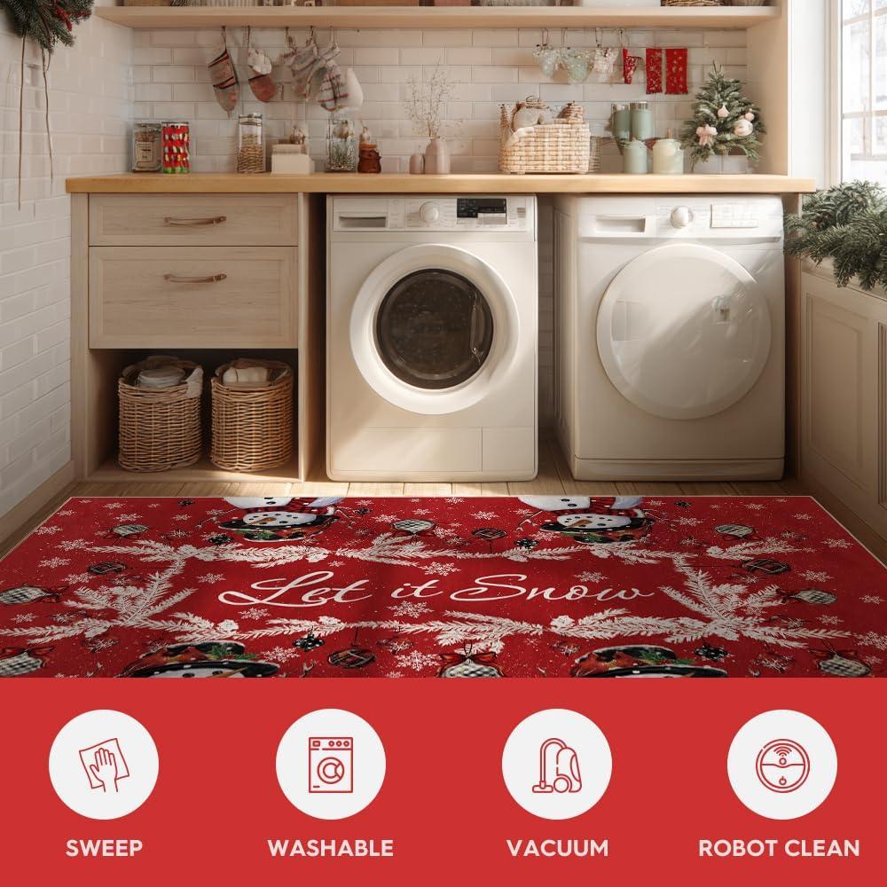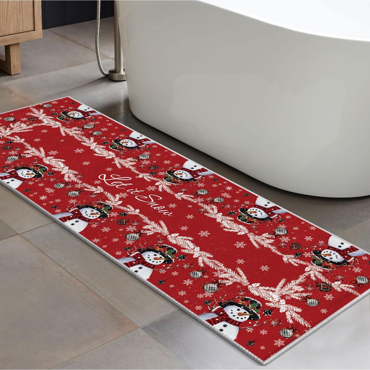 Artoid Mode Red Snowman Let It Snow Ball Christmas Door Mat, Xmas Winter Home Decor Low-Profile Non-Slip Washable Area Rug for Kitchen Entryway Bedroom Bathroom Laundry Room Indoor 2×3 Feet(Red)