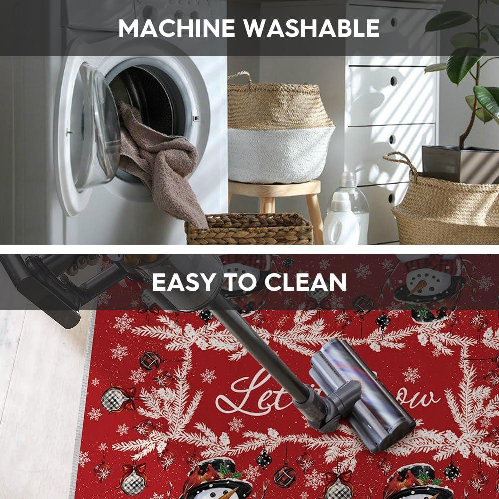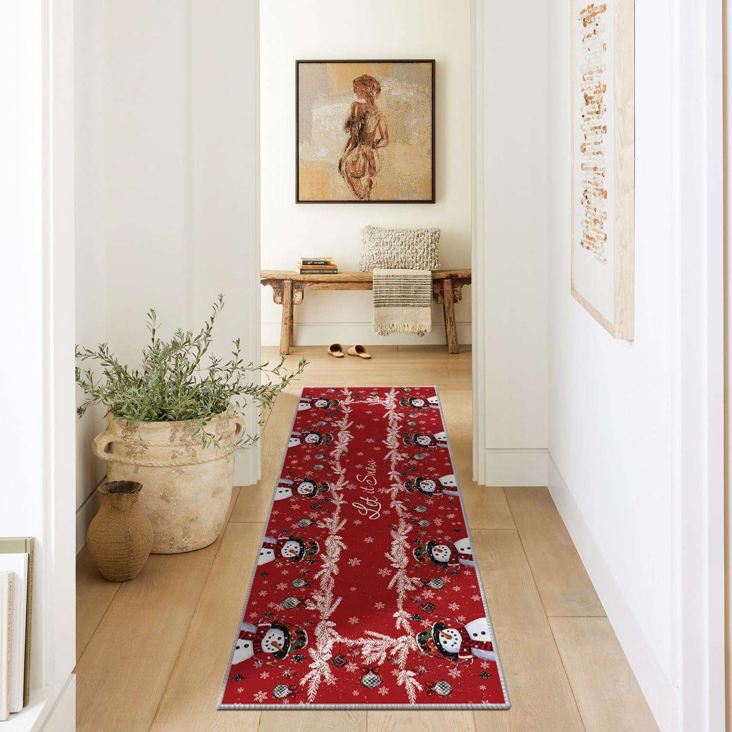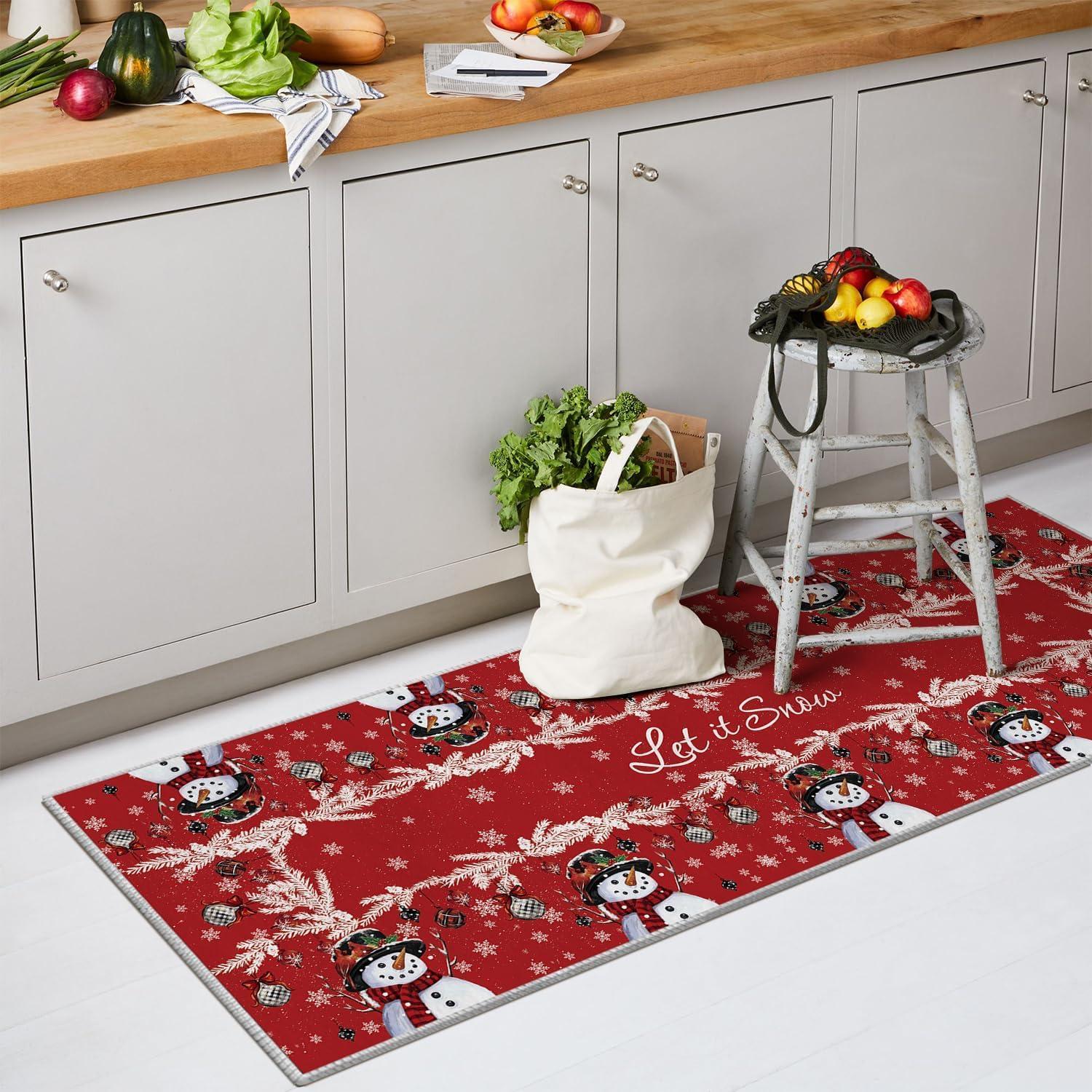 Artoid Mode Red Snowman Let It Snow Ball Christmas Door Mat, Xmas Winter Home Decor Low-Profile Non-Slip Washable Area Rug for Kitchen Entryway Bedroom Bathroom Laundry Room Indoor 2×3 Feet(Red)