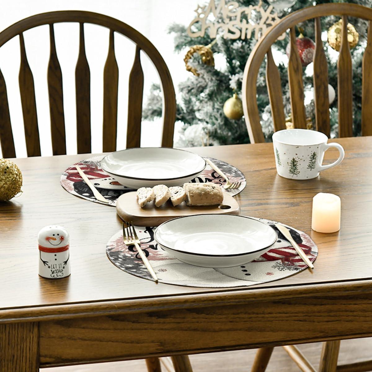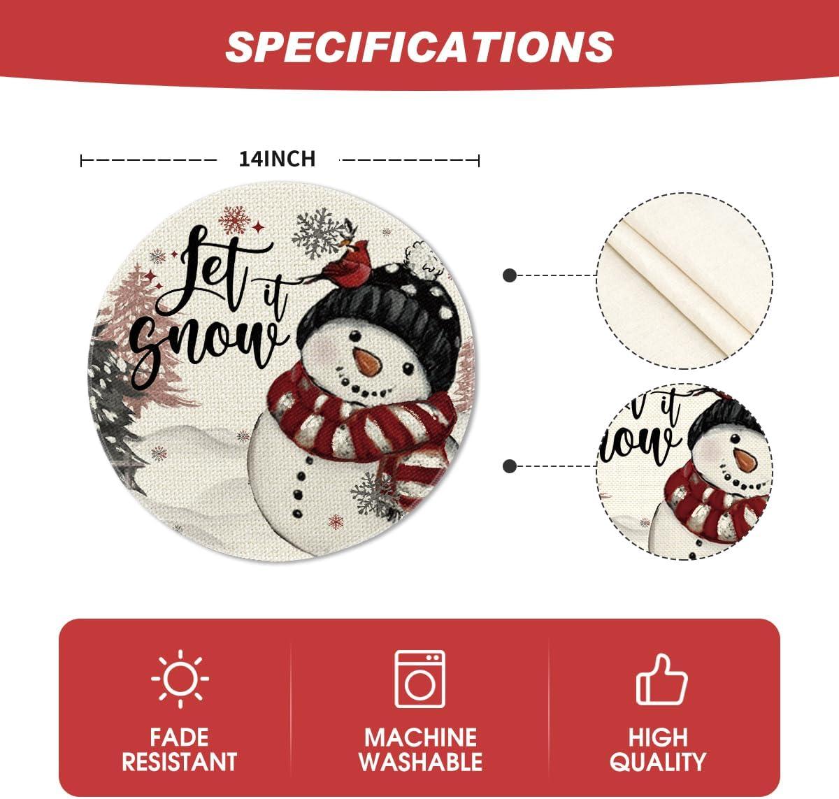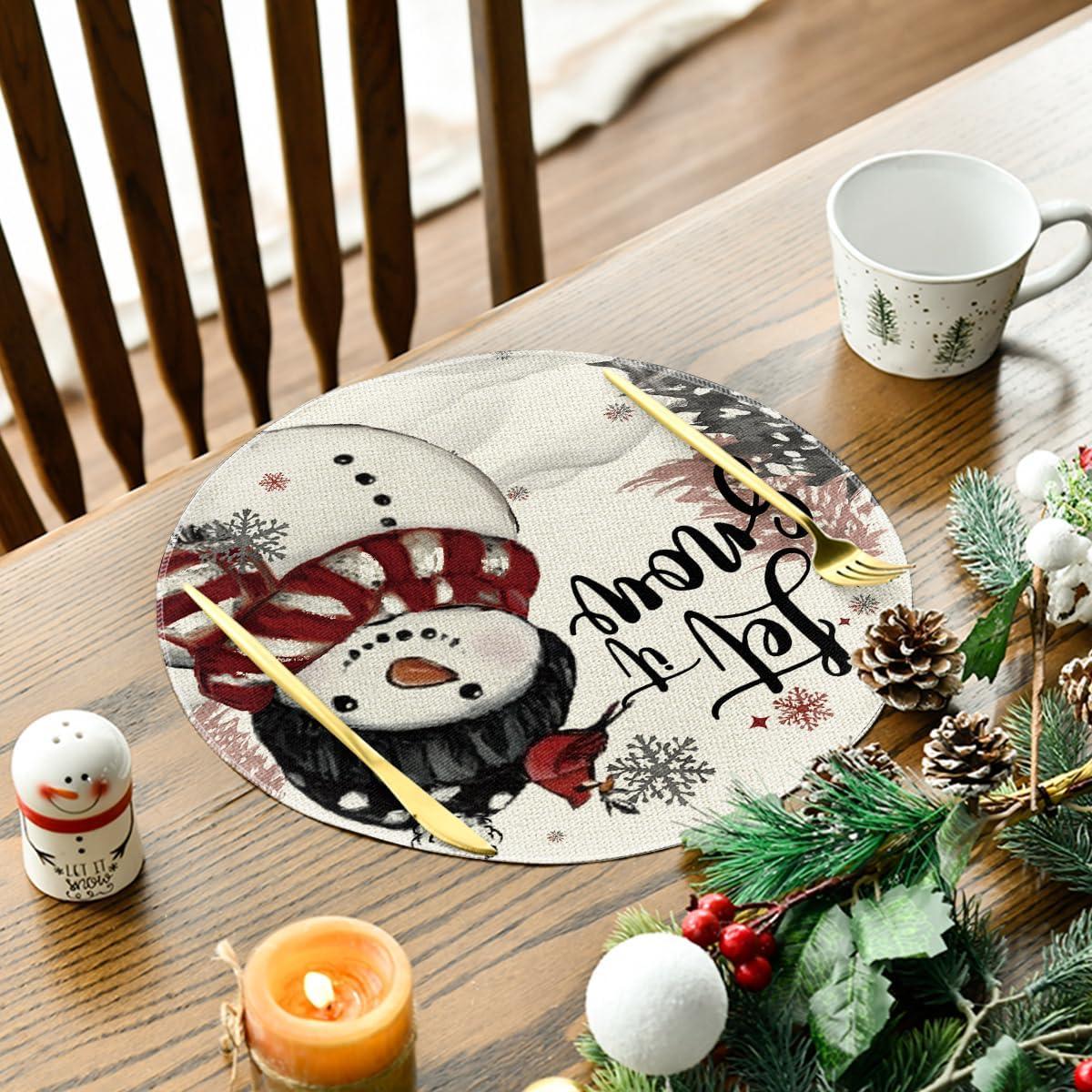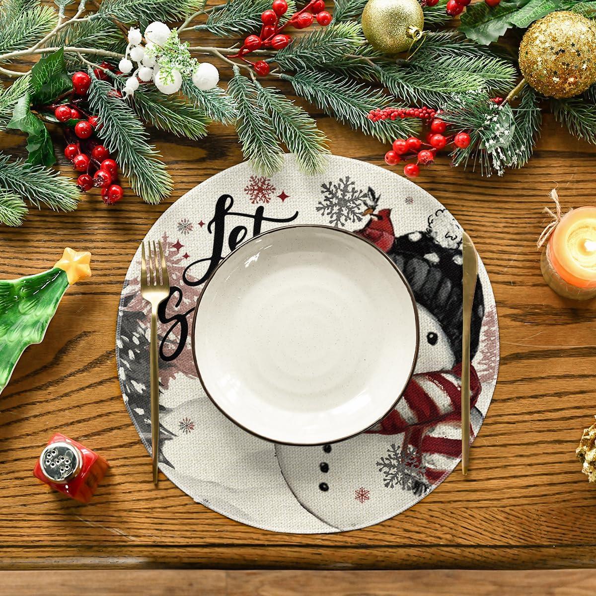 Artoid Mode Red Snowman Let It Snow Xmas Tree Merry Christmas Round Placemats Set of 4, 14 Inch Winter Round Table Mats for Dining Decoration(Black)