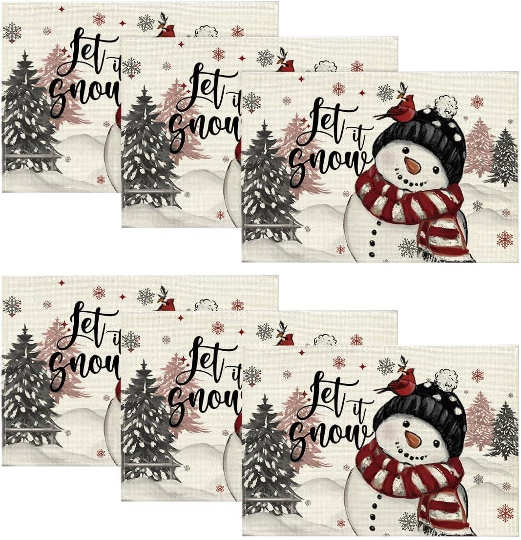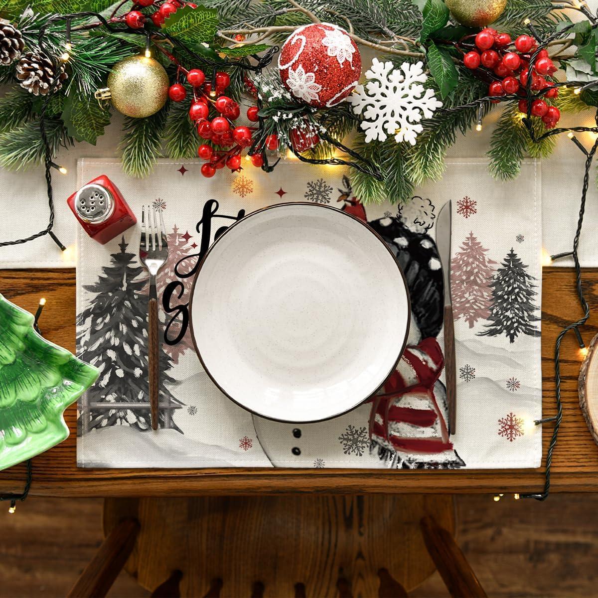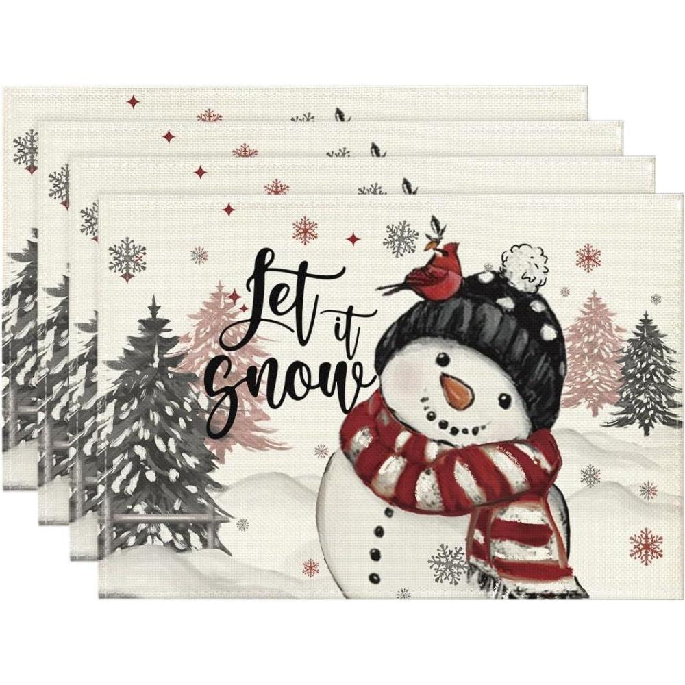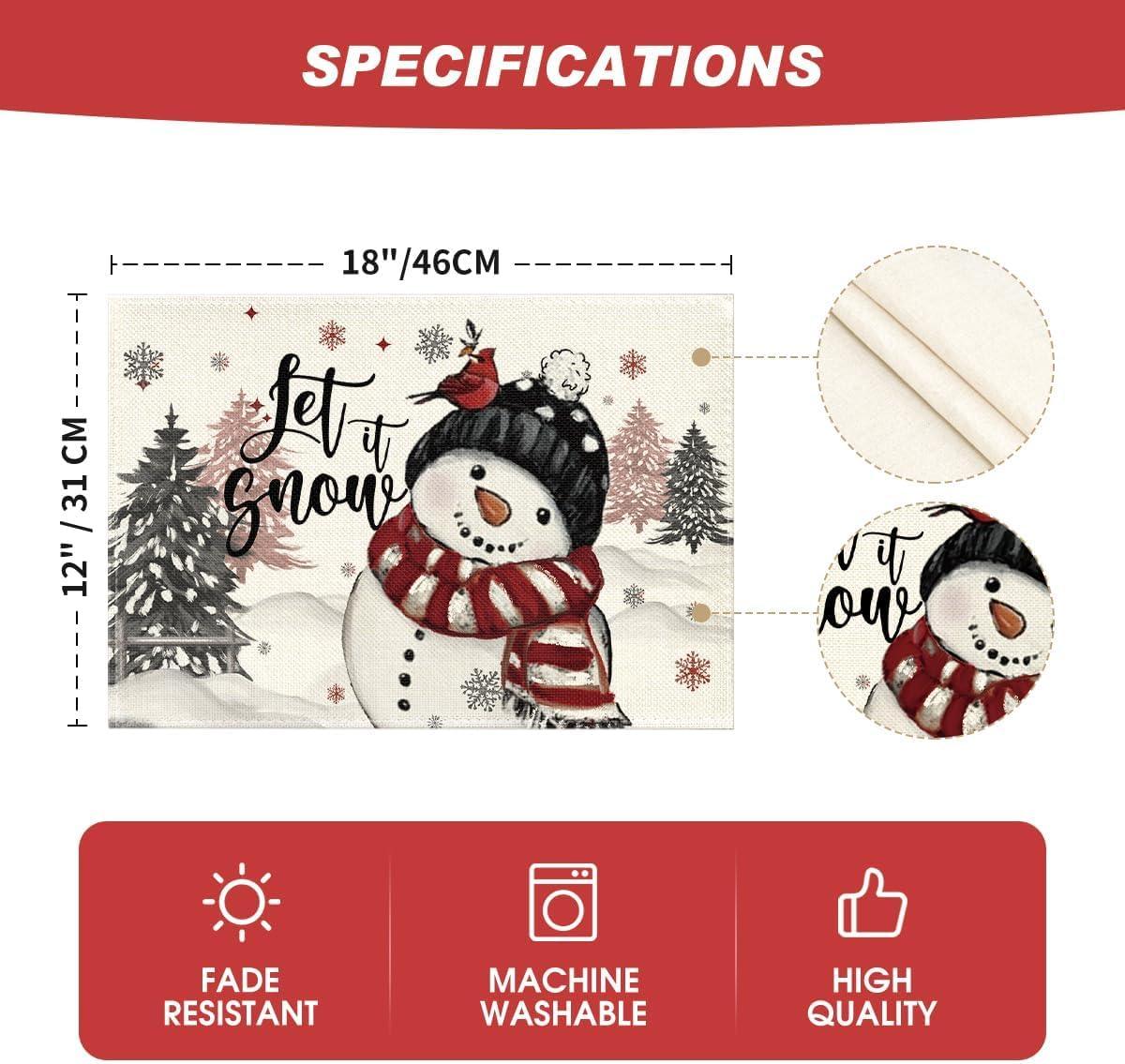 Artoid Mode Red Snowman Let It Snow Xmas Tree Merry Christmas Round Placemats Set of 4, 14 Inch Winter Round Table Mats for Dining Decoration(Black)