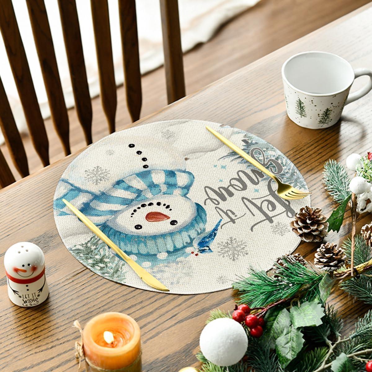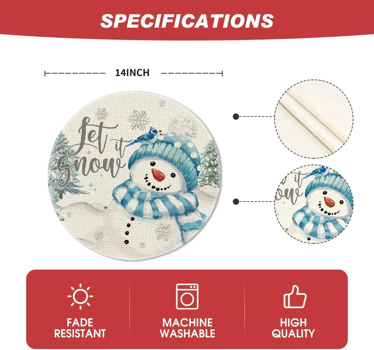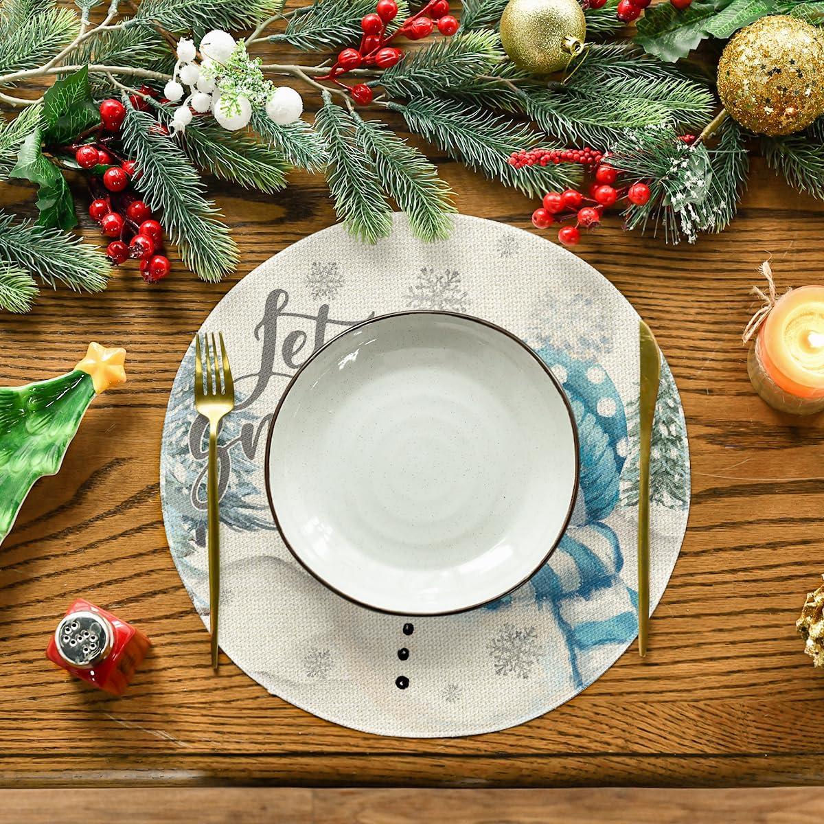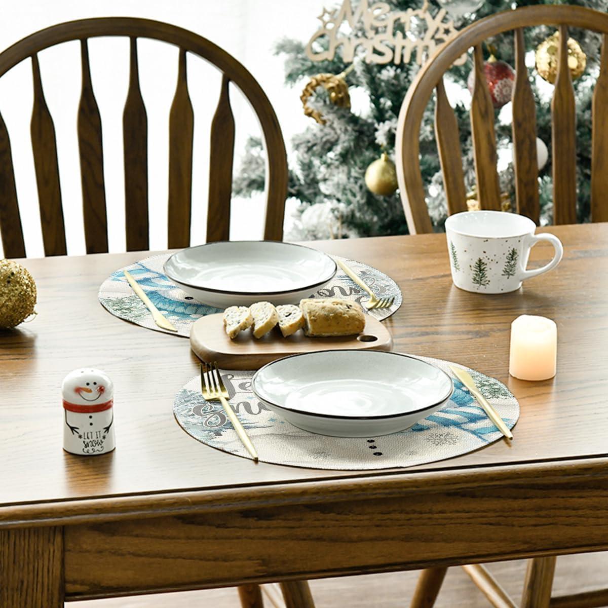 Artoid Mode Red Snowman Let It Snow Xmas Tree Merry Christmas Round Placemats Set of 4, 14 Inch Winter Round Table Mats for Dining Decoration(Blue)