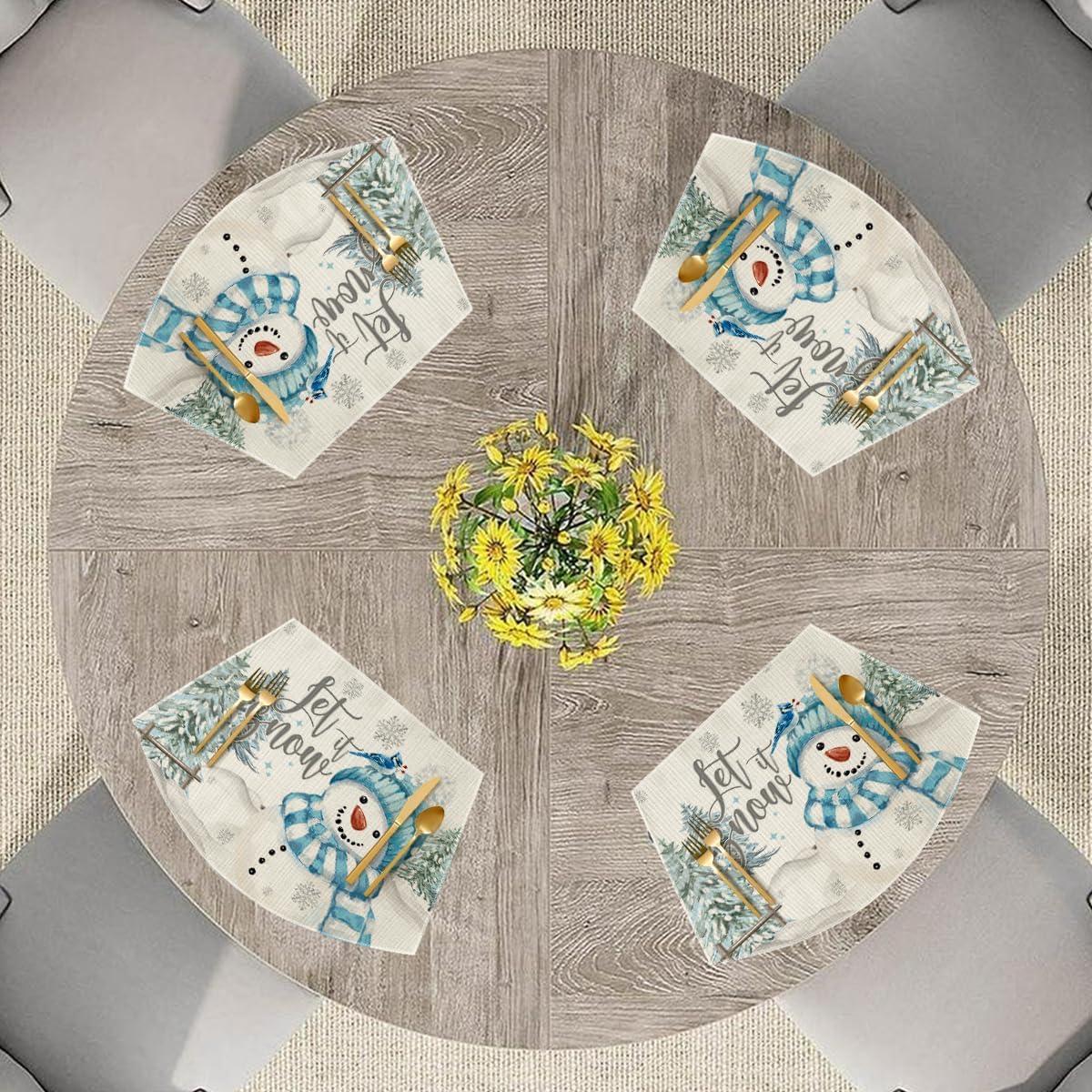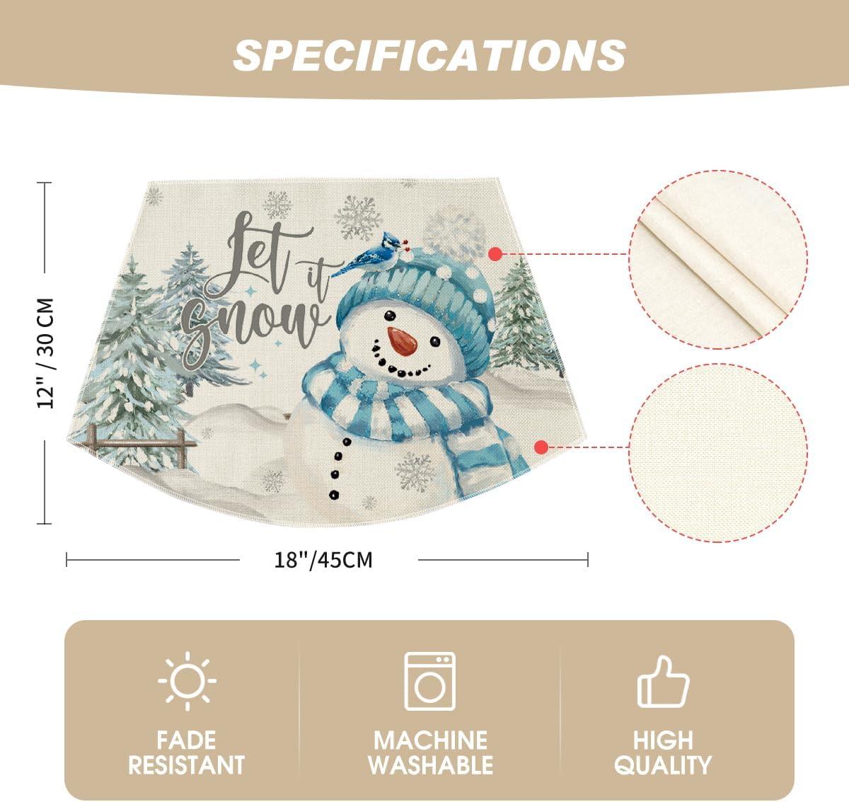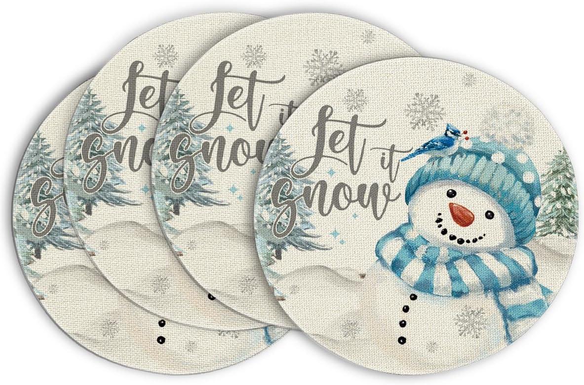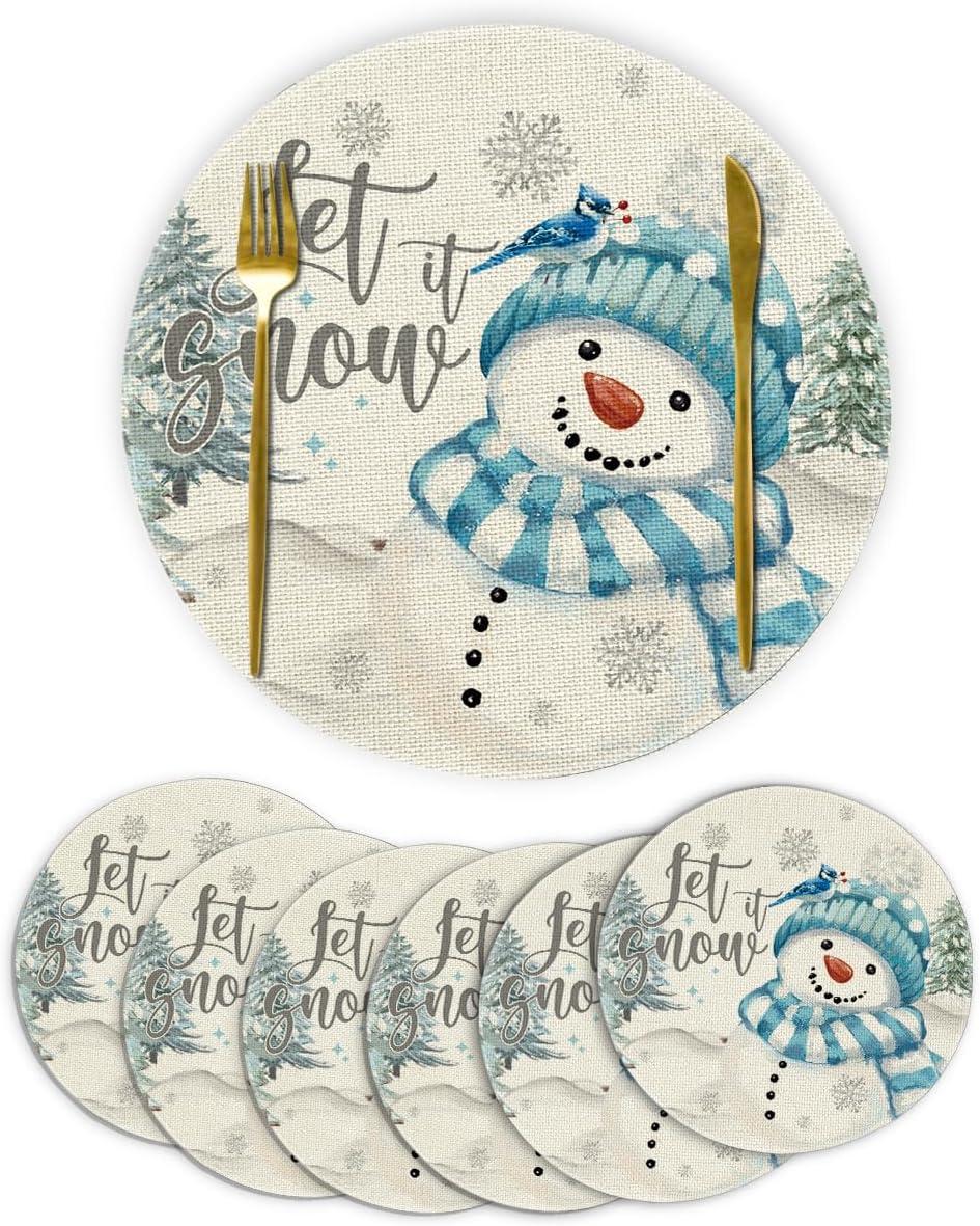 Artoid Mode Red Snowman Let It Snow Xmas Tree Merry Christmas Round Placemats Set of 4, 14 Inch Winter Round Table Mats for Dining Decoration(Blue)
