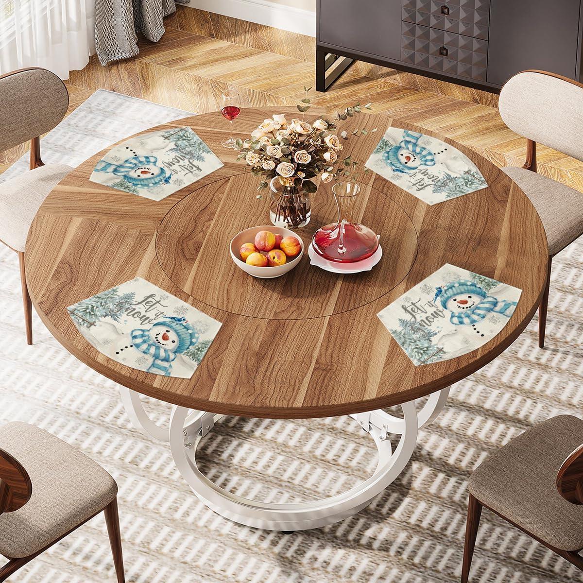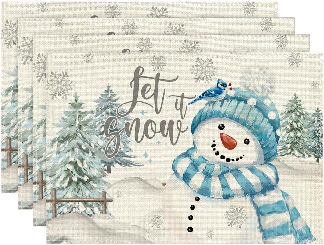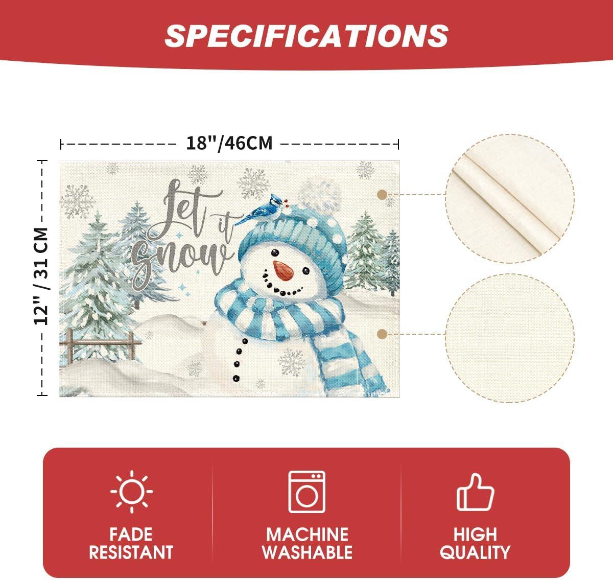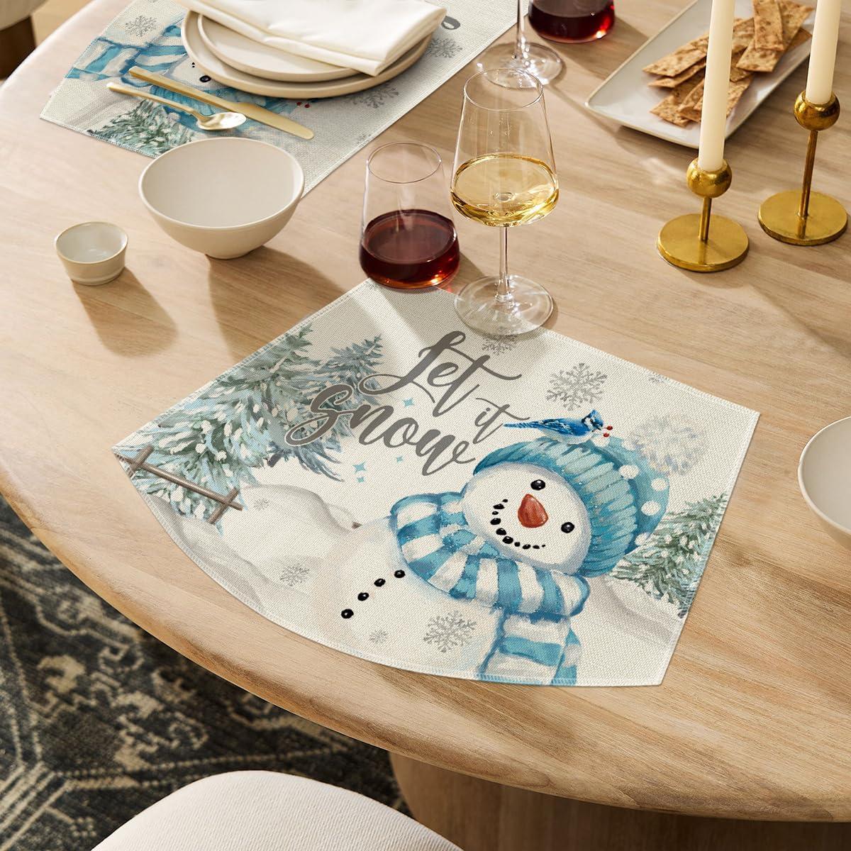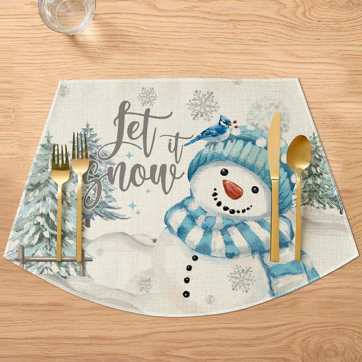 Artoid Mode Red Snowman Let It Snow Xmas Tree Merry Christmas Round Placemats Set of 4, 14 Inch Winter Round Table Mats for Dining Decoration(Blue)