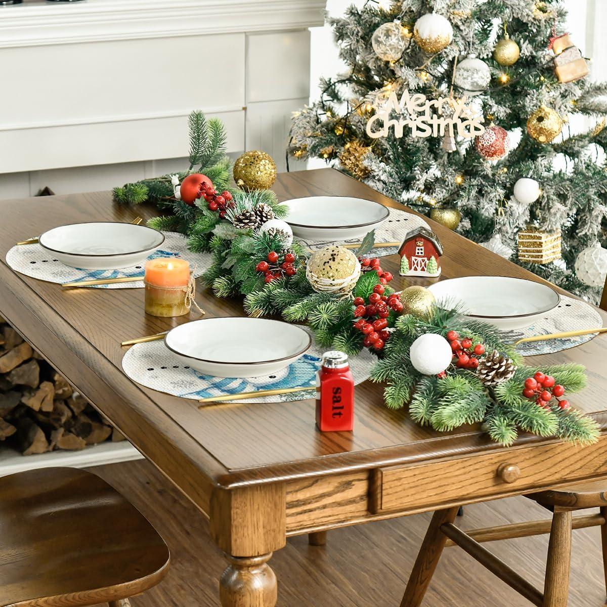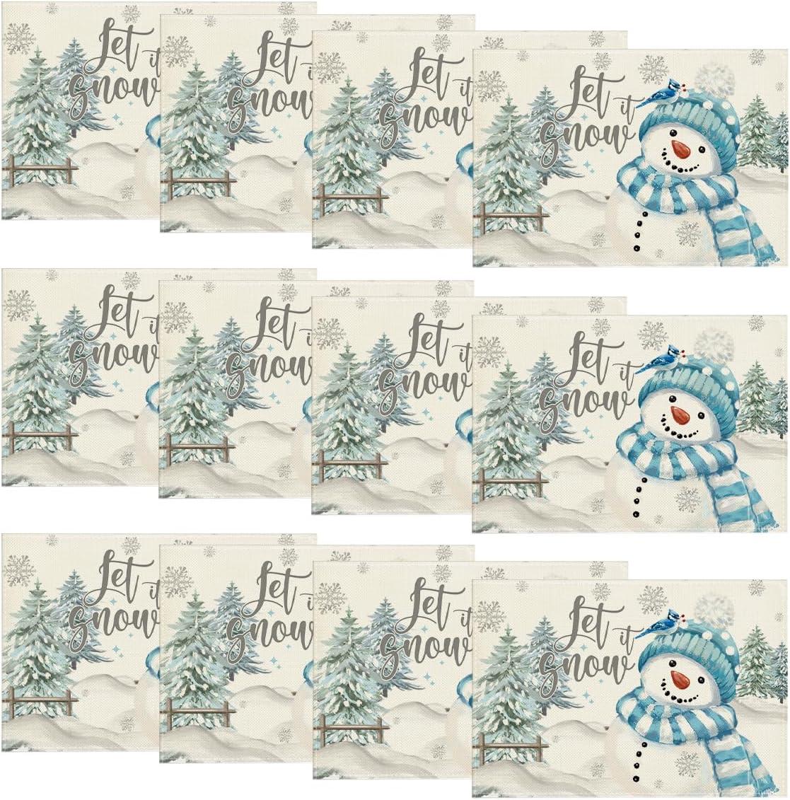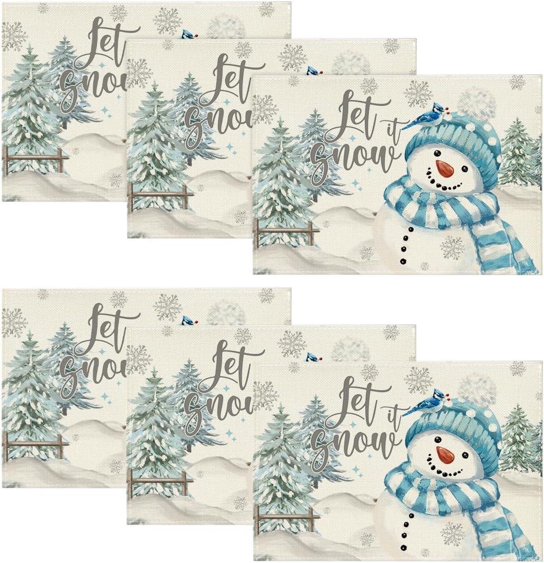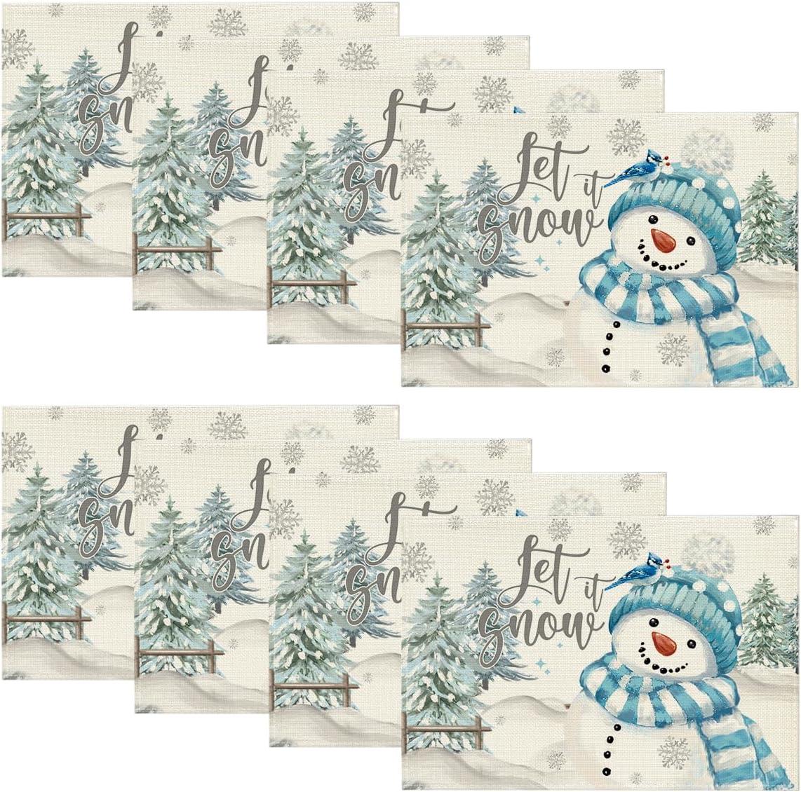 Artoid Mode Red Snowman Let It Snow Xmas Tree Merry Christmas Round Placemats Set of 4, 14 Inch Winter Round Table Mats for Dining Decoration(Blue)