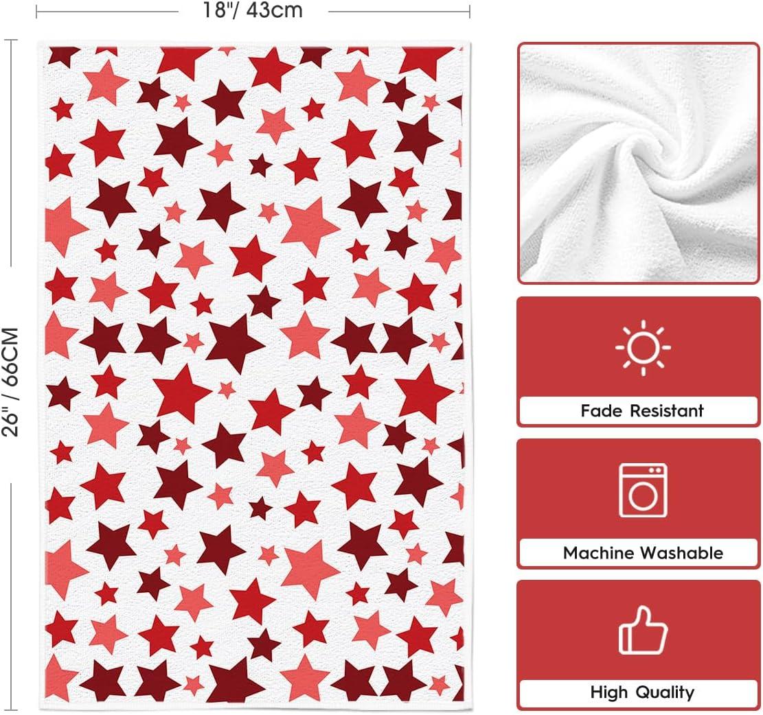 Artoid Mode Red Stars America Patriotic 4th of July Kitchen Towels Dish Towels, 18×26 Inch Farmhouse Memorial Day Decoration Hand Towels Set of 2(Beige)