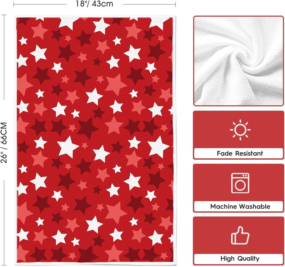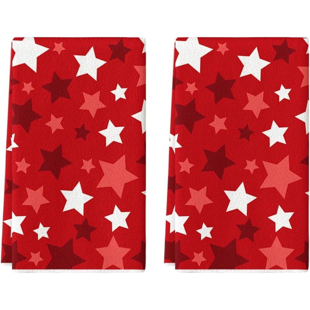 Artoid Mode Red Stars America Patriotic 4th of July Kitchen Towels Dish Towels, 18×26 Inch Farmhouse Memorial Day Decoration Hand Towels Set of 2(Red)