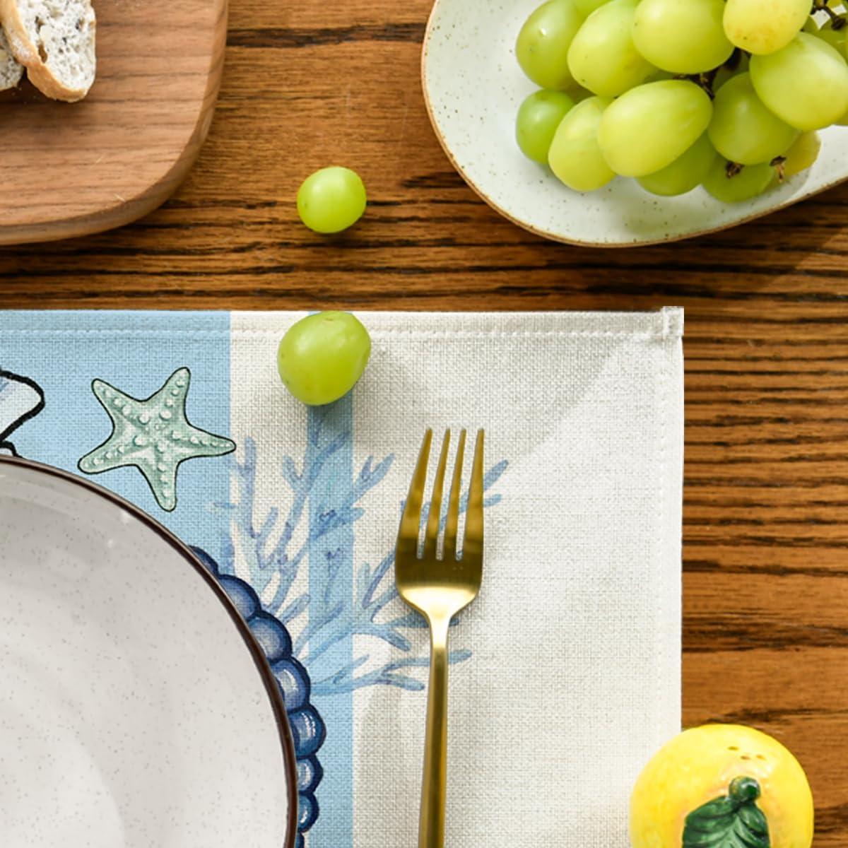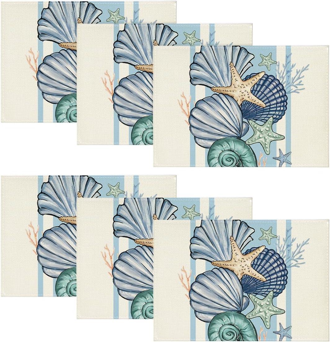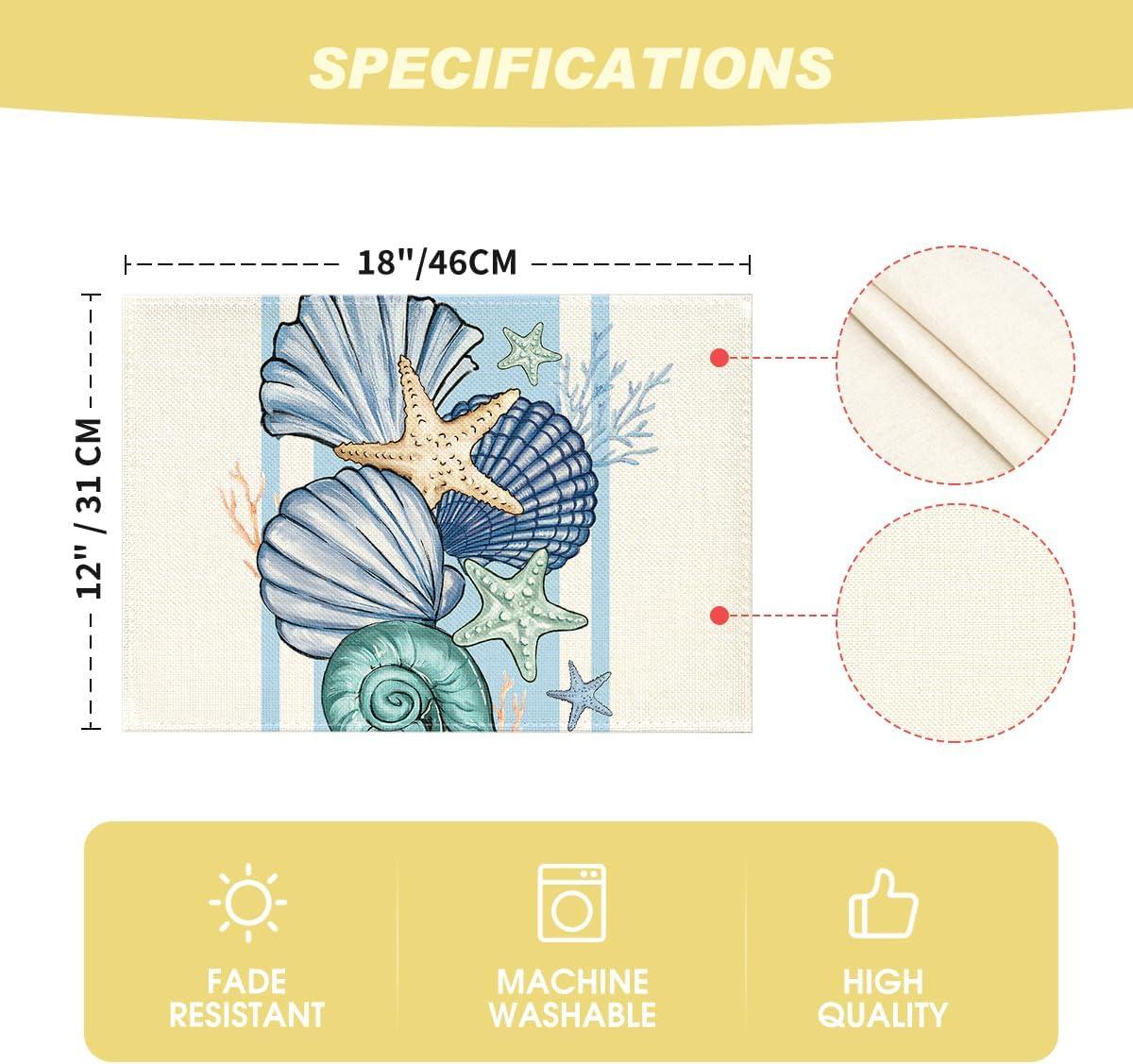 Artoid Mode Sea Shell Starfish Summer Placemats Set of 4, 12×18 Inch Seasonal Spring Ocean Table Mats for Party Kitchen Dining Decoration(Beige)