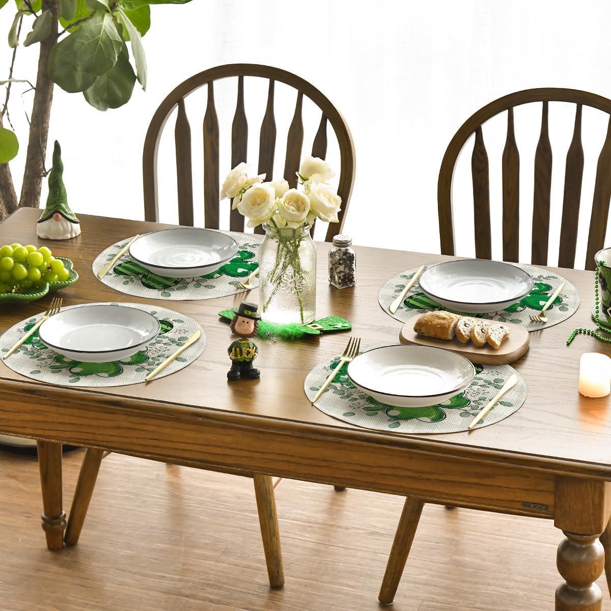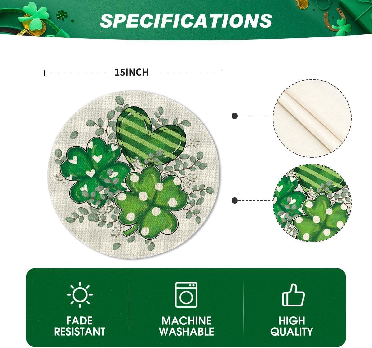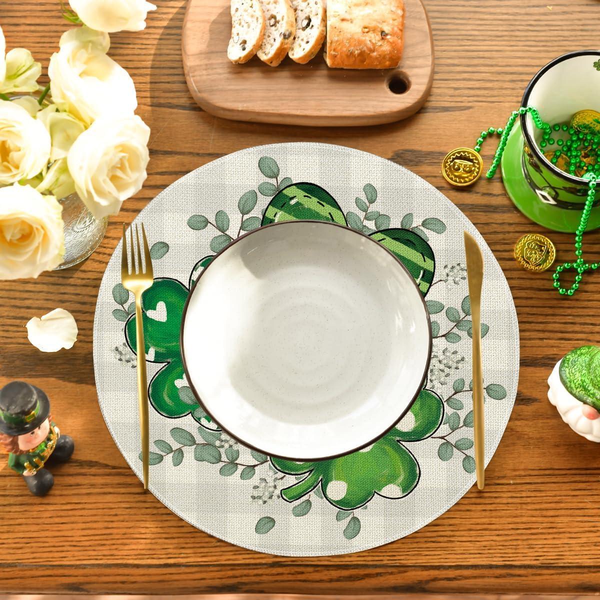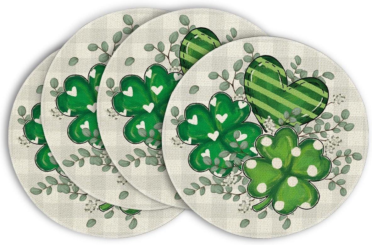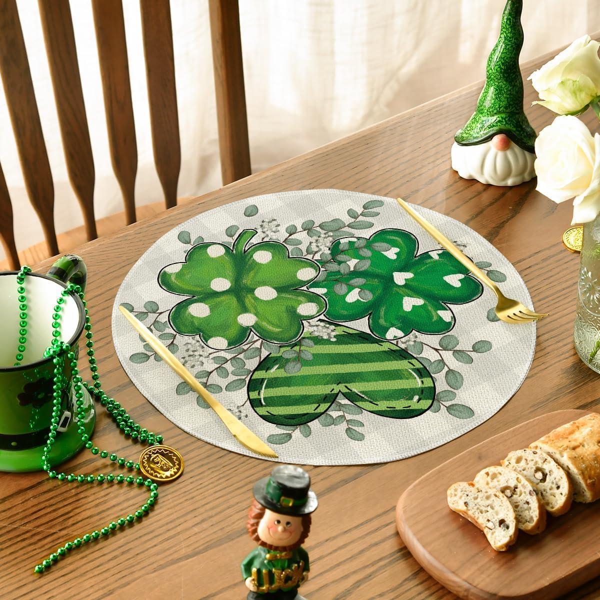 Artoid Mode Shamrock Eucalyptus Heart St. Patrick’s Day Placemats Set of 4, 12×18 Inch Seasonal Spring Table Mats for Party Kitchen Dining Decoration(Beige)