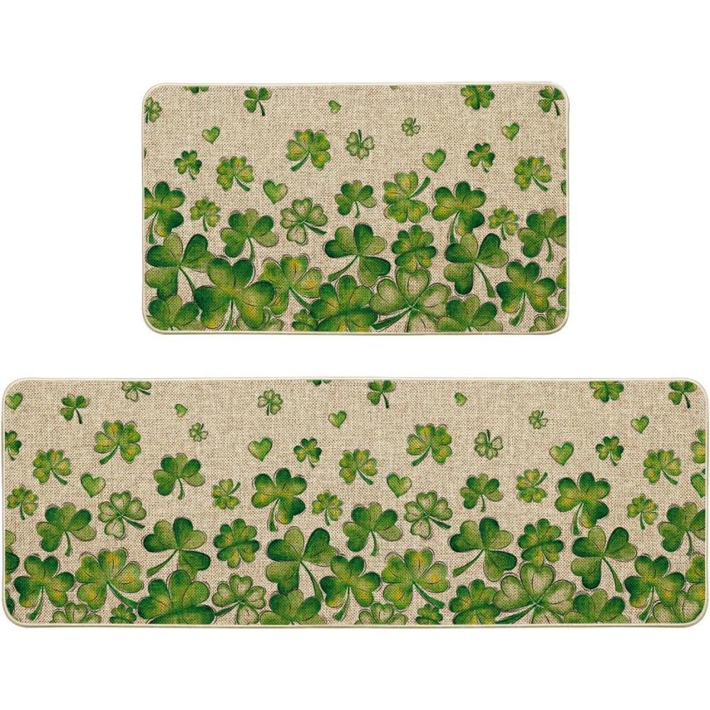 Artoid Mode Shamrock St. Patrick’s Day Kitchen Mats Set of 2, Lucky Home Decor Low-Profile Kitchen Rugs for Floor – 17×29 and 17×47 Inch