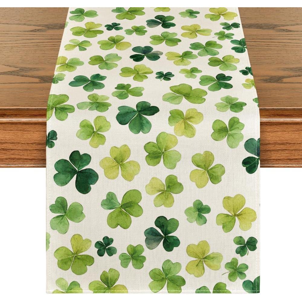 Artoid Mode Shamrock St. Patrick’s Day Table Runner, Seasonal Spring Lucky Kitchen Dining Table Decoration for Home Party Decor 13 x 72 Inch(Green)