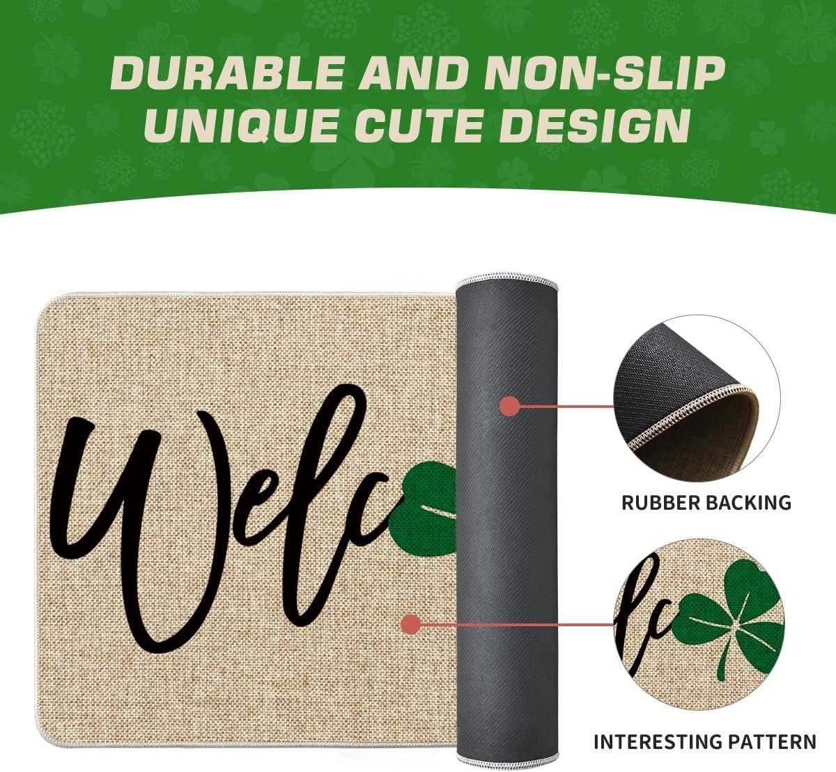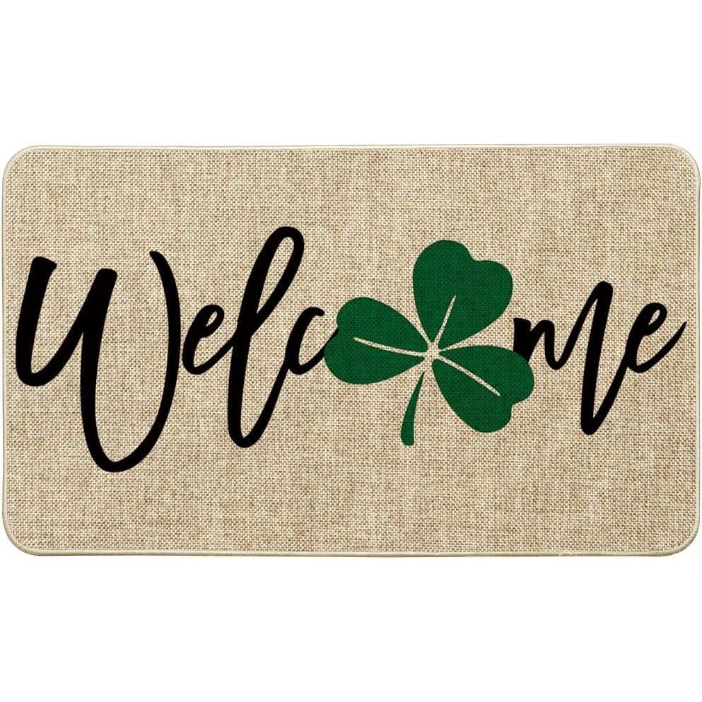 Artoid Mode Shamrock Welcome Doormat, Seasonal Holiday St. Patrick’s Day Low-Profile Yard Floor Switch Mat for Indoor Outdoor 17 x 29 Inch