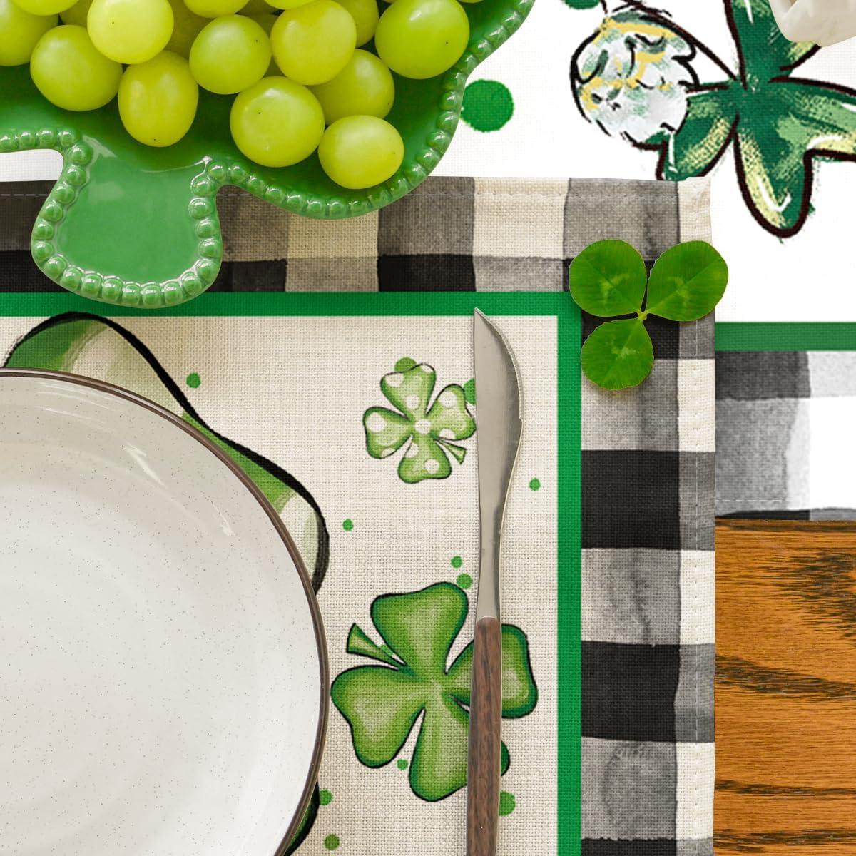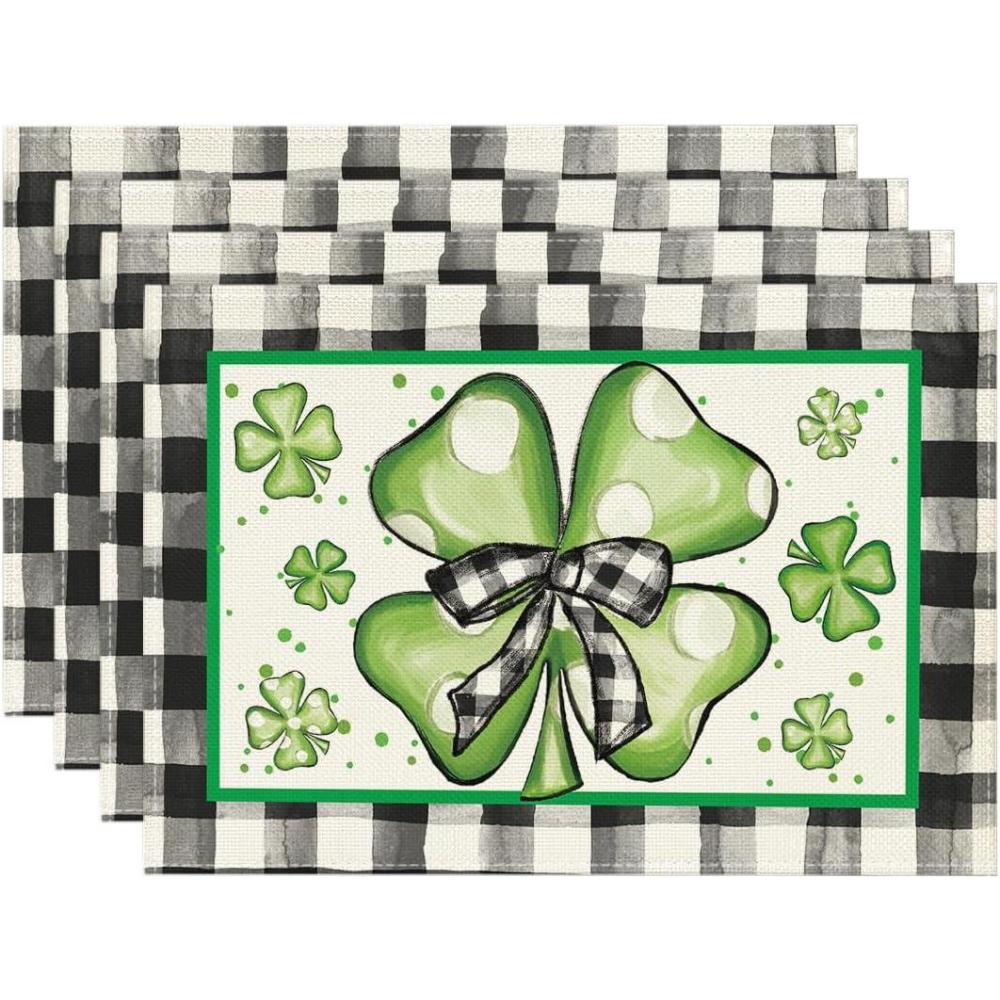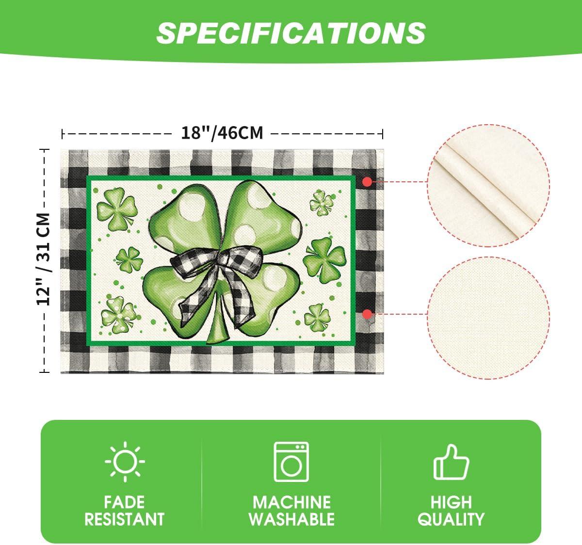 Artoid Mode Shamrocks St.Patrick’s Day Placemats Set of 4, 12×18 Inch Holiday Buffalo Plaid Dots Table Mats for Party Kitchen Dining Decoration(Green)
