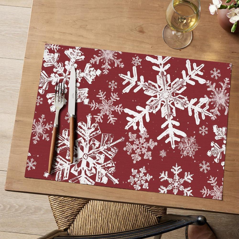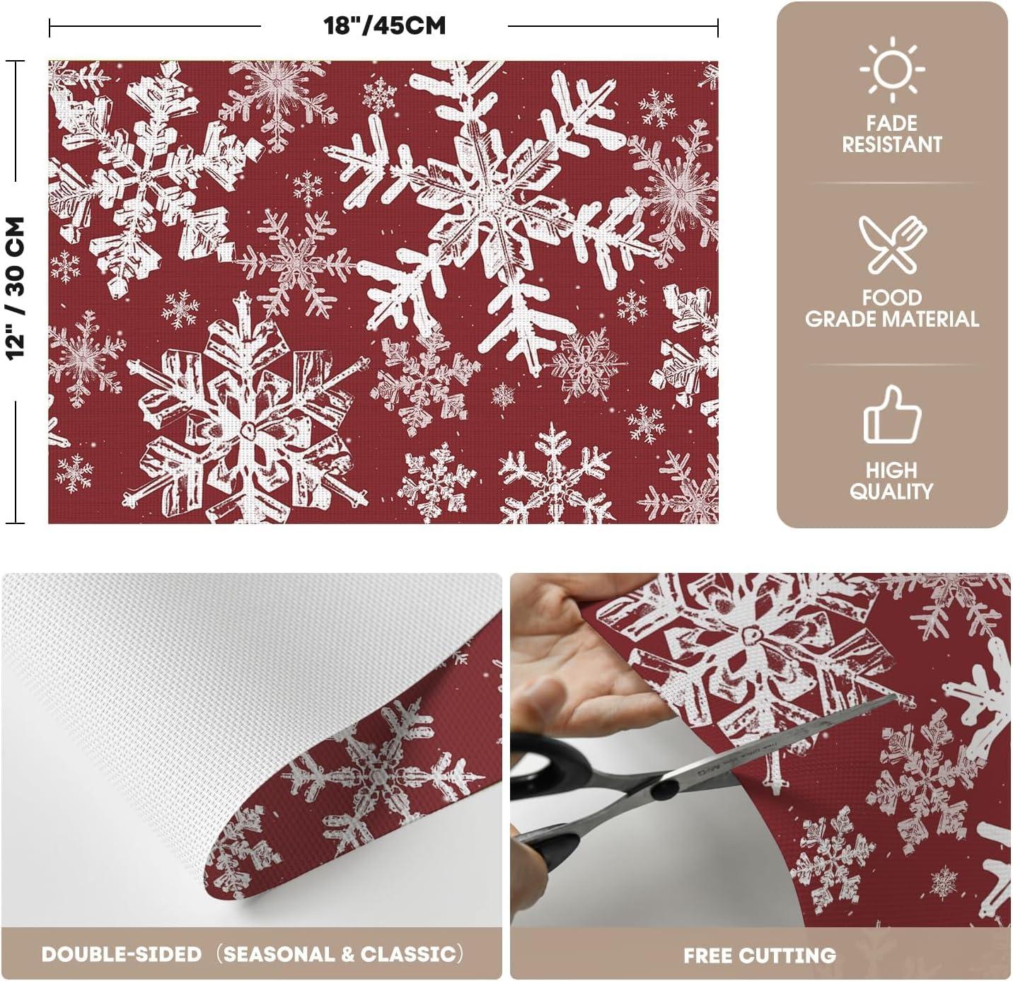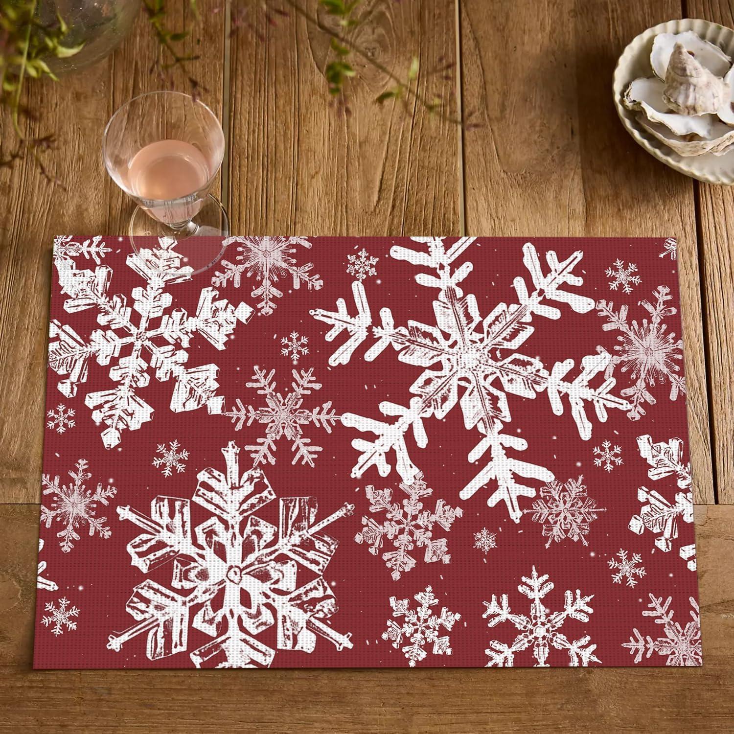 Artoid Mode Snowflakes Christmas Vinyl Placemats Set of 4, 12×18 Inch Wipeable Navy Blue Winter PVC Woven Table Mats for Party Kitchen Dining Decor(Red)