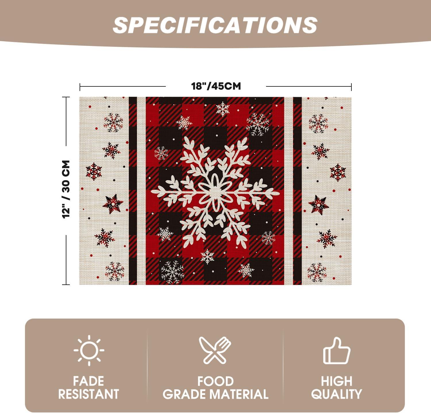 Artoid Mode Snowflakes Vinyl Christmas Placemats Set of 4, 12×18 Inch Wipeable Non-Slip PVC Place Mats for Party Kitchen Dining Decor(Beige)