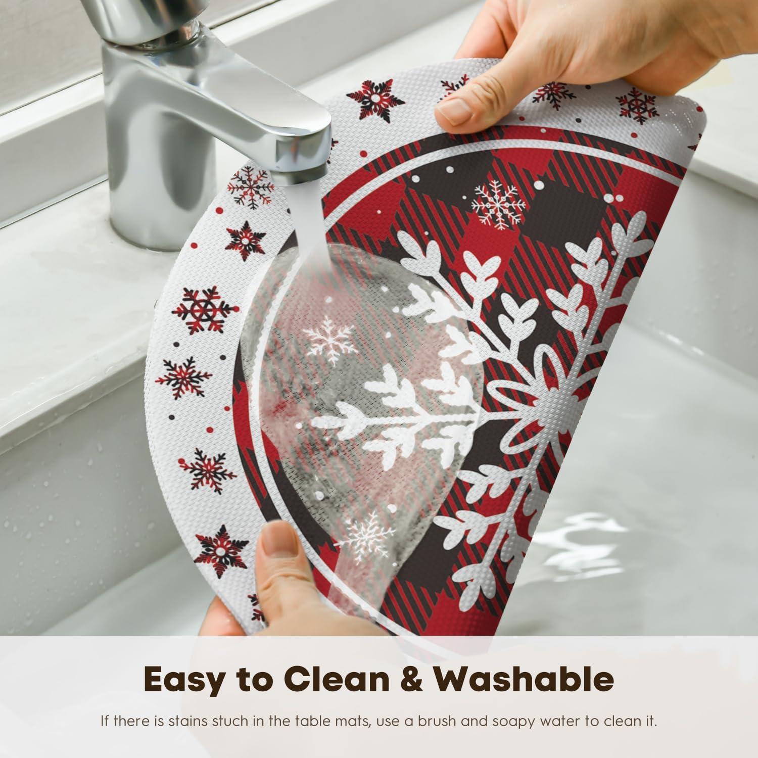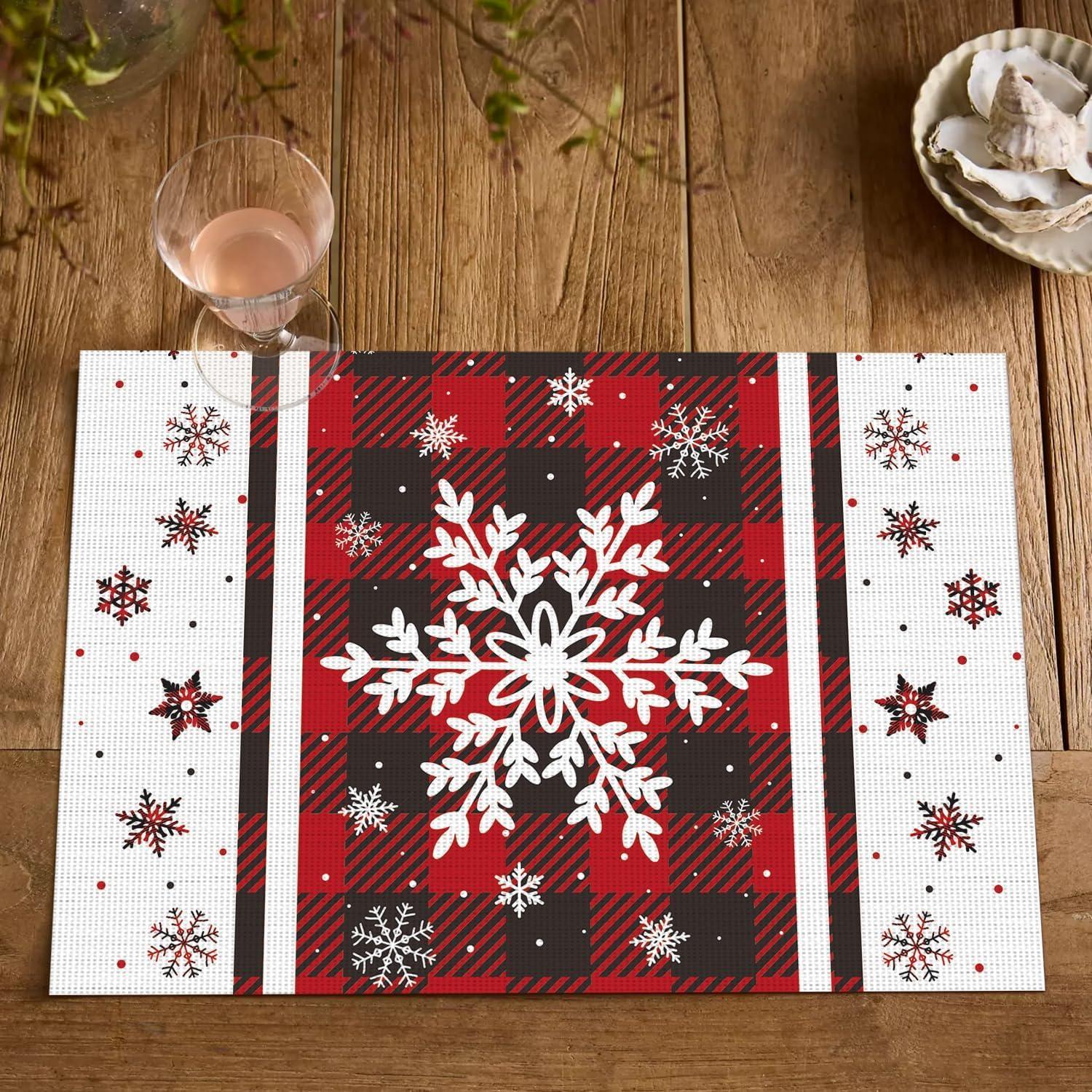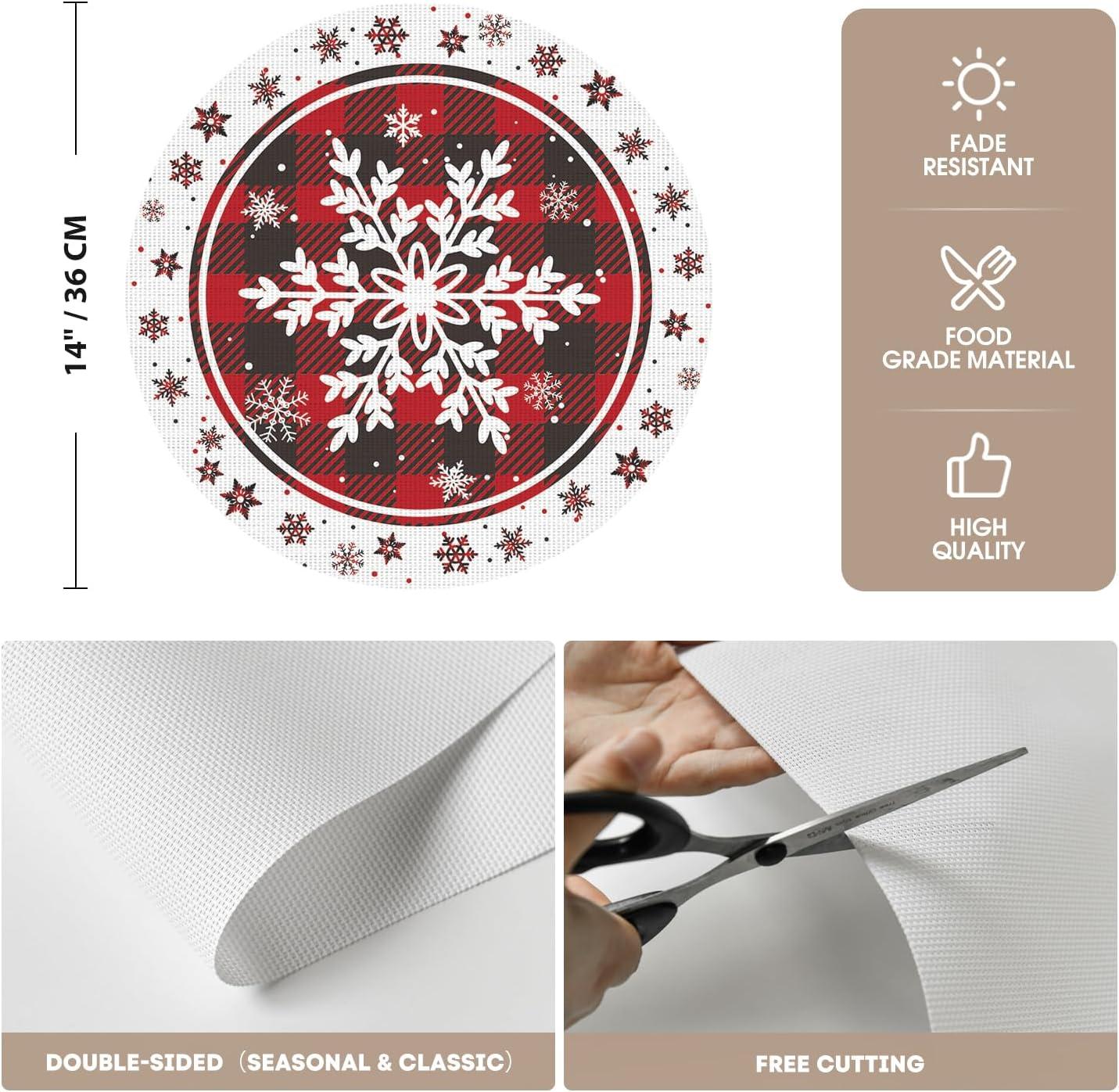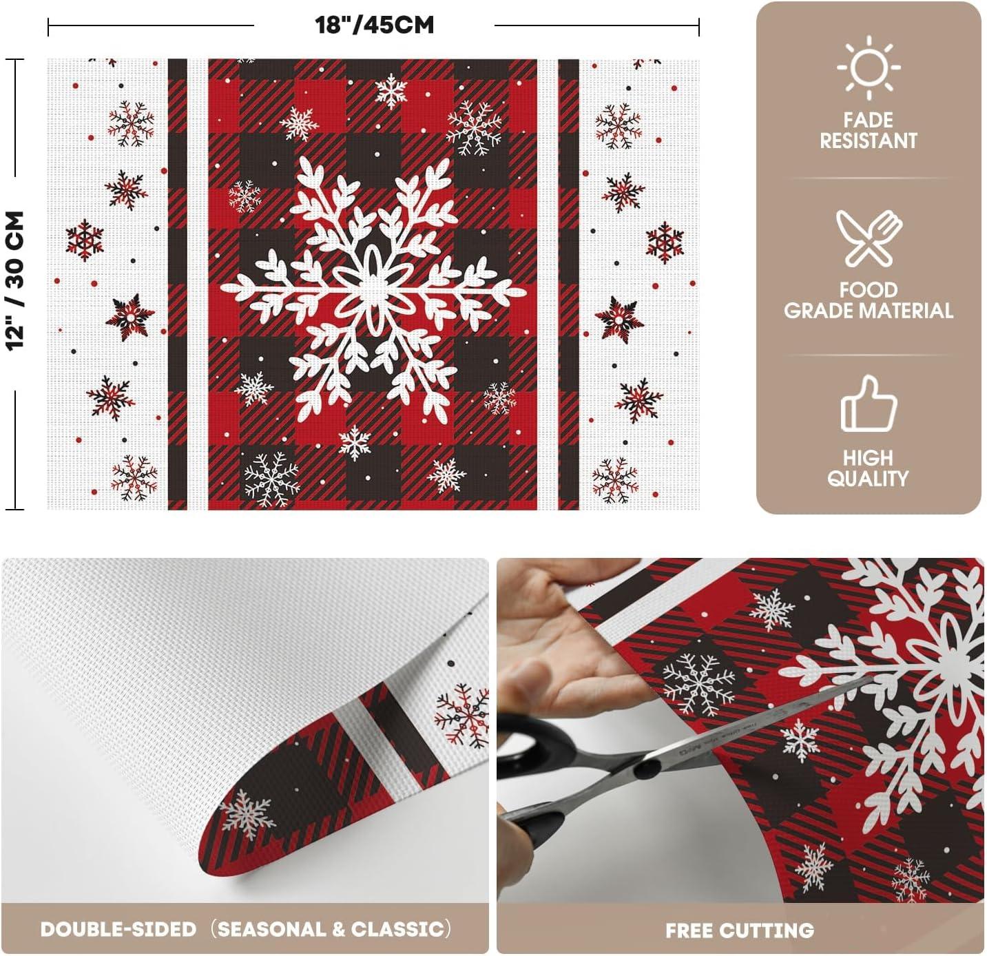 Artoid Mode Snowflakes Vinyl Christmas Placemats Set of 4, 12×18 Inch Wipeable Non-Slip PVC Place Mats for Party Kitchen Dining Decor(Red)