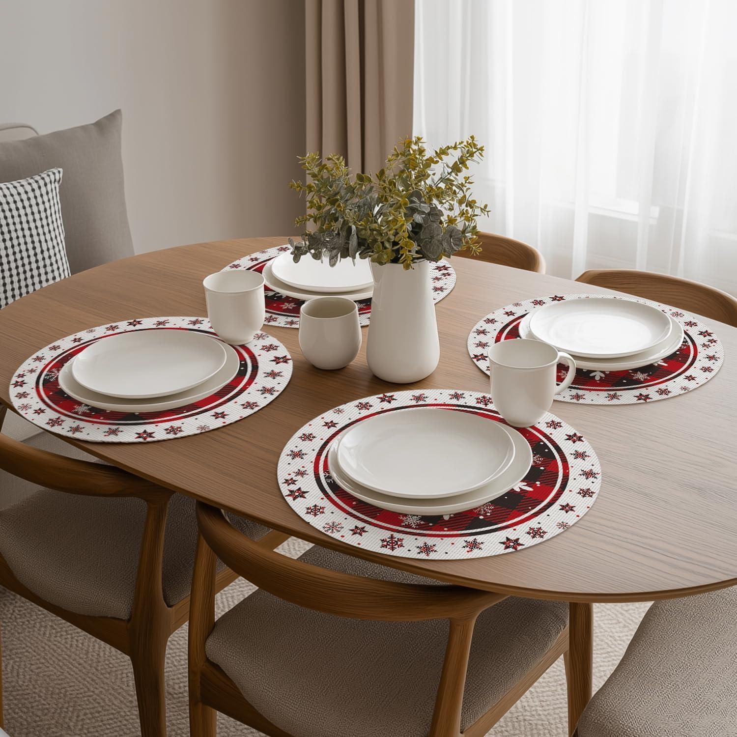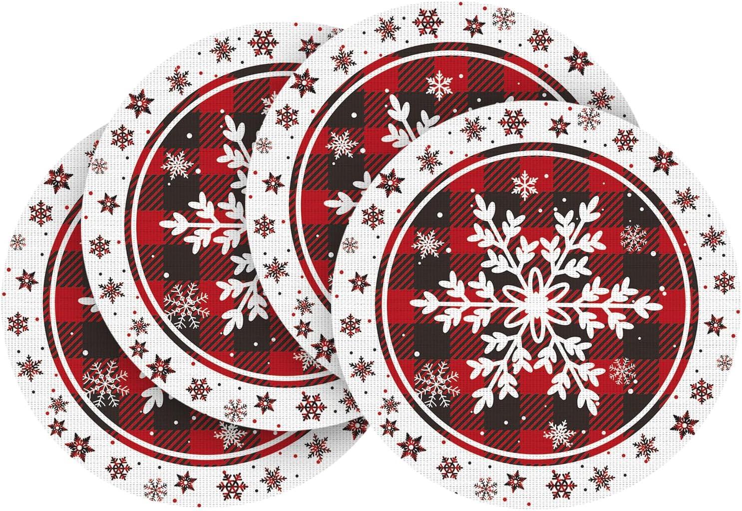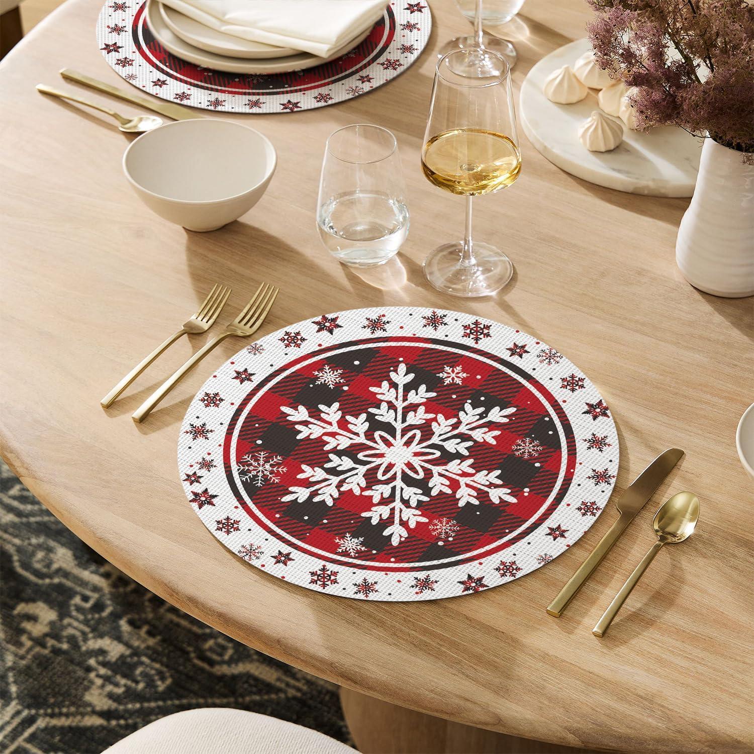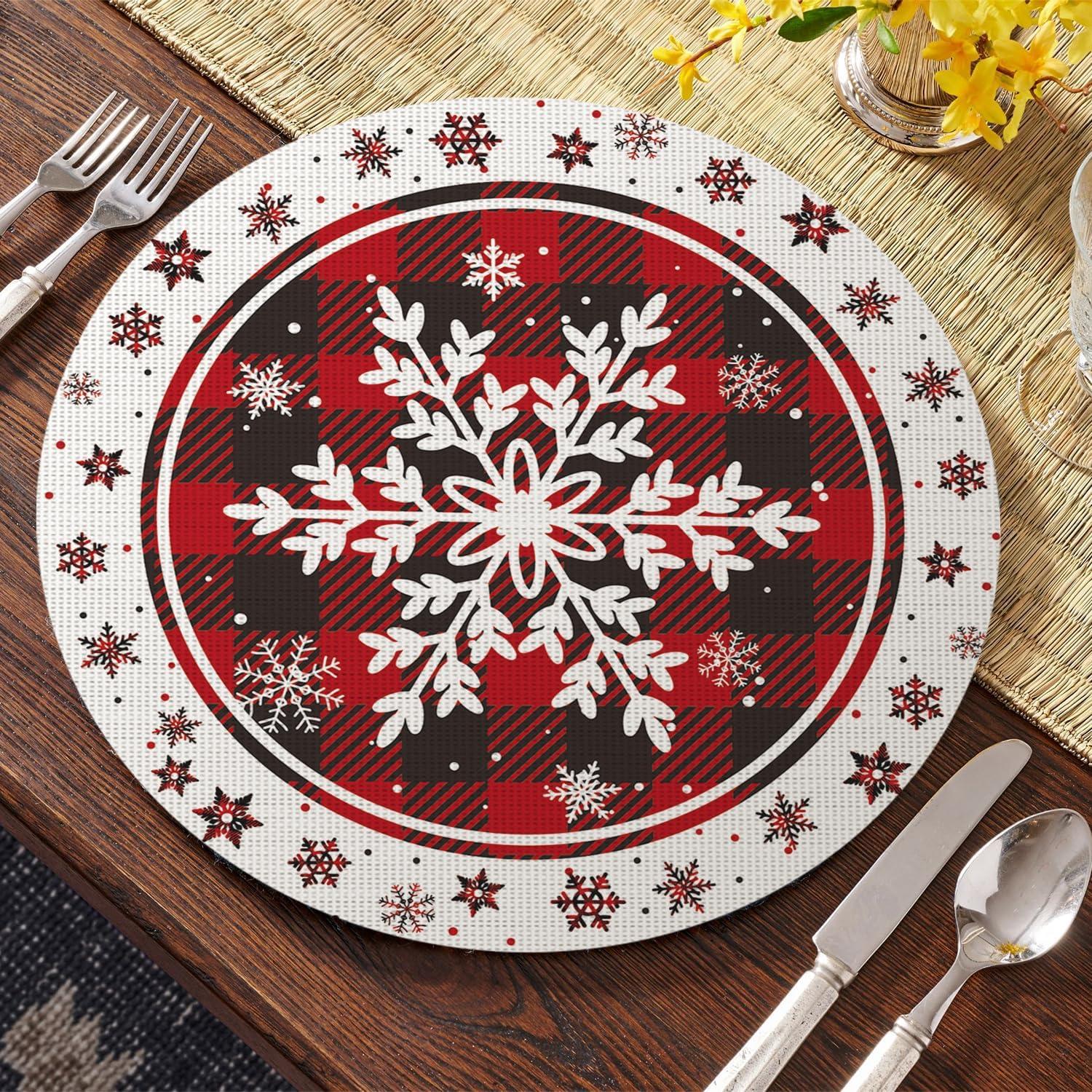 Artoid Mode Snowflakes Vinyl Christmas Placemats Set of 4, 12×18 Inch Wipeable Non-Slip PVC Place Mats for Party Kitchen Dining Decor(Red)