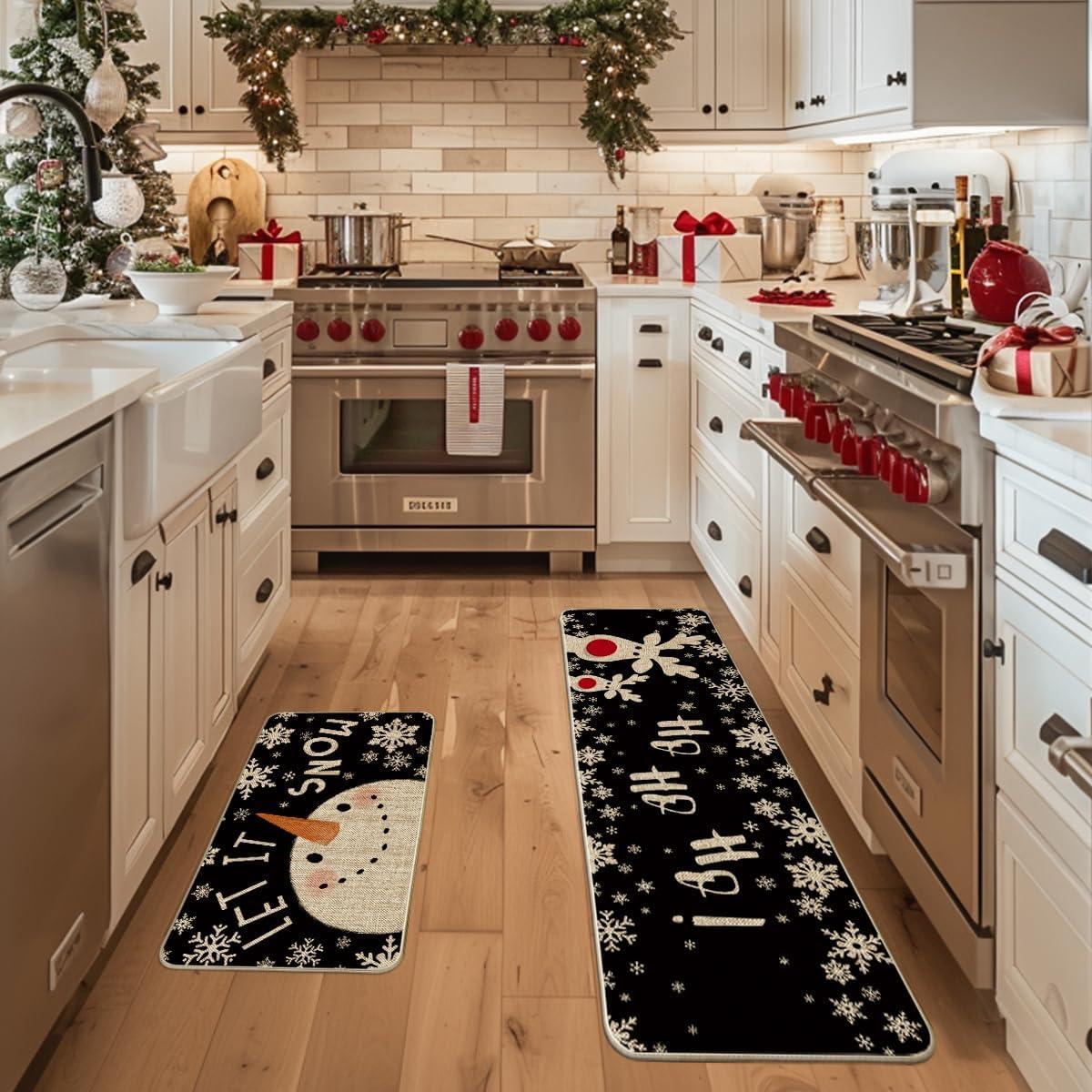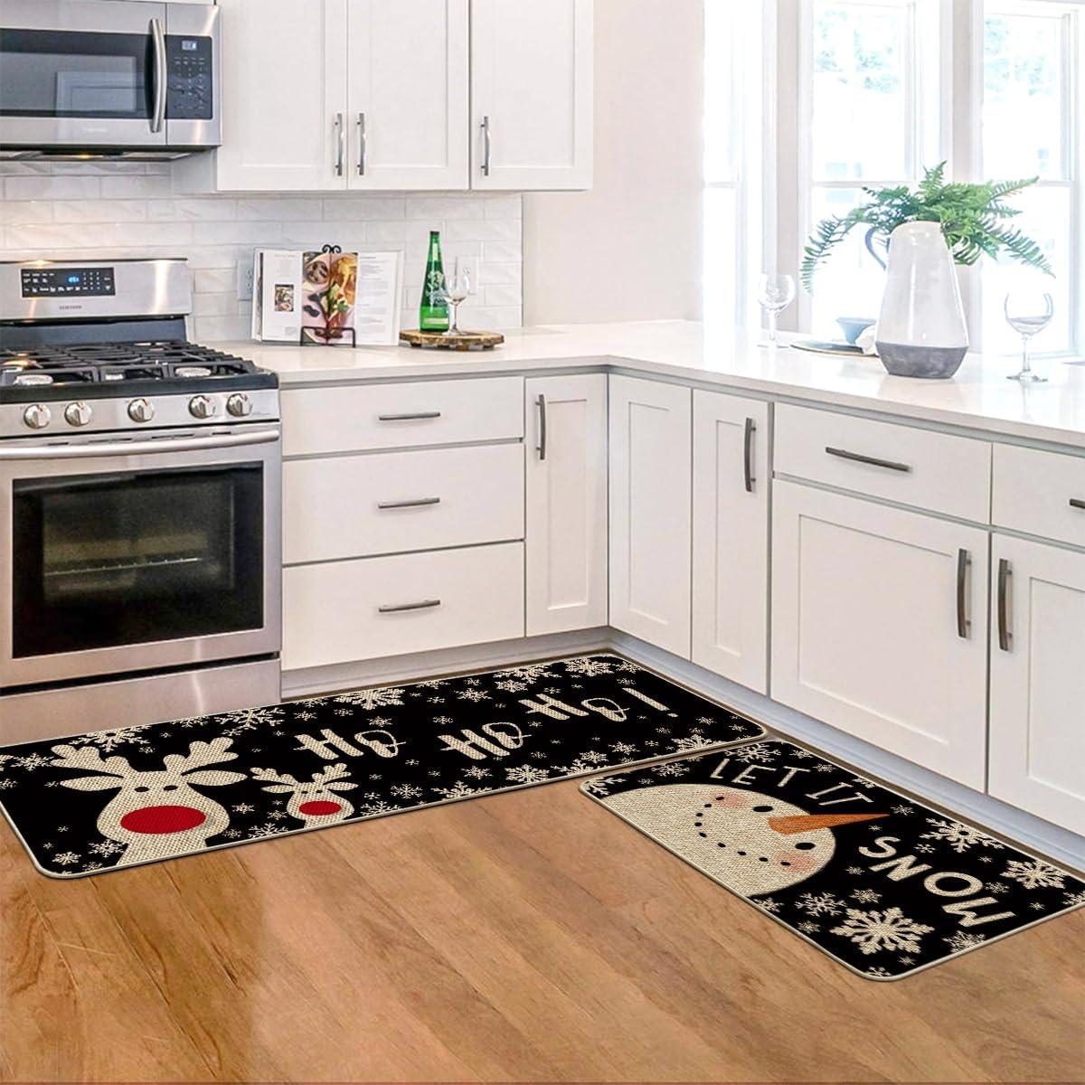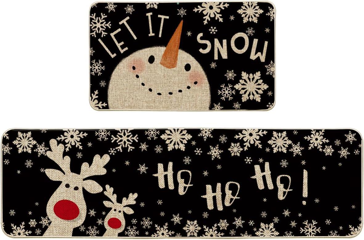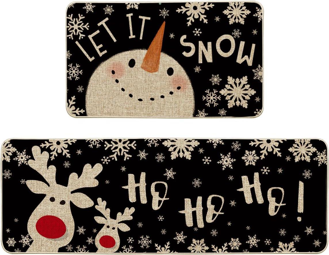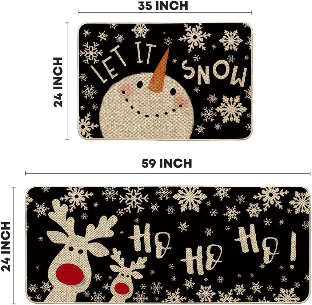 Artoid Mode Snowman Deer Let It Snow Snowflake Christmas Kitchen Mats Set of 2, Winter Decor Low-Profile Kitchen Rugs for Floor – 17×29 and 17×47 Inch(Black)