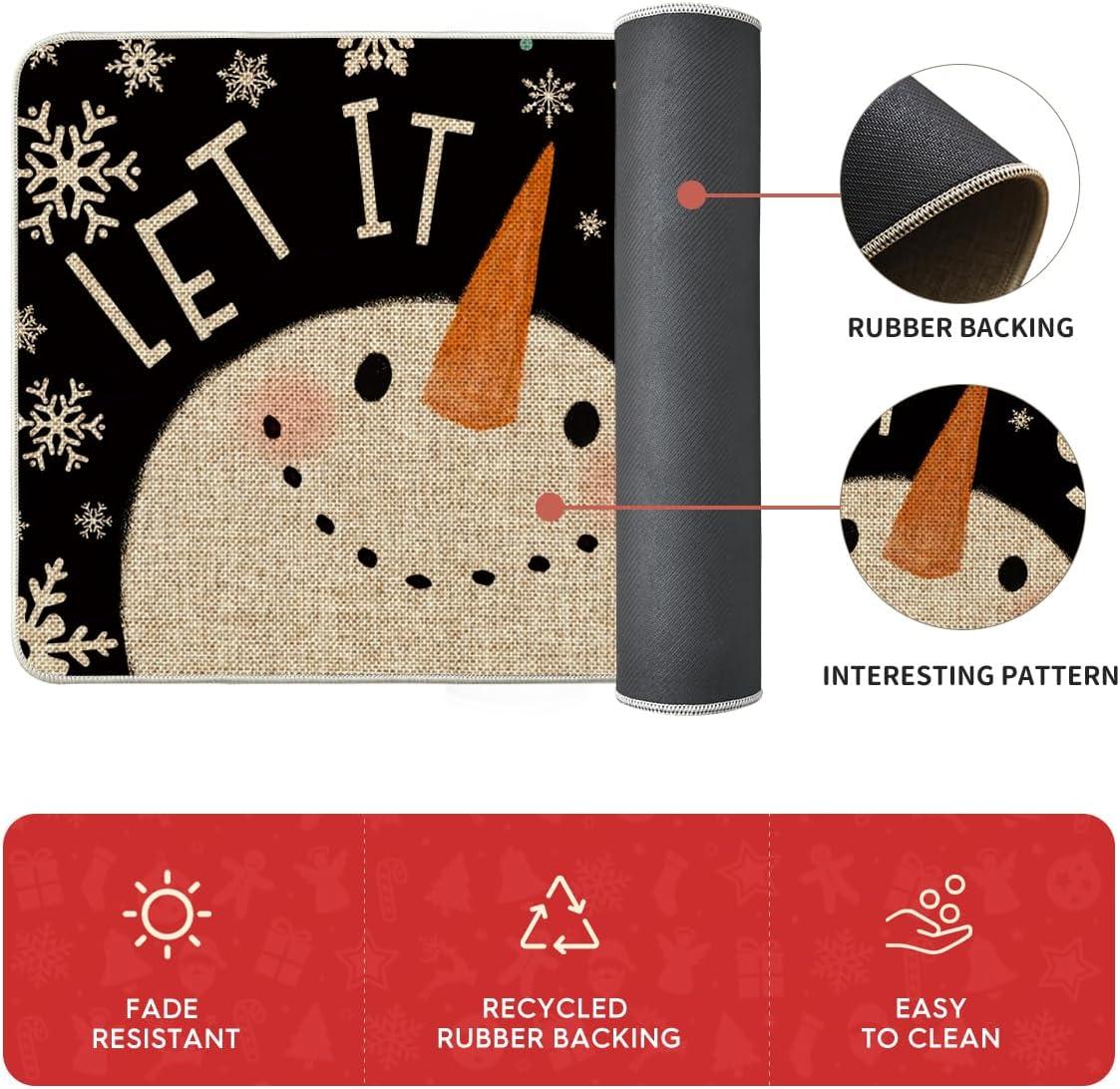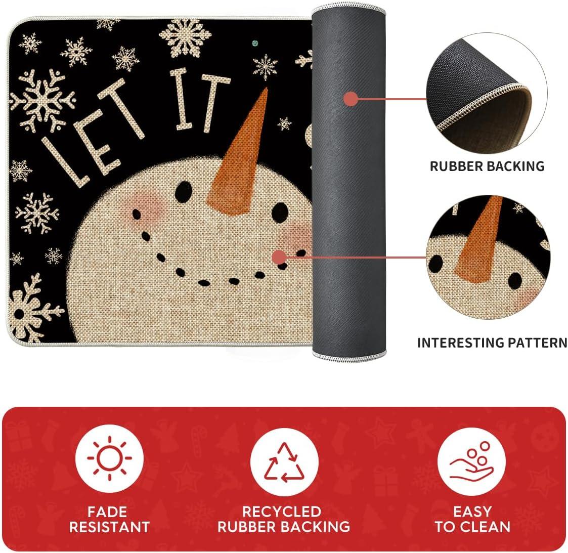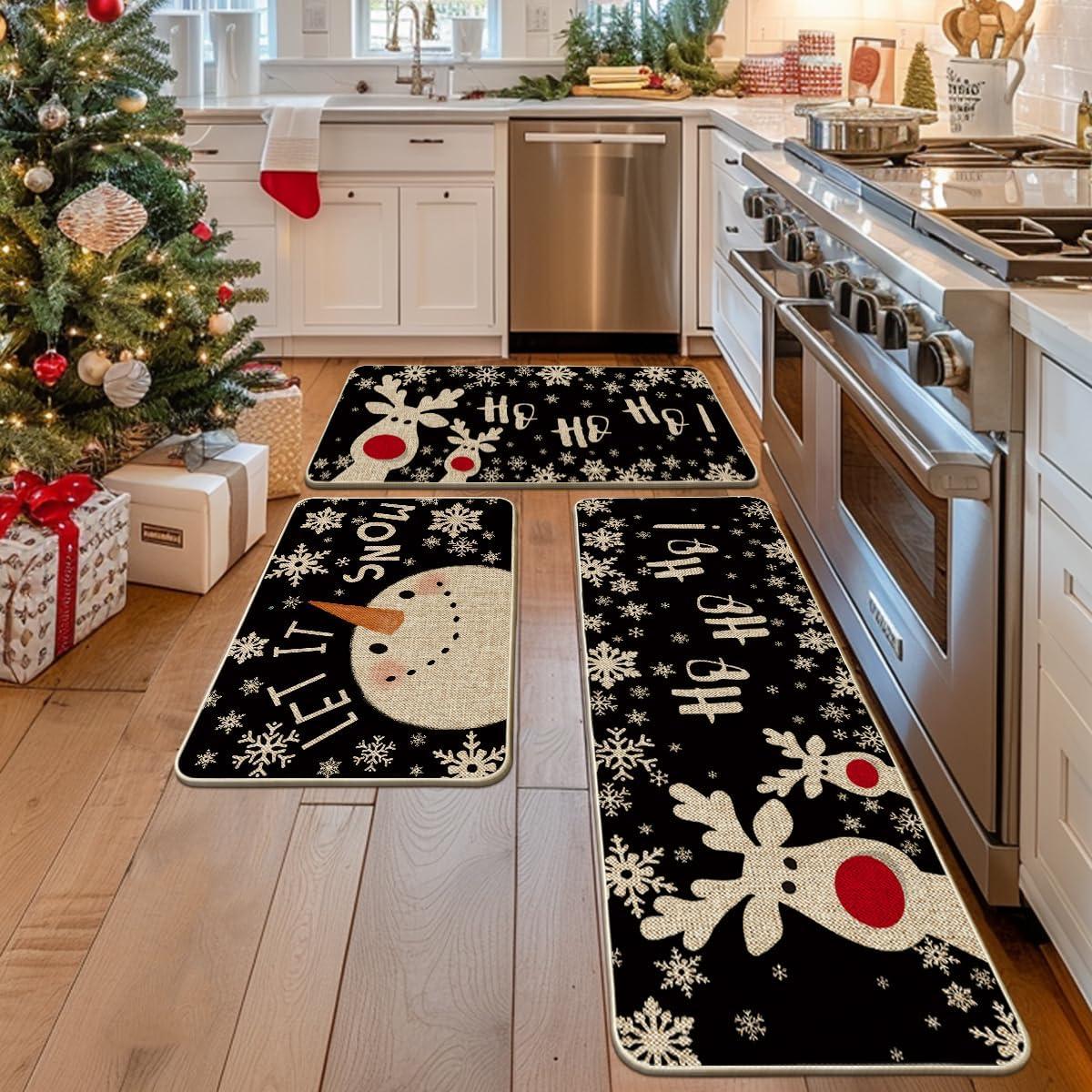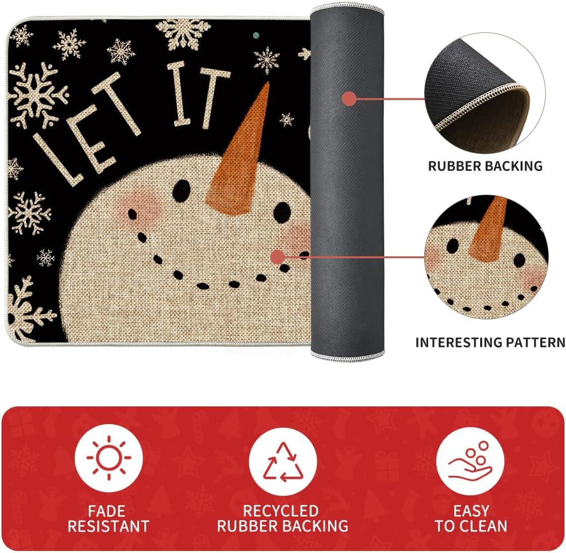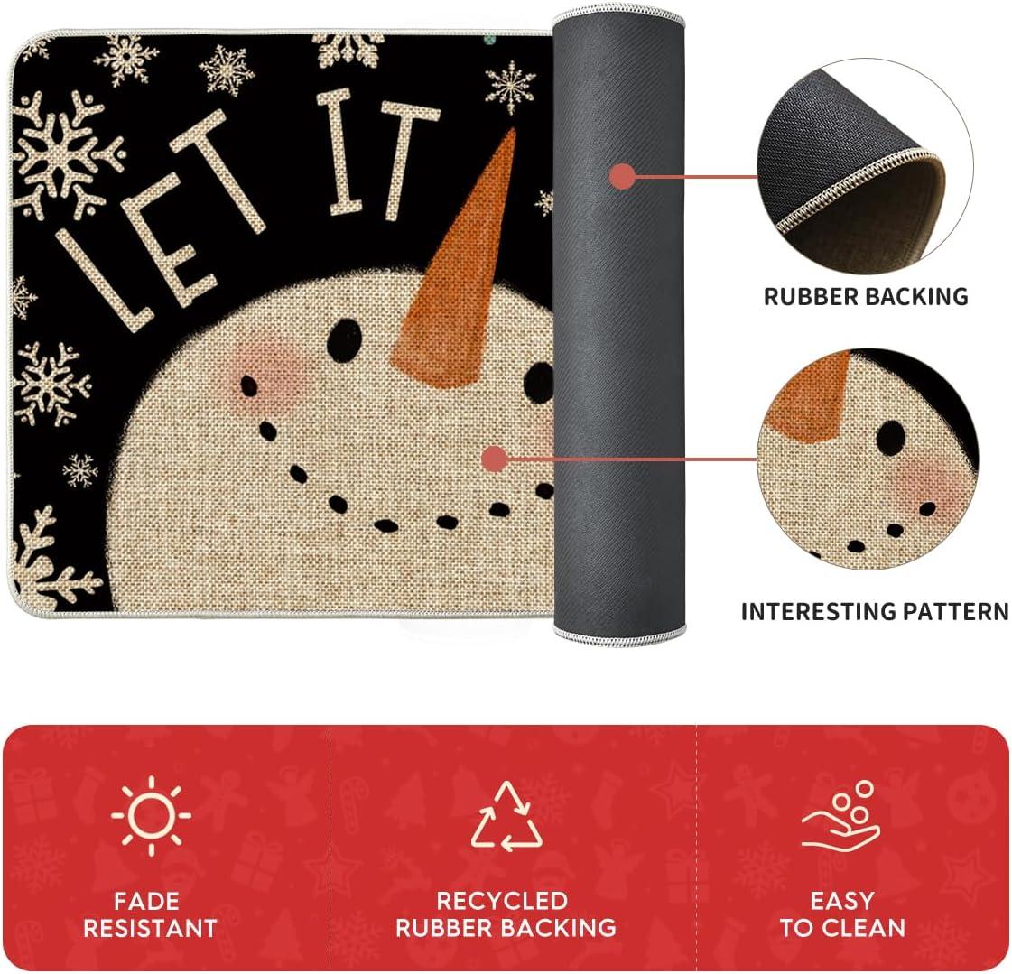 Artoid Mode Snowman Deer Let It Snow Snowflake Christmas Kitchen Mats Set of 2, Winter Decor Low-Profile Kitchen Rugs for Floor – 17×29 and 17×47 Inch(Black)