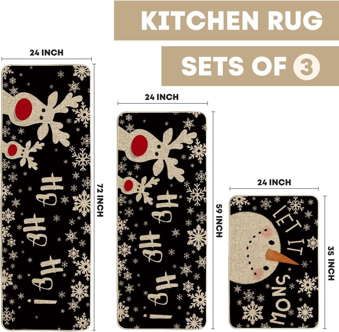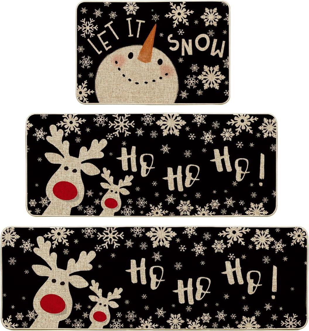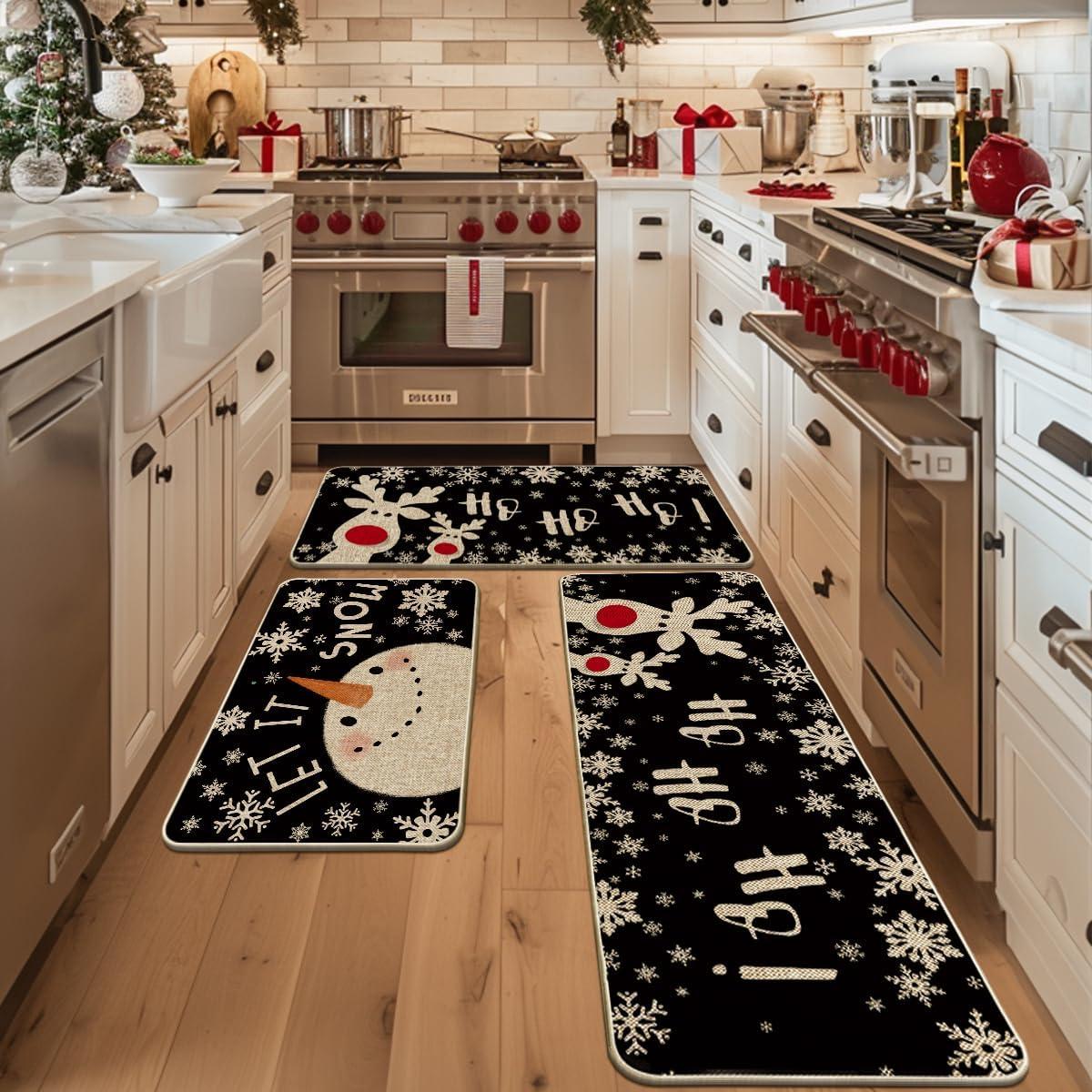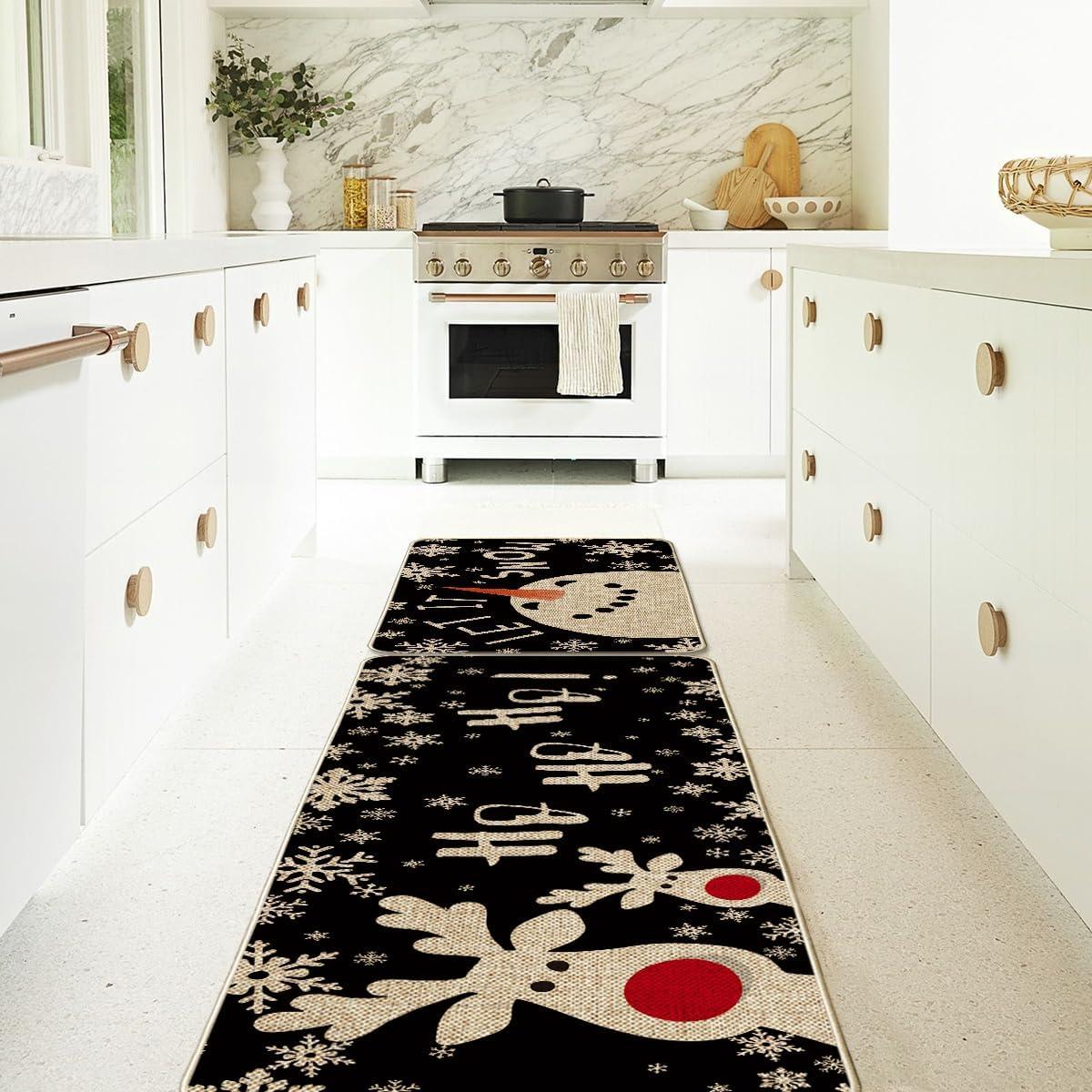 Artoid Mode Snowman Deer Let It Snow Snowflake Christmas Kitchen Mats Set of 2, Winter Decor Low-Profile Kitchen Rugs for Floor – 17×29 and 17×47 Inch(Black)
