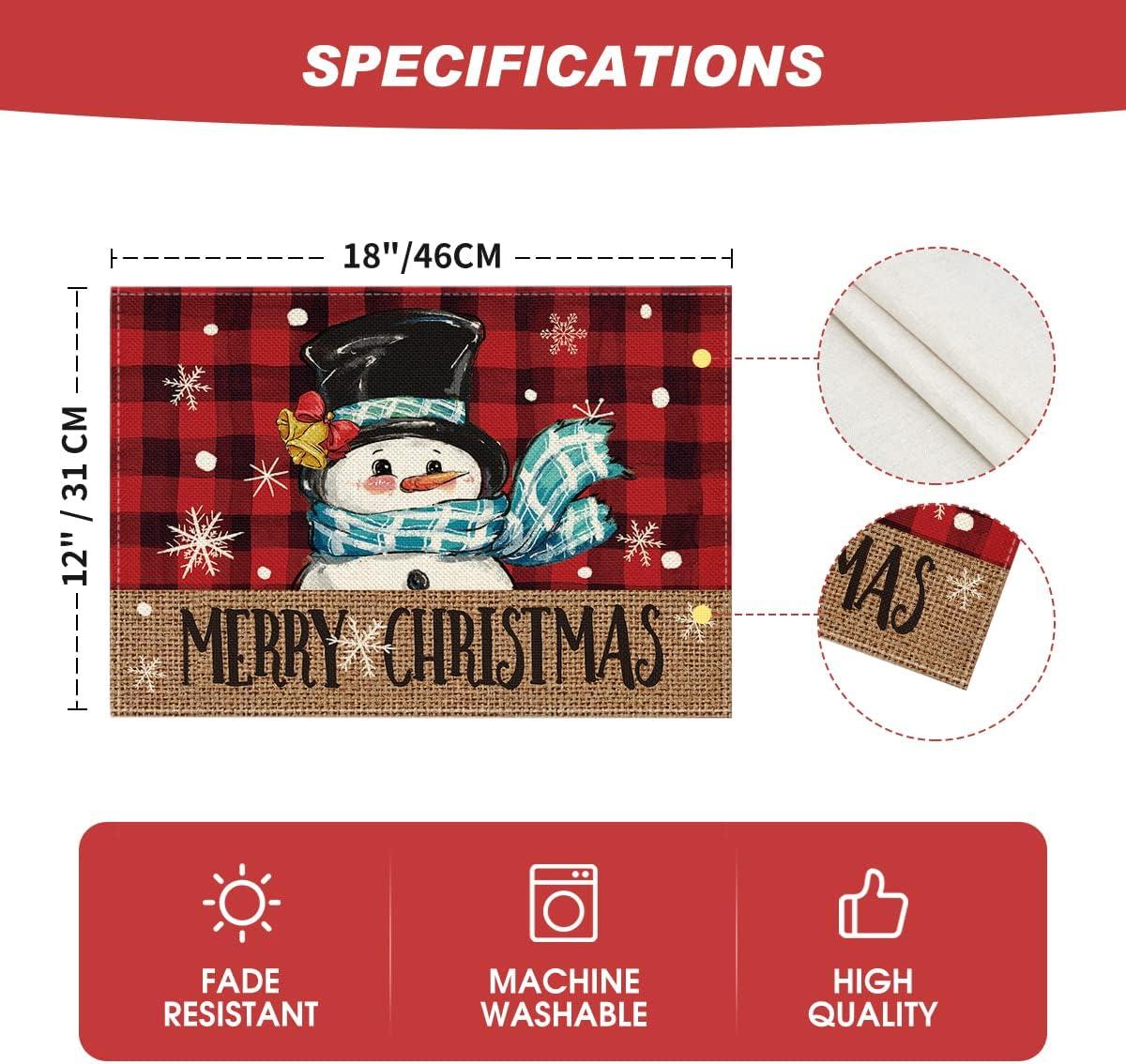 Artoid Mode Snowman Red and Black Buffalo Plaid Christmas Placemats Set of 4, 12×18 Inch Seasonal Winter Xmas Holiday Table Mats for Party Kitchen Dining Decoration(Red/Black)