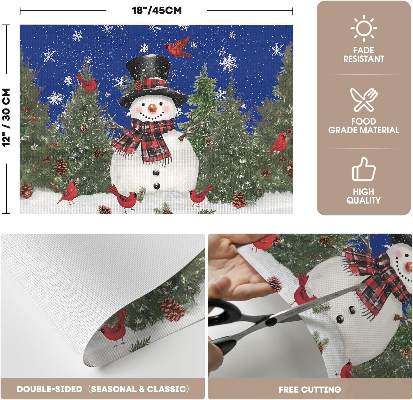 Artoid Mode Snowman Trees Christmas Floral Vinyl Placemats Set of 4, Wipeable Blue Winter PVC Woven Table Mats for Party Kitchen Dining Decor, 12×18 Inch(Blue)