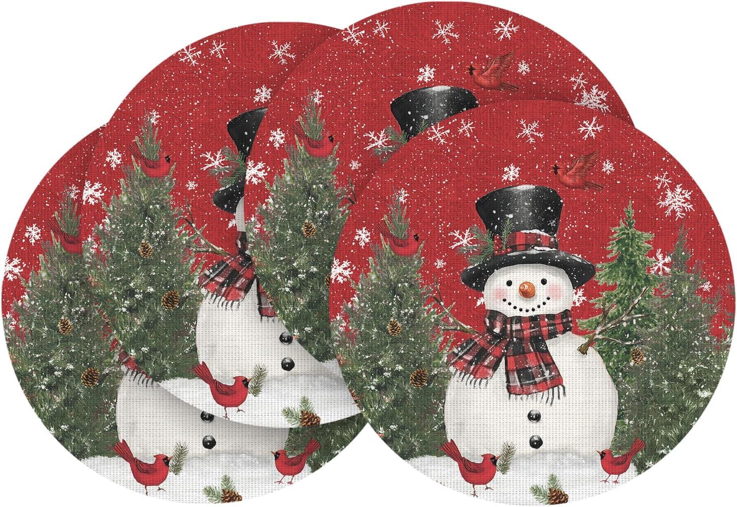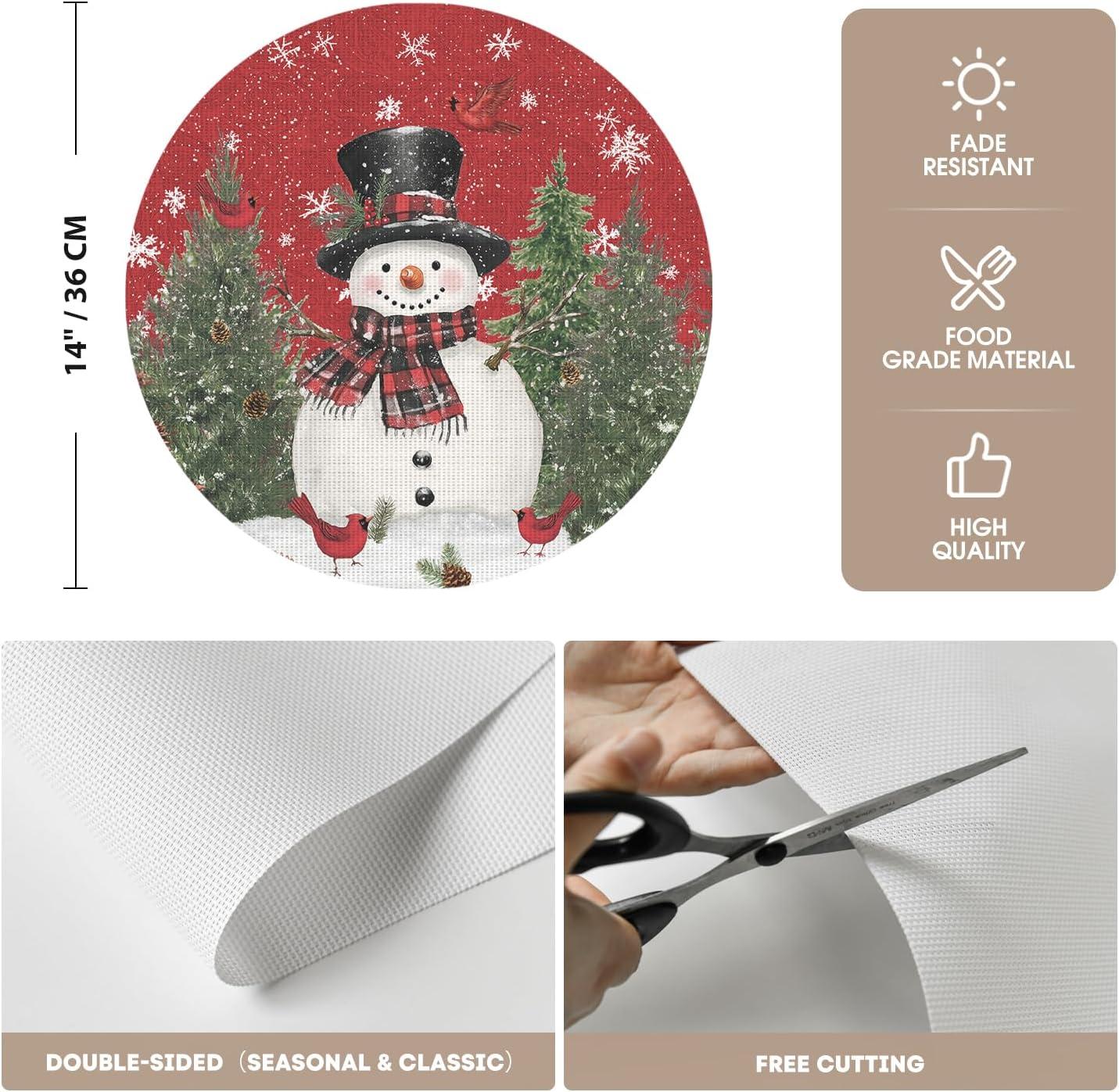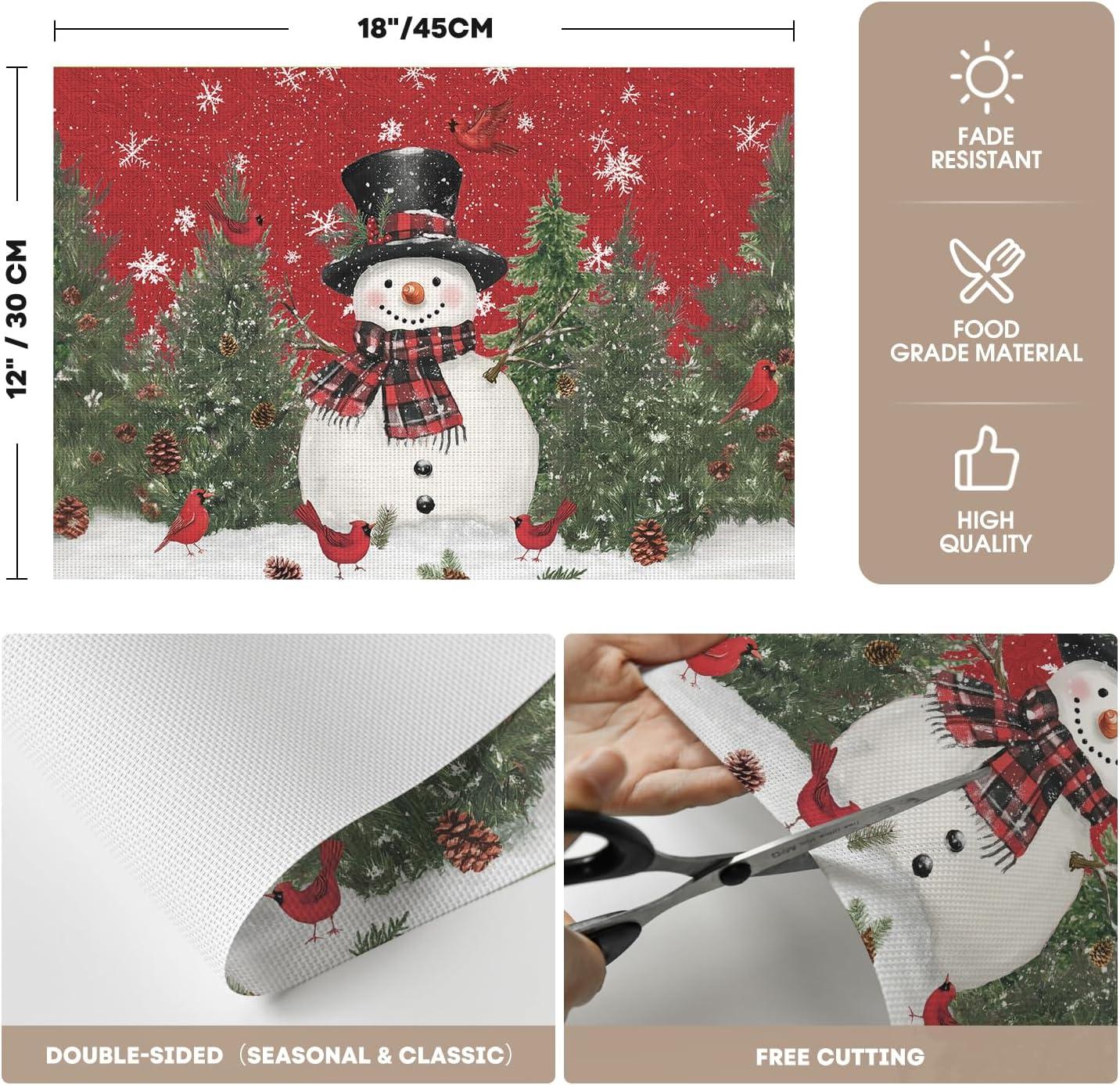 Artoid Mode Snowman Trees Christmas Floral Vinyl Placemats Set of 4, Wipeable Blue Winter PVC Woven Table Mats for Party Kitchen Dining Decor, 12×18 Inch(Red)