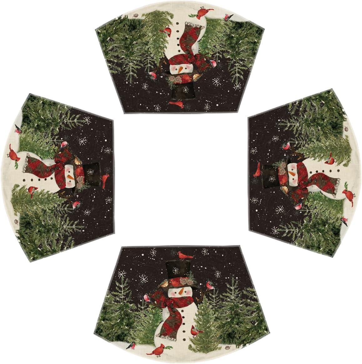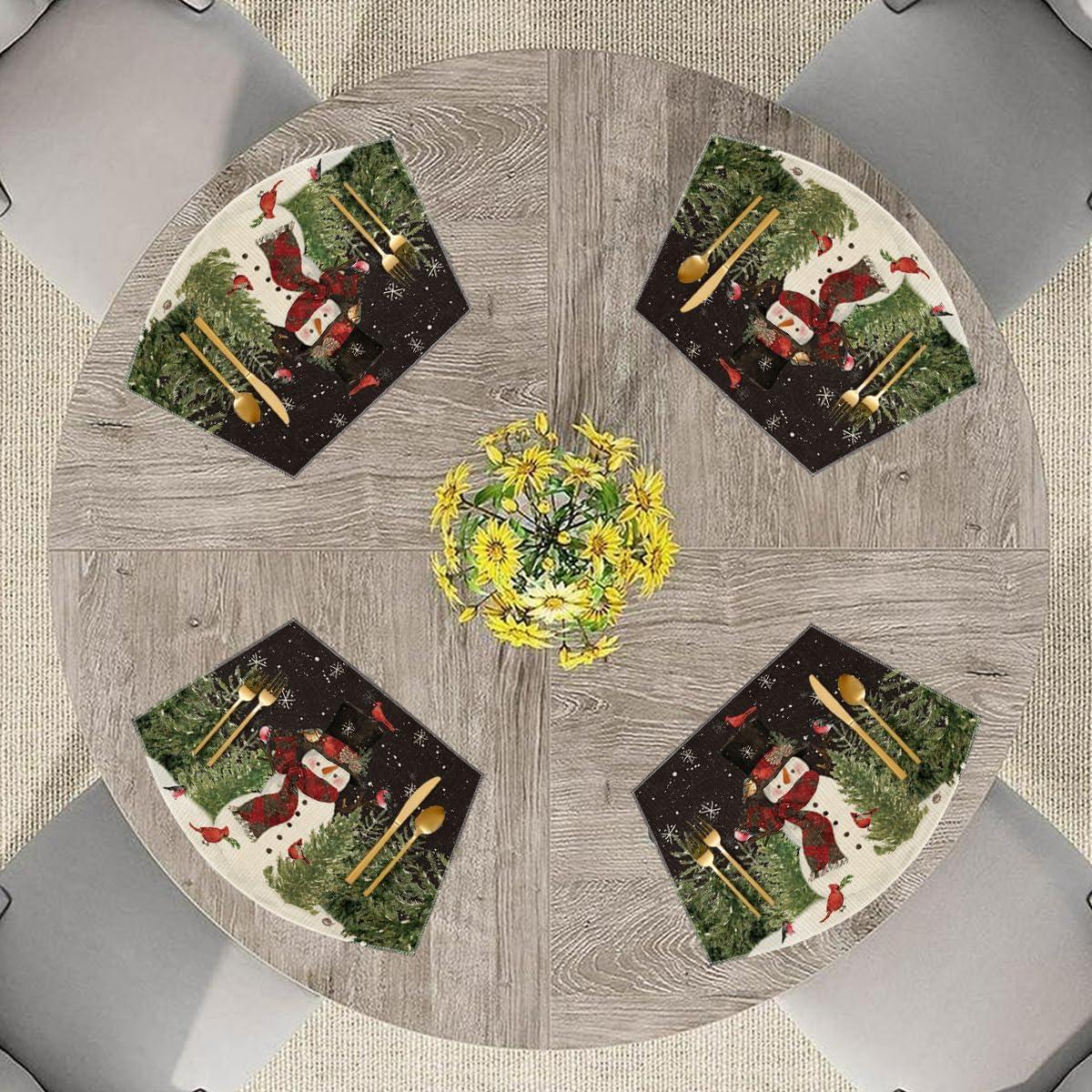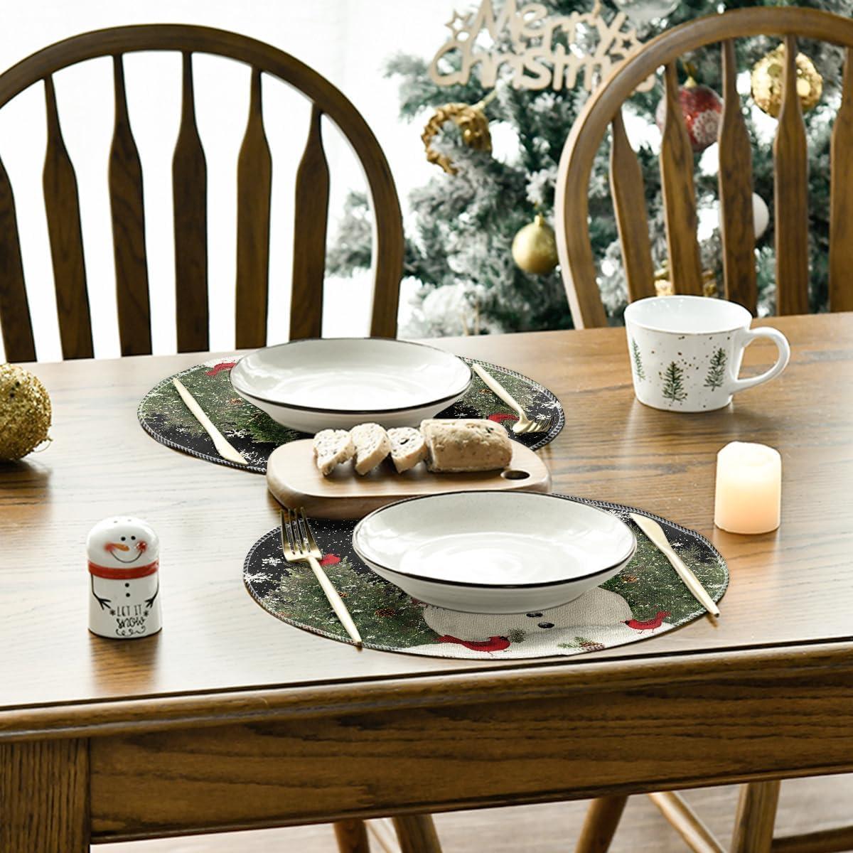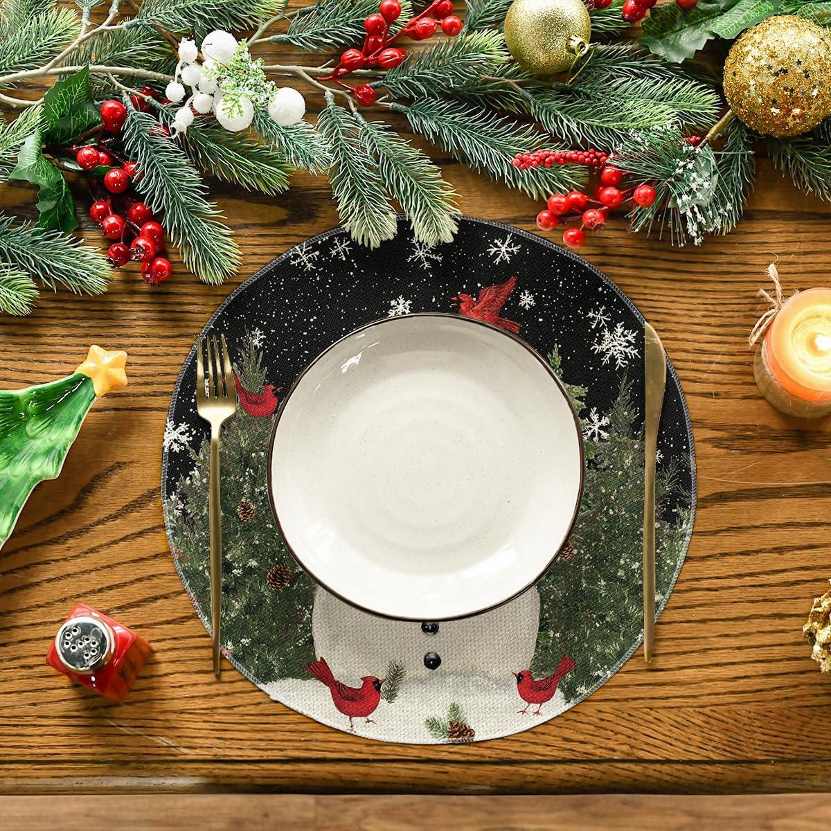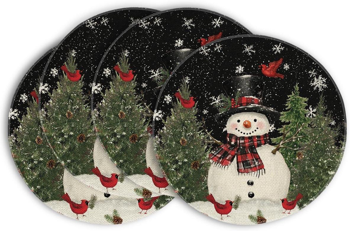 Artoid Mode Snowman Trees Snowflakes Christmas Round Placemats Set of 4, 14 Inch Black Winter Round Table Mats for Dining Decoration(Black)
