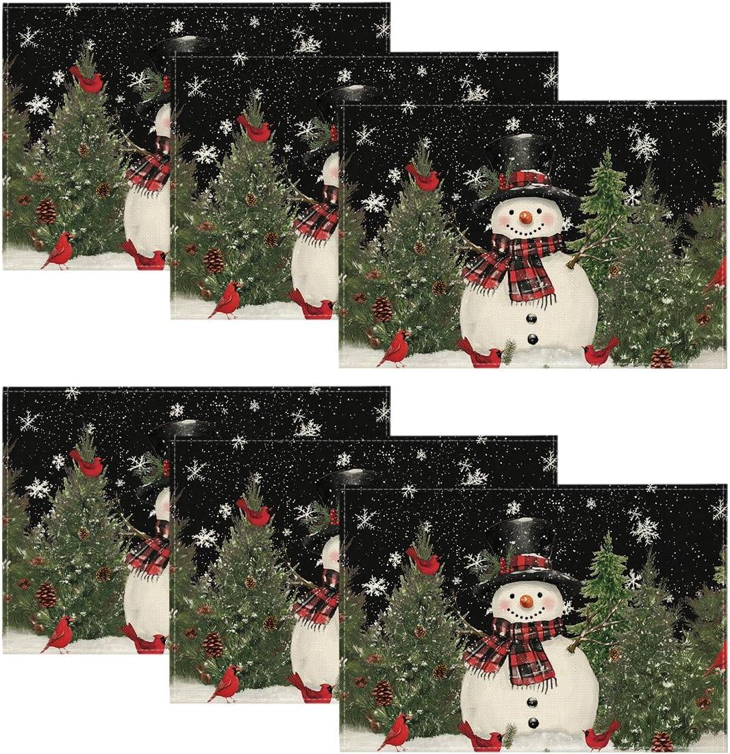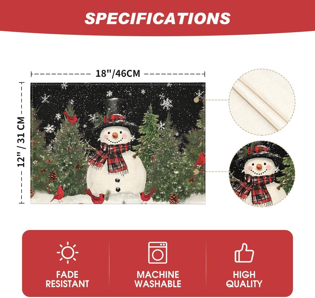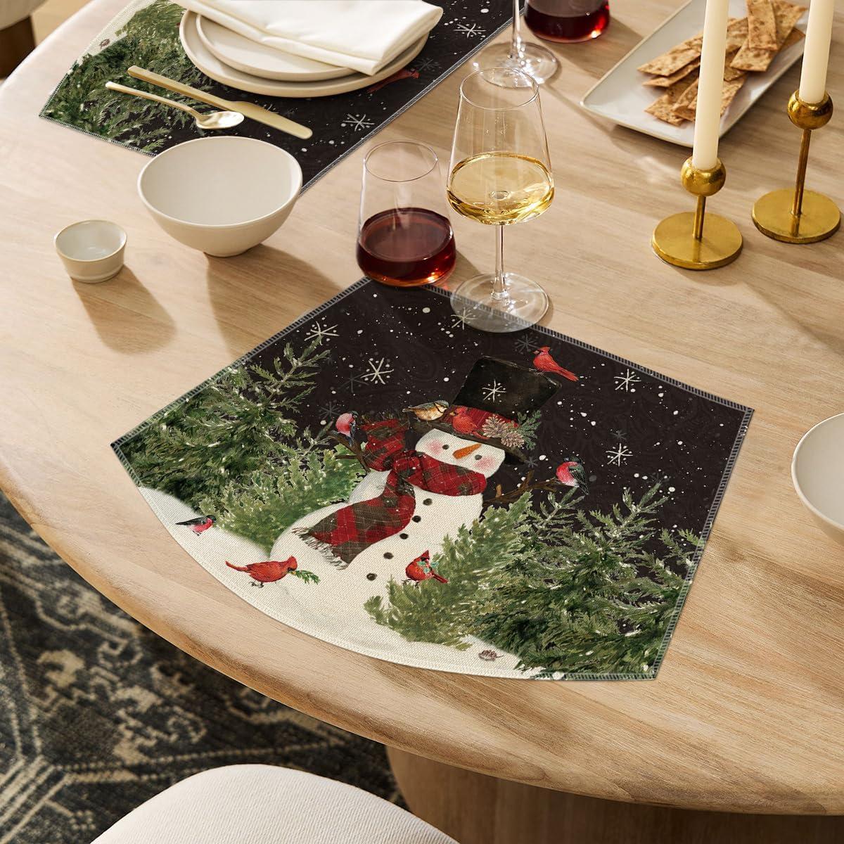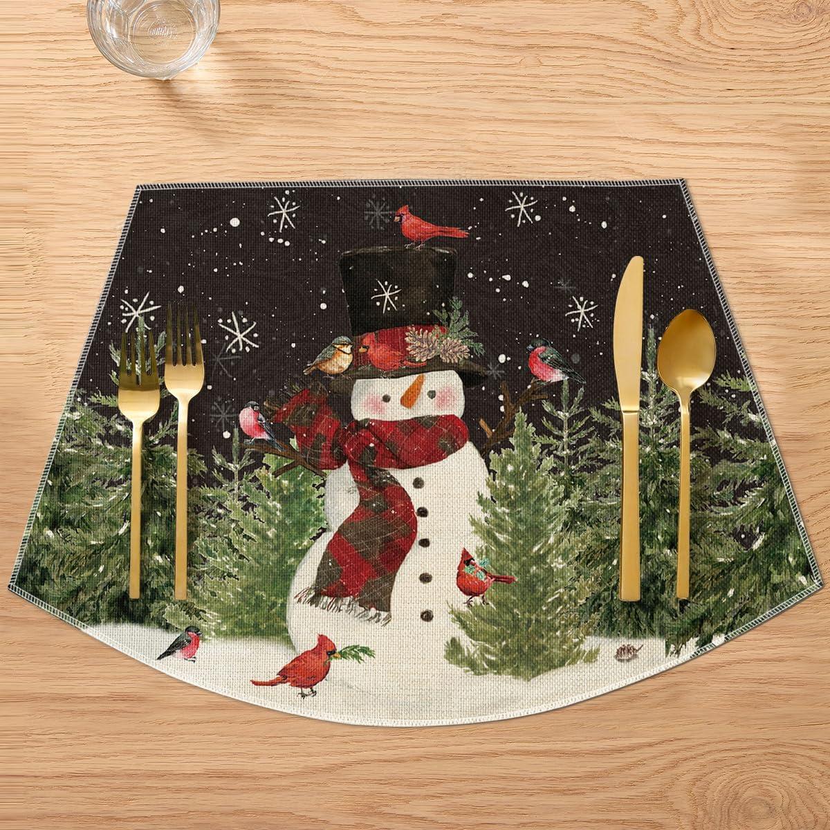 Artoid Mode Snowman Trees Snowflakes Christmas Round Placemats Set of 4, 14 Inch Black Winter Round Table Mats for Dining Decoration(Black)