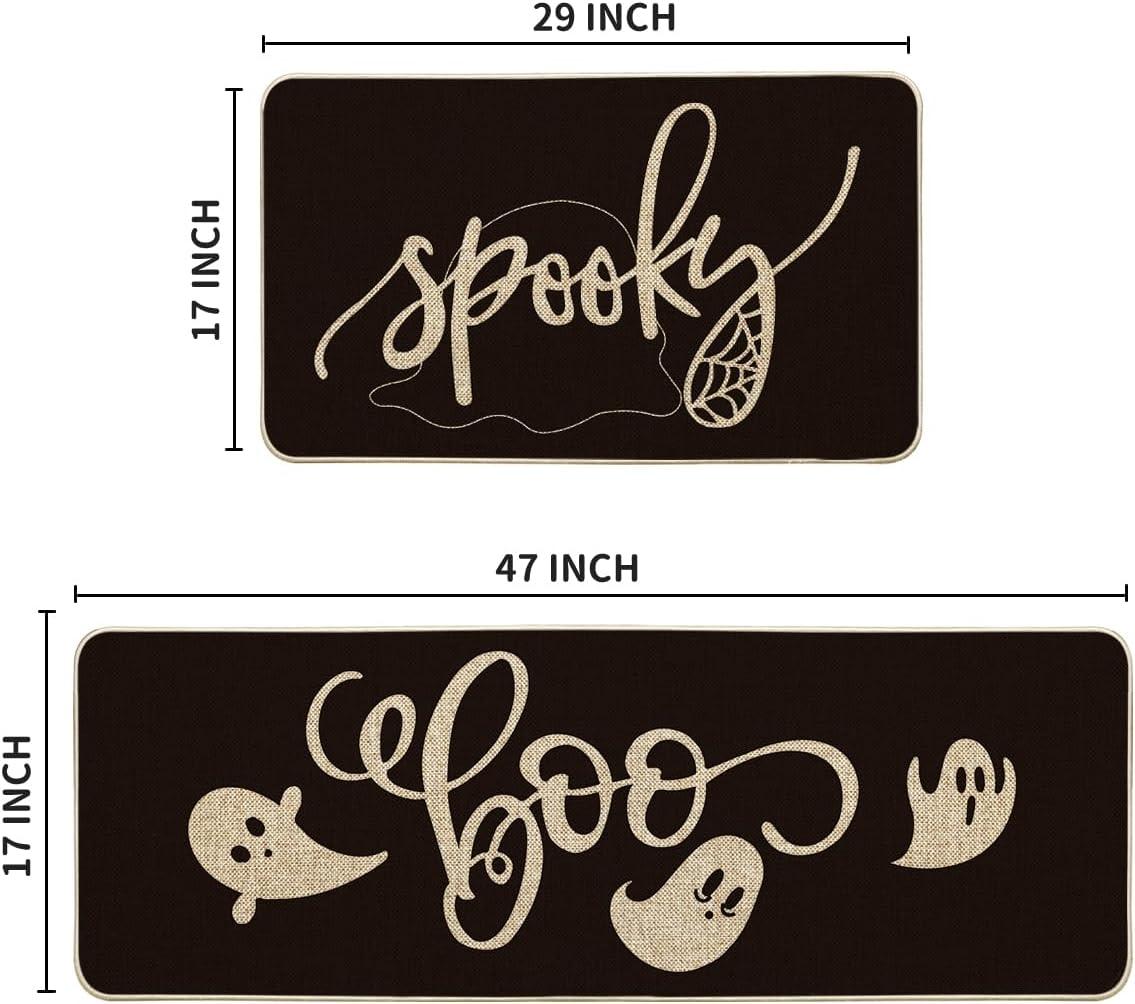 Artoid Mode Spooky Spider Web Ghosts Boo Halloween Kitchen Mats Set of 2, Home Decor Low-Profile Kitchen Rugs for Floor – 17×29 and 17×47 Inch(Black)