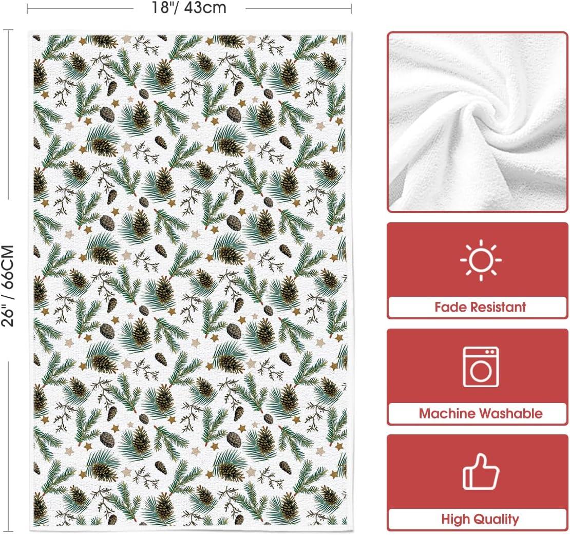 Artoid Mode Star Branch Pinecone Christmas Kitchen Towels Dish Towels, 18×26 Inch Farmhouse Holiday Winter Decoration Cleaning Set of 2