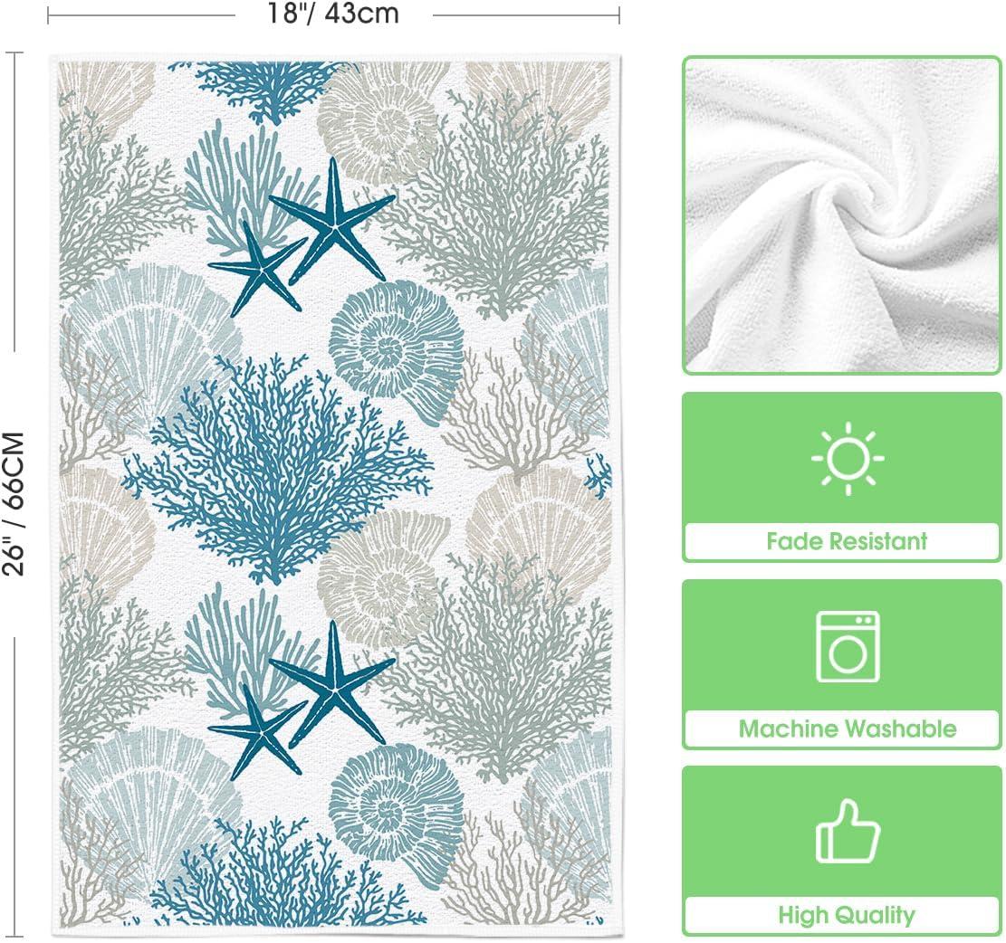 Artoid Mode Starfish Seahorses Coral Summer Kitchen Towels Dish Towels, 18×26 Inch Seasonal Summer Decoration Hand Towels Set of 2