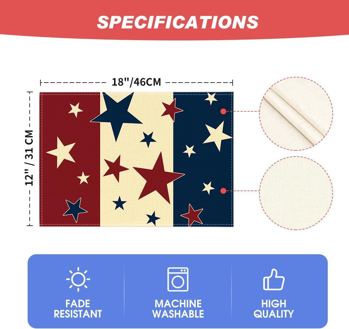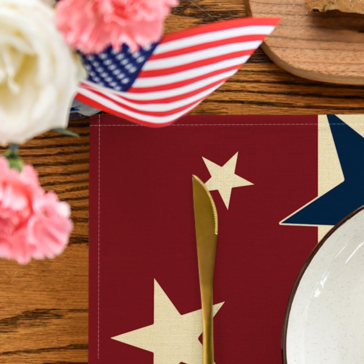 Artoid Mode Stars Stripes Patriotic 4th of July Placemats Set of 4, 12×18 Inch Independence Day Table Mats for Party Kitchen Dining Decoration