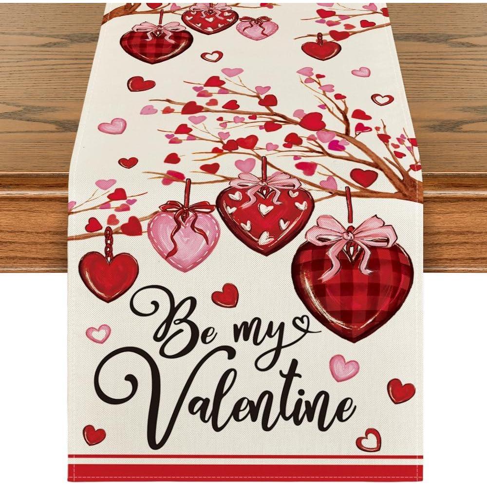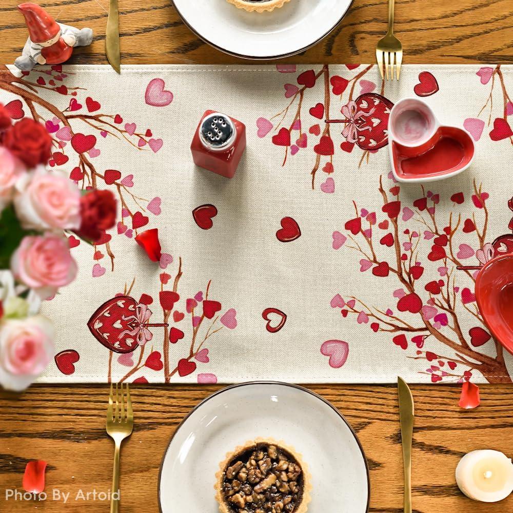 Artoid Mode Stripe Heart Valentine’s Table Runner, Be My Valentine Anniversary Kitchen Dining Table Decoration for Home Party Decor 13×72 Inch(Red)