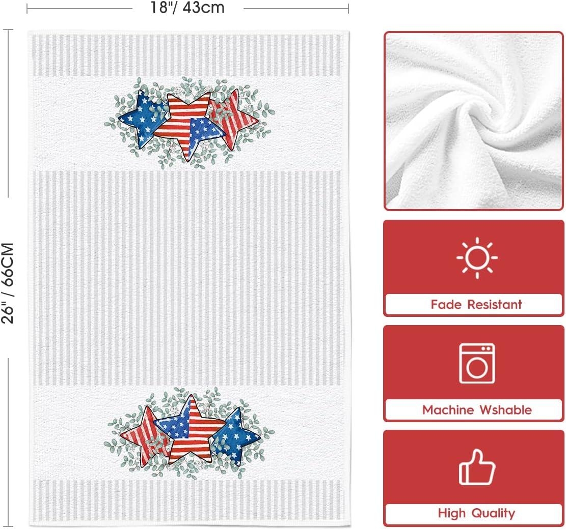 Artoid Mode Stripes American Stars Heart 4th of July Kitchen Towels Dish Towels, 18×26 Inch Patriotic Memorial Day Decoration Hand Towels Set of 2