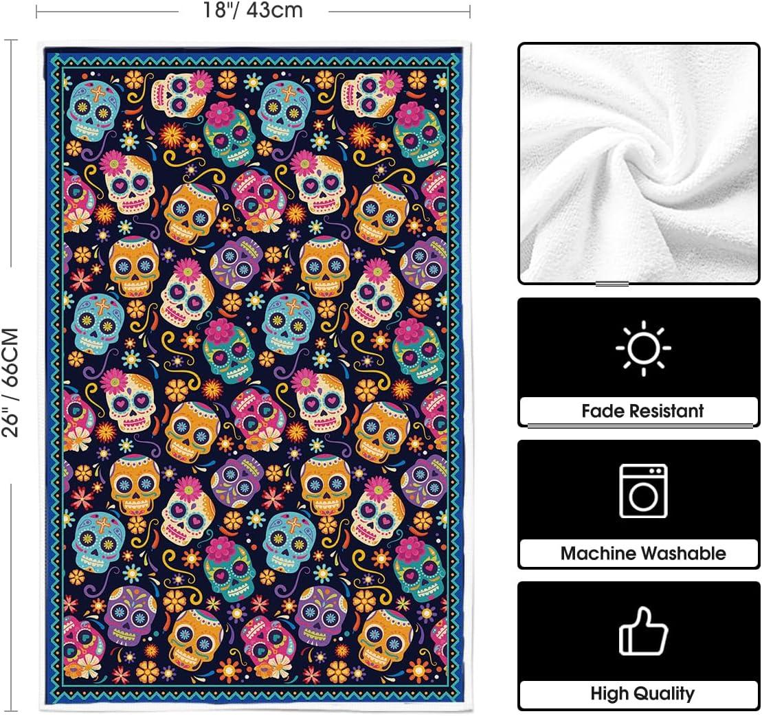 Artoid Mode Suger Skulls Floral Day of The Dead Kitchen Towels Dish Towels, 18×26 Inch Halloween Decoration Hand Towels Set of 2