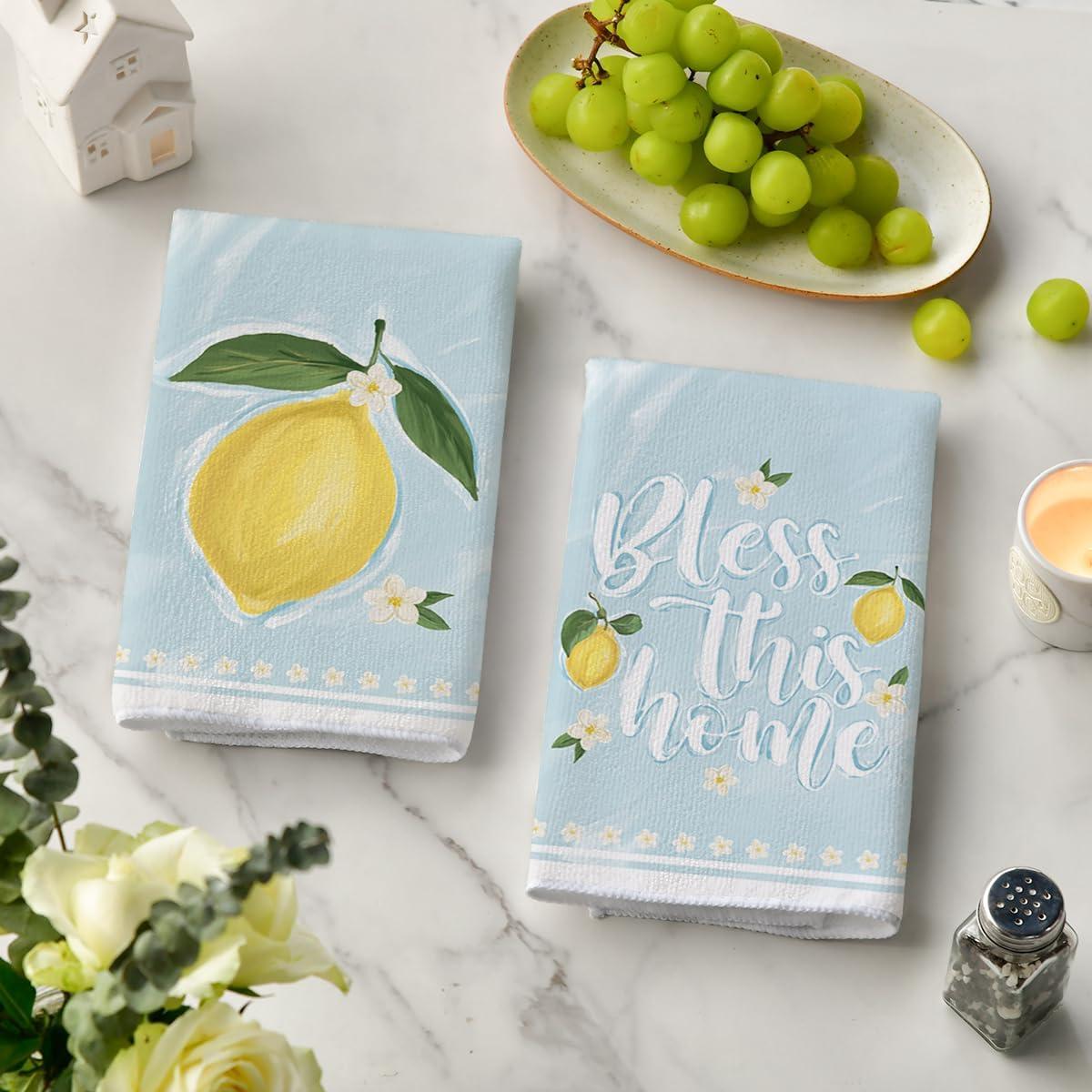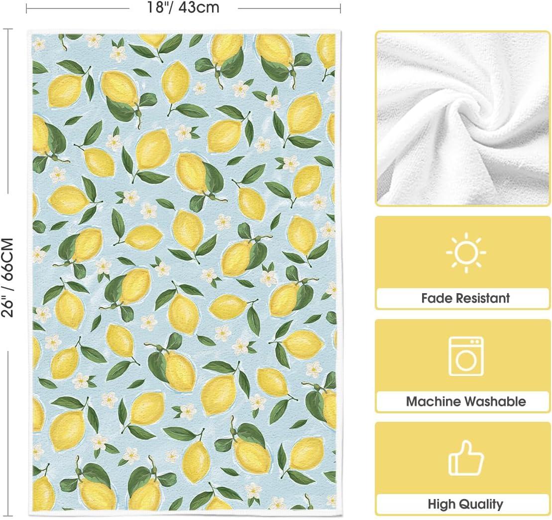 Artoid Mode Sweet Lemon Flower Summer Kitchen Towels Dish Towels, 18×26 Inch Home Farmhouse Summer Seasonal Decoration Hand Towels Set of 4
