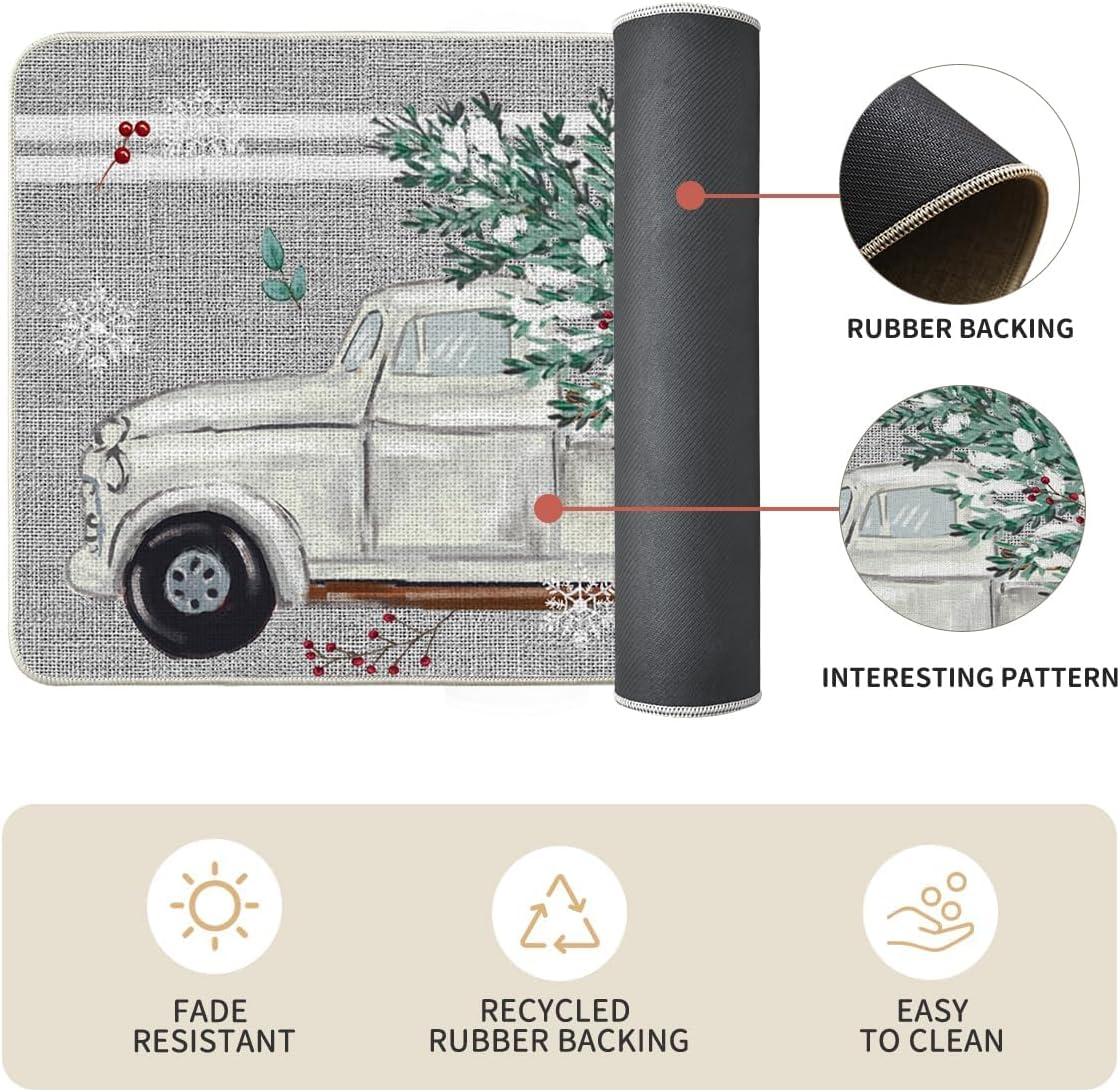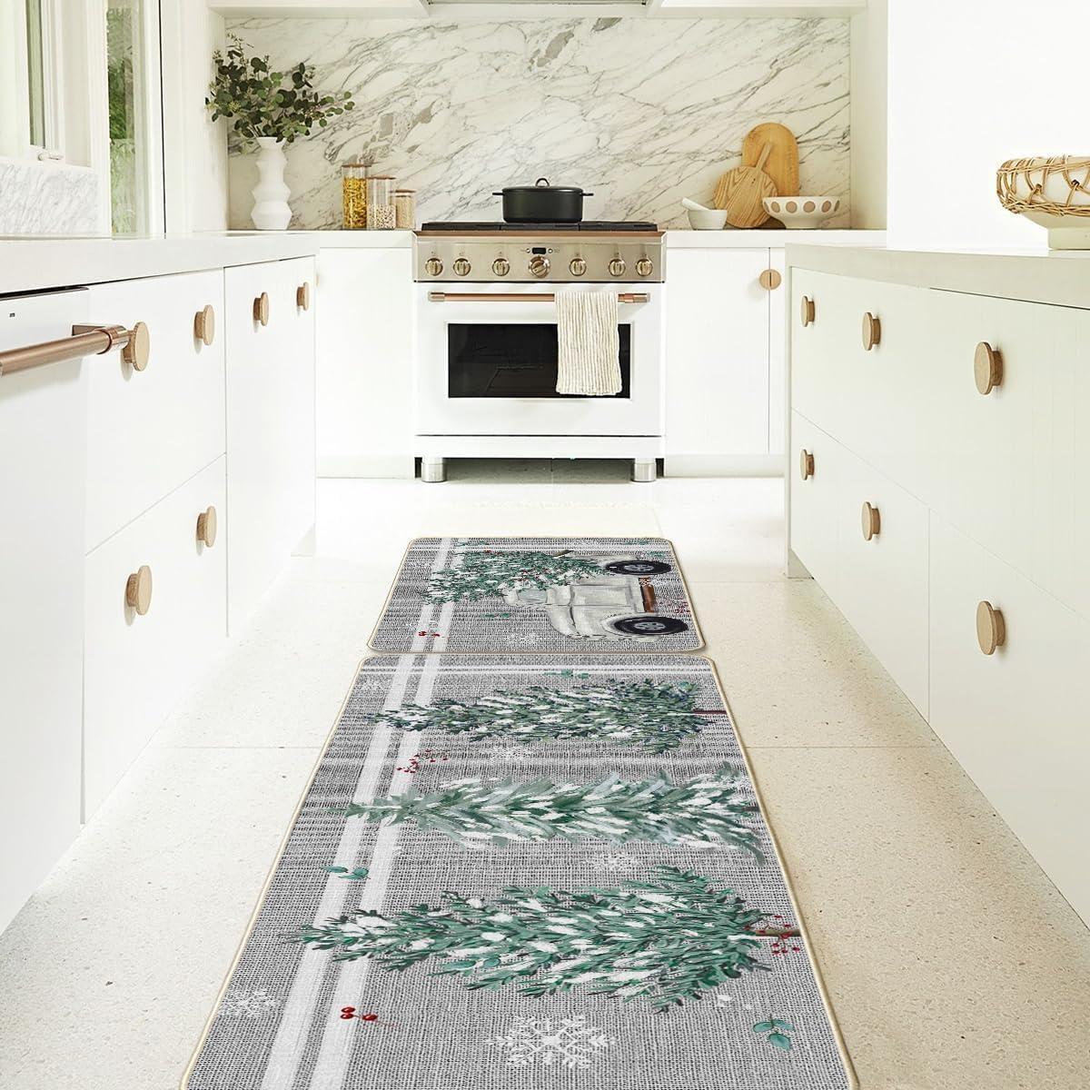 Artoid Mode Truck Pine Holly Stripes Christmas Decorative Kitchen Mats Set of 2, Home Decor Party Low-Profile Kitchen Rugs – 17×29 and 17×47 Inch