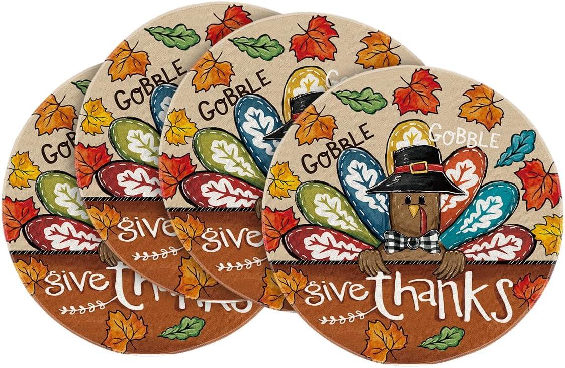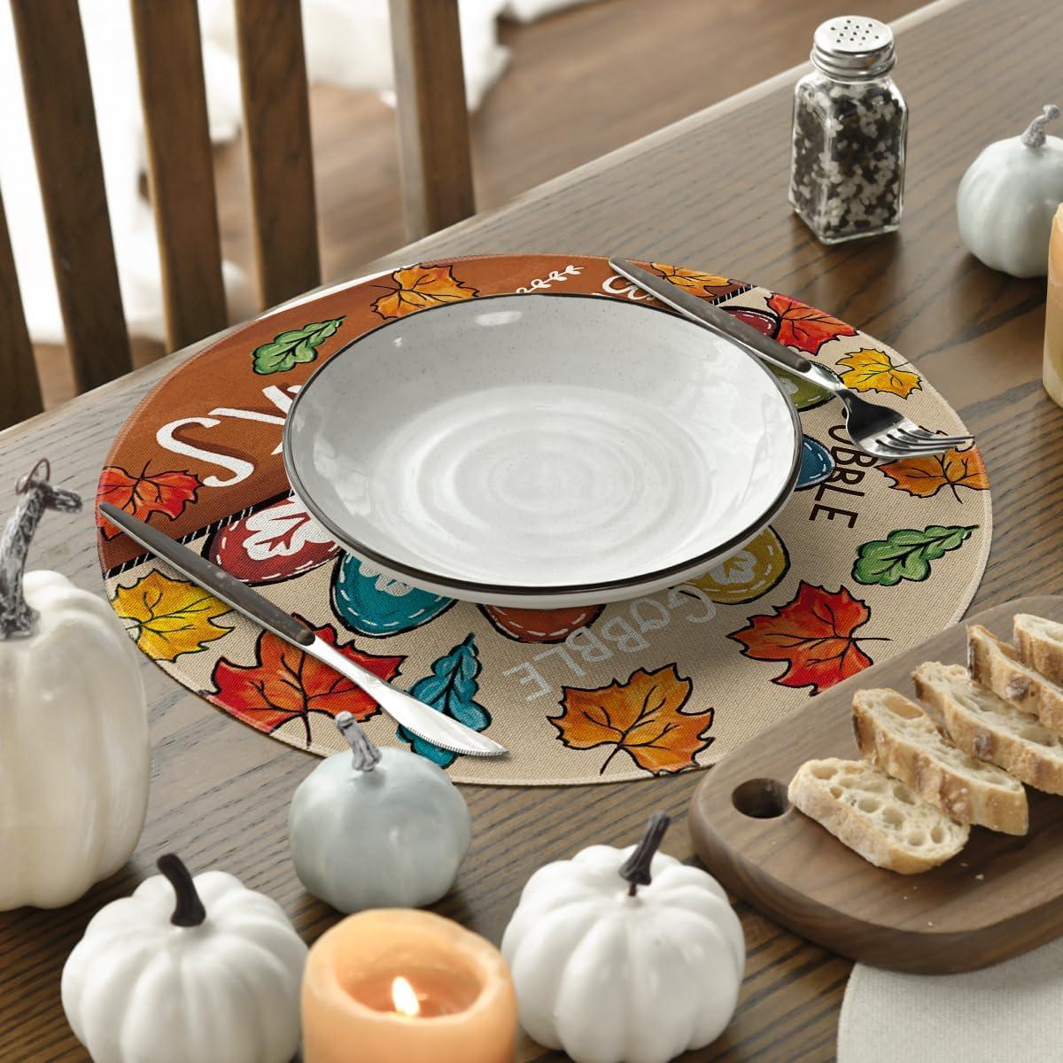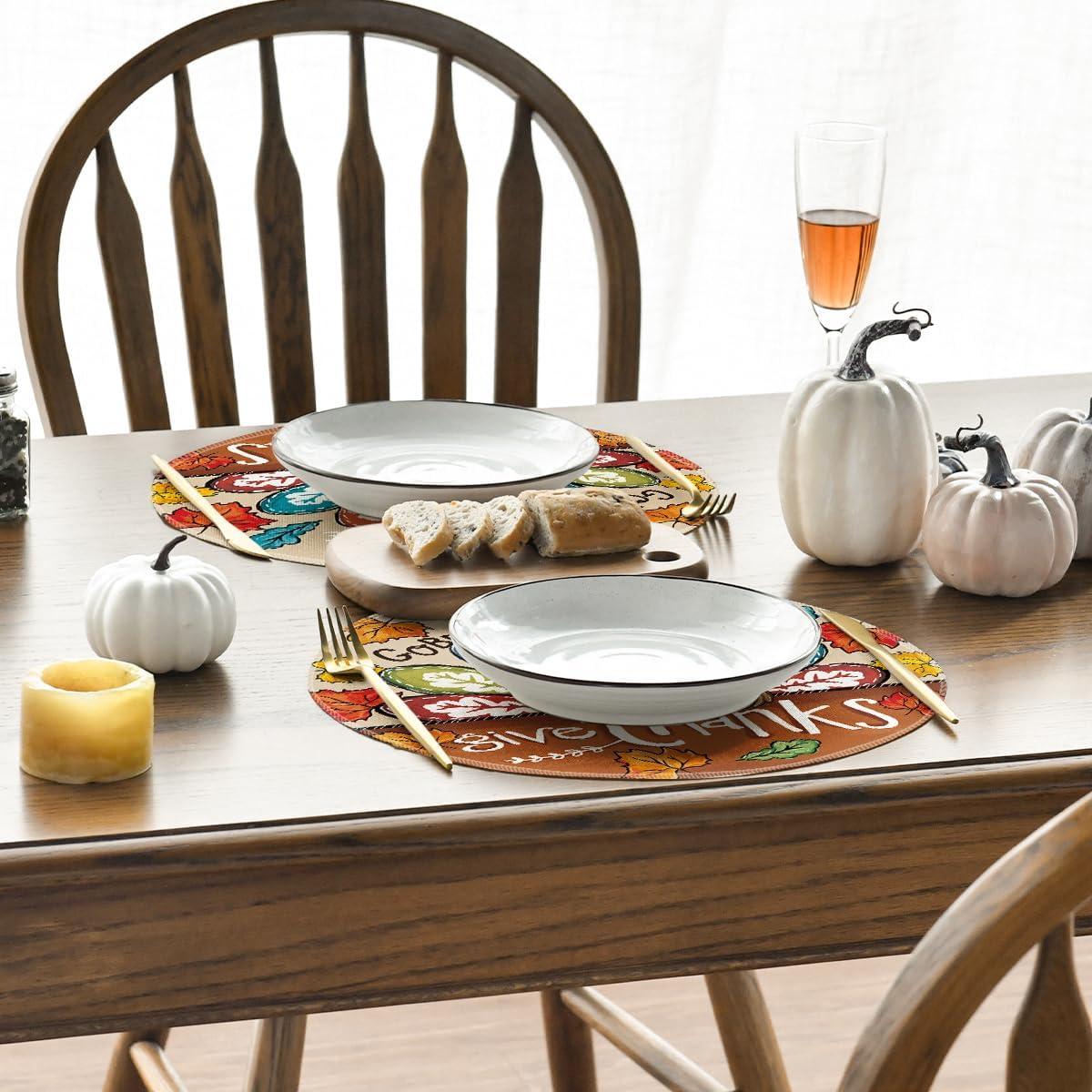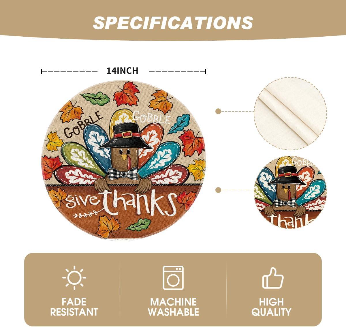 Artoid Mode Turkey Give Thanks Thanksgiving Placemats Set of 6, 12×18 Inch Seasonal Table Mats for Party Kitchen Dining Decoration(Brown)